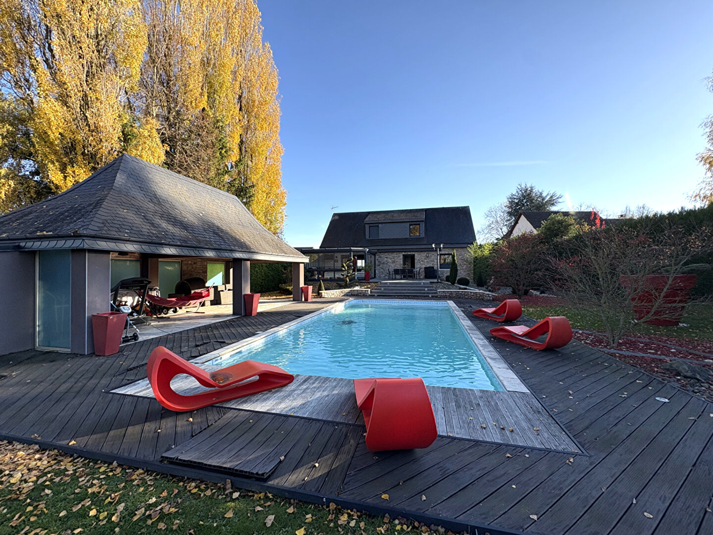 En exclusivité, située dans un environnement calme et recherché, cette belle propriété offre un cadre de vie confortable, parfaitement adapté à une vie de famille. Dès l'entrée, vous serez séduit par les volumes généreux et la luminosité de la pièce de vie, composée d'un salon chaleureux, d'une salle à manger et d'une cuisine contemporaine, entièrement aménagée et équipée, une grande véranda offre une jolie vue sur le jardin et sa piscine. Ce niveau propose également une chambre de plain-pied avec sa salle d'eau privative, ainsi que des toilettes séparées. A l'étage, un palier dessert trois chambres, une salle de bains ainsi que des WC indépendants. Le sous-sol total offre de multiples espaces fonctionnels : buanderie, cave à vin ainsi qu'un garage double. A l'extérieur, le jardin paysager entoure la maison et invite à la détente : piscine, pool house bâti de 45m², terrasses multiples et stationnements privatifs viennent parfaire ce bien aux prestations soignées.