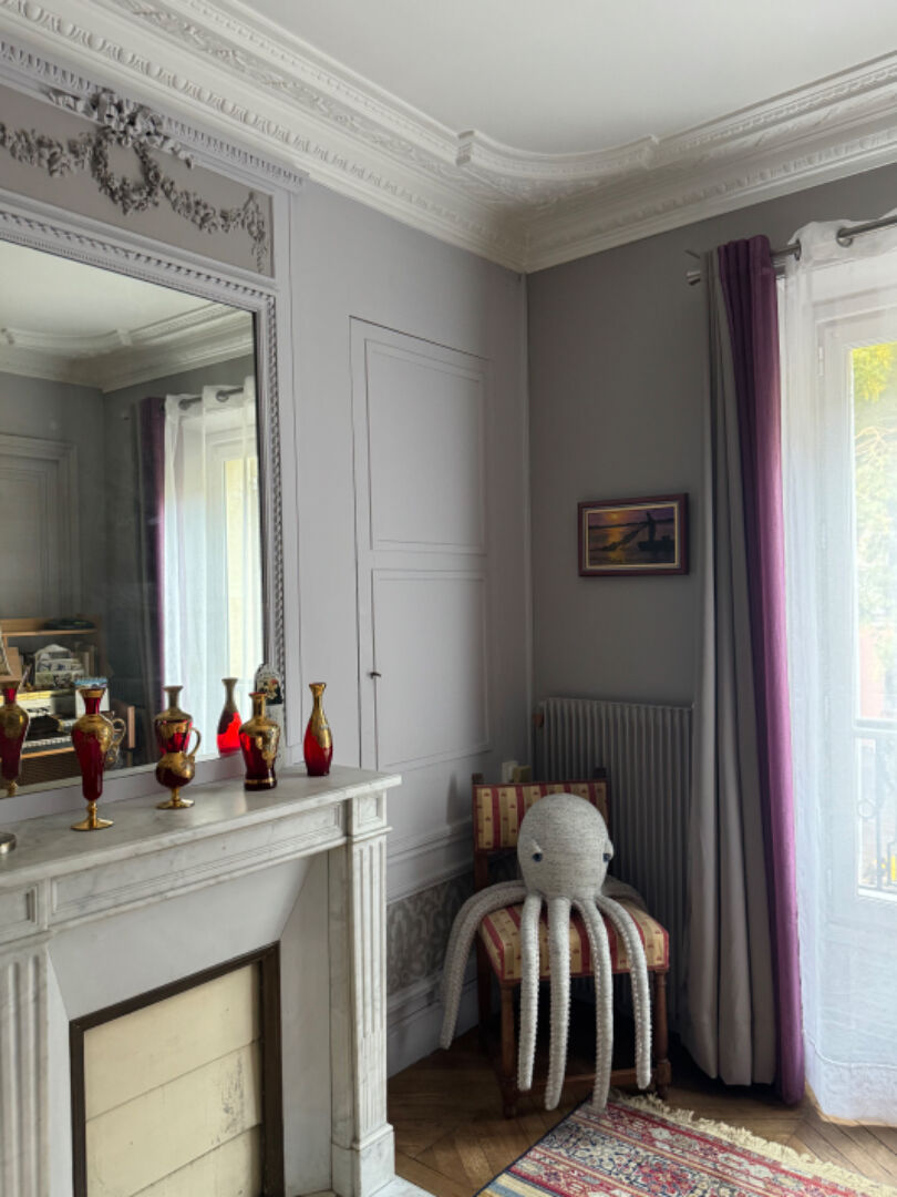 En un adorable immeuble de pierres de taille édifié fin 19ème siècles , un appartement aux caractères aimés de l'ancien donnant sur une adorable place typiquement Parisienne ( les pavés, les arbres, la fontaine Wallace, le kiosque ). Parquet, remarquables moulures, cheminées, hauteur sous plafond: on se croirait dans un tableau de Vilhelm Hammershøi... L'appartement comprend un séjour double, trois chambres, cuisine, salle de douches, cabinet d'aisance, rangements (4.40 % honoraires TTC à la charge de l'acquéreur.)