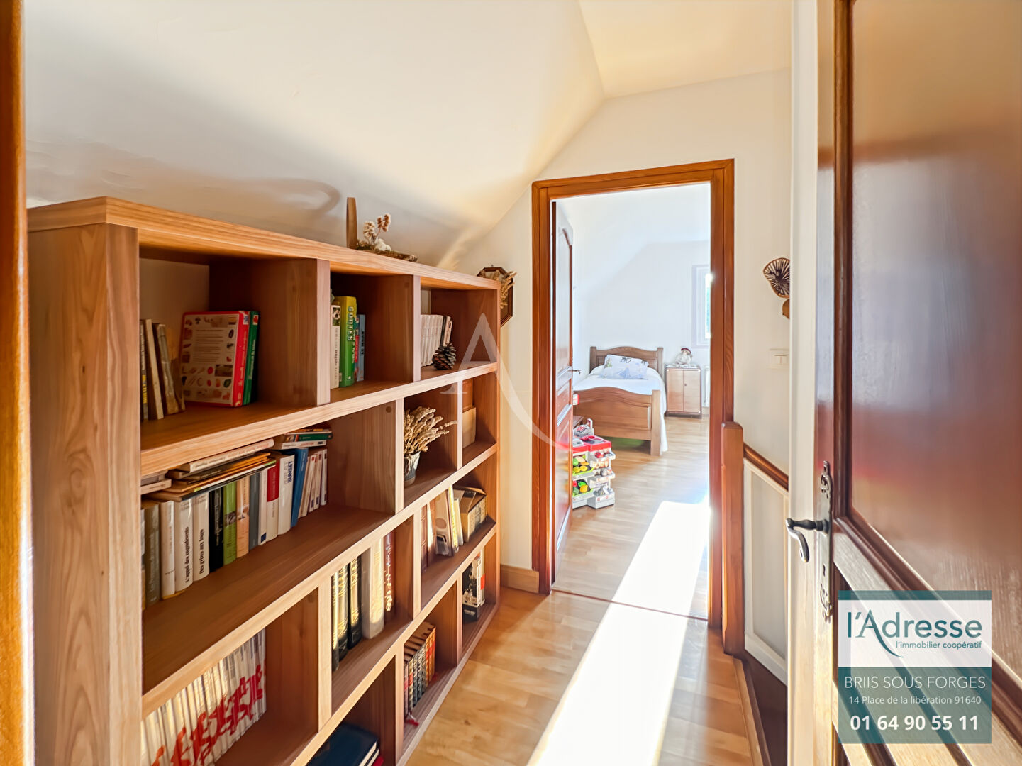 Briis-sous-Forges ? Coeur de village A deux pas de toutes les commodités (écoles, commerces, gare autoroutière), découvrez cette maison individuelle d'environ 105 m² habitables, édifiée sur un agréable terrain clos de 519 m². Elle se compose au rez-de-chaussée d'une entrée, d'un séjour lumineux avec ces trois expositions, d'une salle à manger avec sa cheminée insert,, d'une cuisine aménagée, d'une chambre et d'une salle de bains. Un garage attenant avec espace cellier/buanderie complète ce niveau. A l'étage, un palier dessert trois chambres, dont une en enfilade, ainsi qu'un WC indépendant avec lave mains. Les extérieurs soignés offrent plusieurs espaces de détente : terrasse couverte et terrasse ensoleillée avec store banne, cabanon de jardin, bûcher et abri? Maison très bien entretenue, alliant fonctionnalité et charme traditionnel. ? A visiter sans tarder !