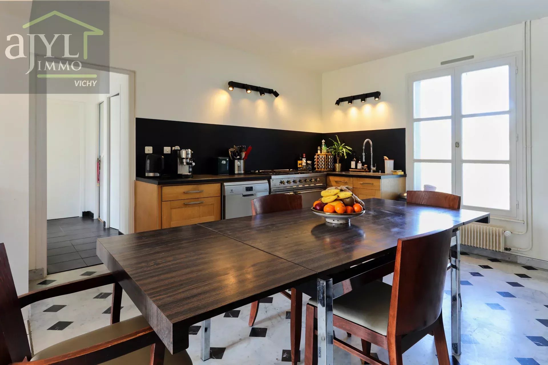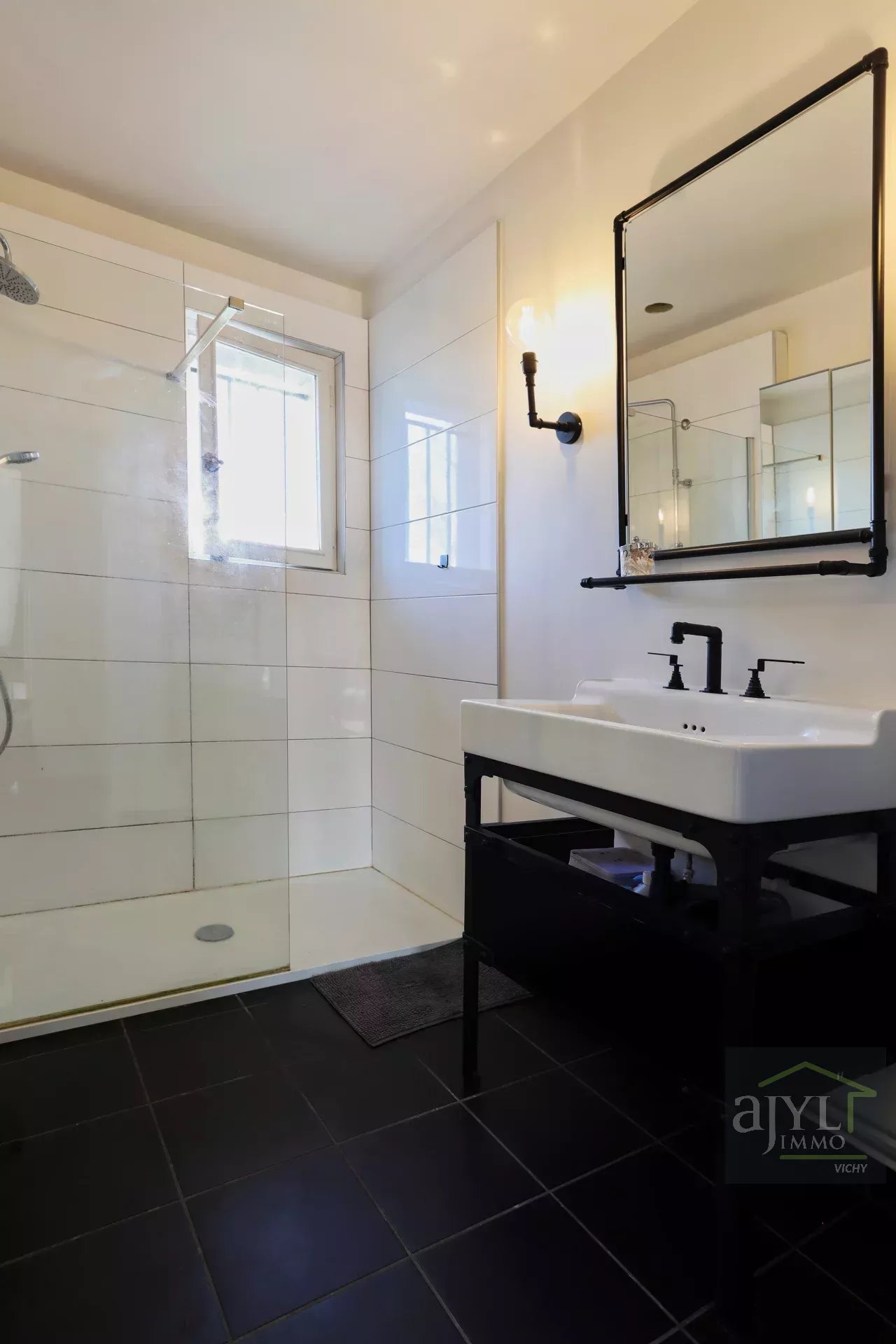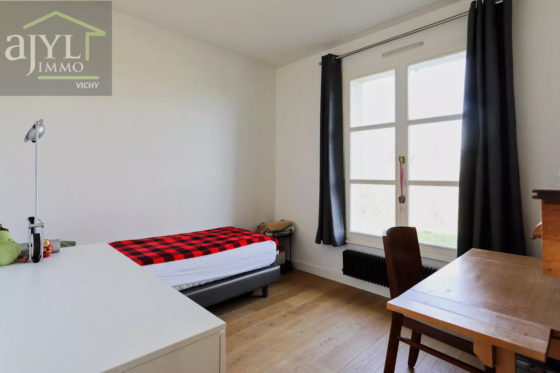 À seulement 9 km de Vichy, belle propriété de caractère d’environ 220 m² habitables, nichée au cœur d’un parc arboré de 6 000 m² — intimité, luminosité et volumes généreux. Rez-de-chaussée (vie de plain-pied possible) : • Entrée / hall 25 m² avec cheminée • Salon lumineux 50 m² avec cheminée • Cuisine équipée + espace repas 30 m² • Bureau, 2 chambres, salle d’eau, WC indépendant, buanderie/chaufferie Étage : • Palier spacieux, 2 chambres (25 m² / 13 m²) • Rangements sur mesure (placards/dressing), salle de bains, WC indépendant Extérieurs & annexes : • Atelier 120 m² au sol avec mezzanine (partie isolée aménageable en bureau) • Garage attenant • Terrain piscinable (fort potentiel aménagement piscine / terrasse) • Toiture refaite en 2022 — travaux structurels récents • Panneaux photovoltaïques rapportant environ 1 800 €/an Travaux & potentiel : quelques rafraîchissements (peinture, salle de bains) permettront de révéler tout le cachet de la maison. Idéale pour famille cherchant espace et tranquillité, ou pour projet mêlant habitation et activité (atelier). Points forts : parc 6 000 m² • volumes lumineux • atelier 120 m² • toiture 2022 • revenus photovoltaïques • proximité Vichy (9 km).