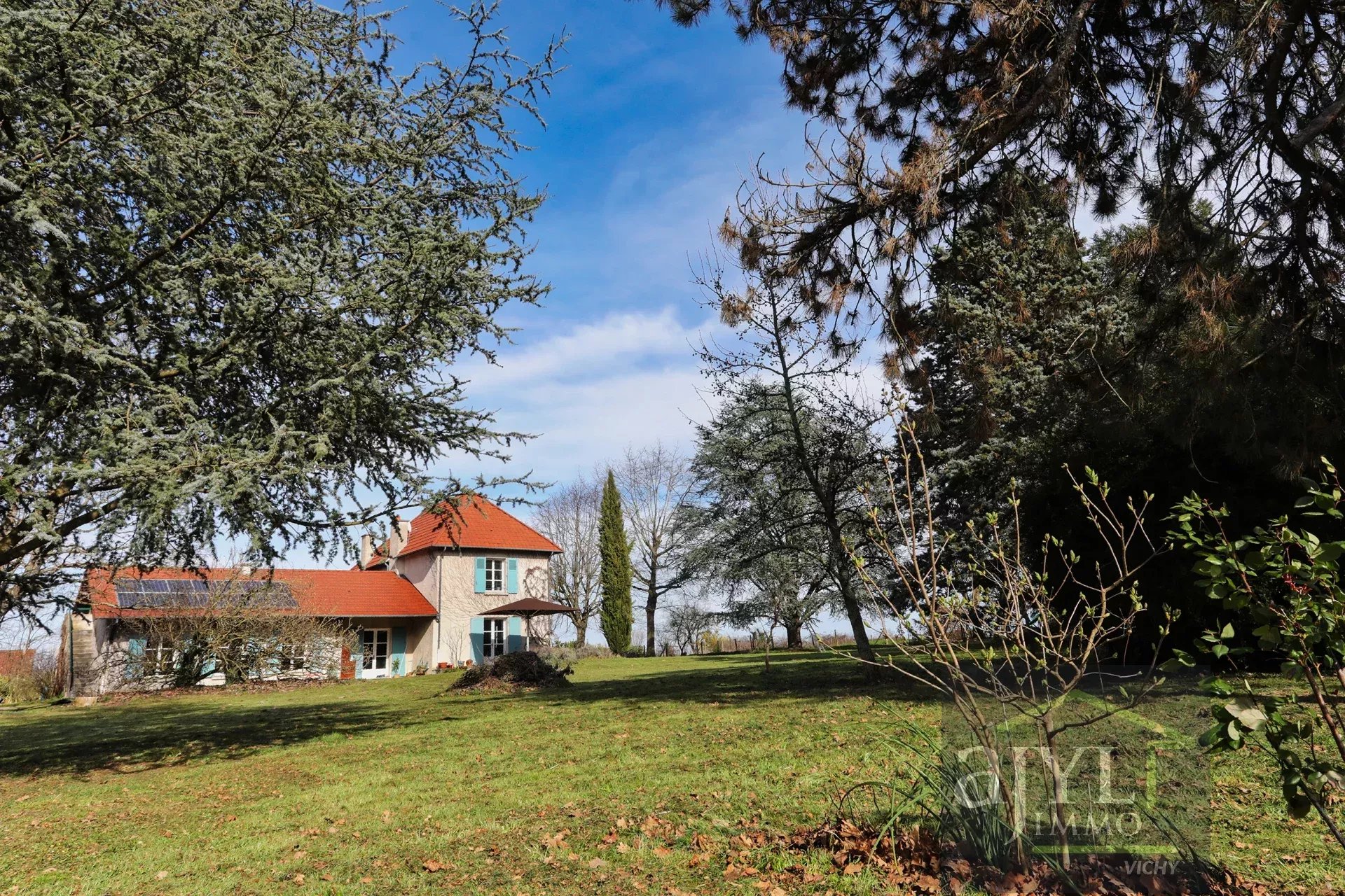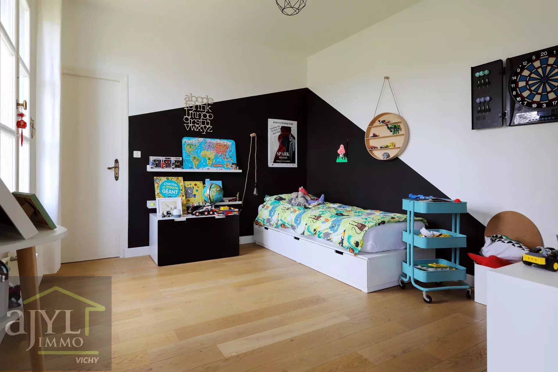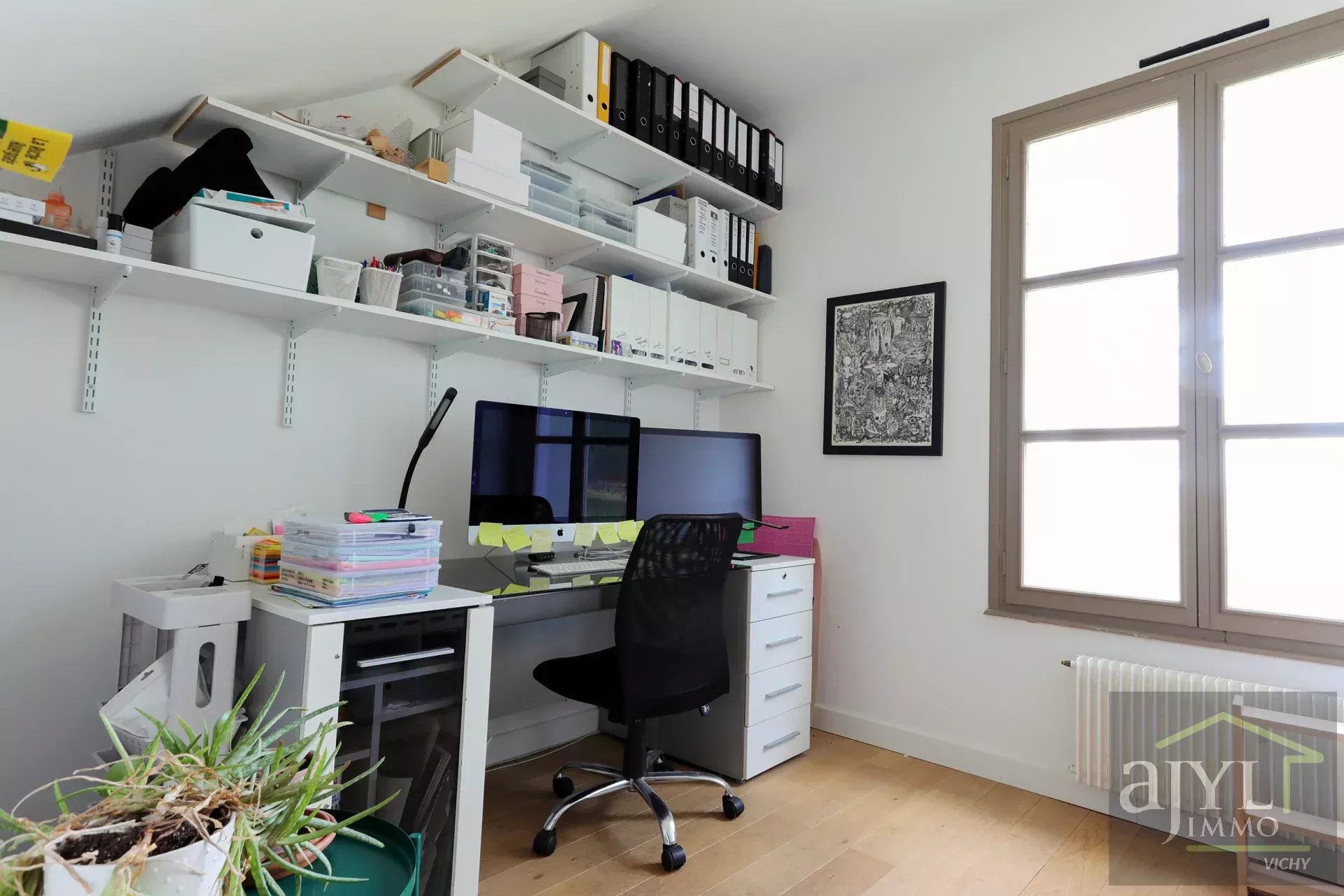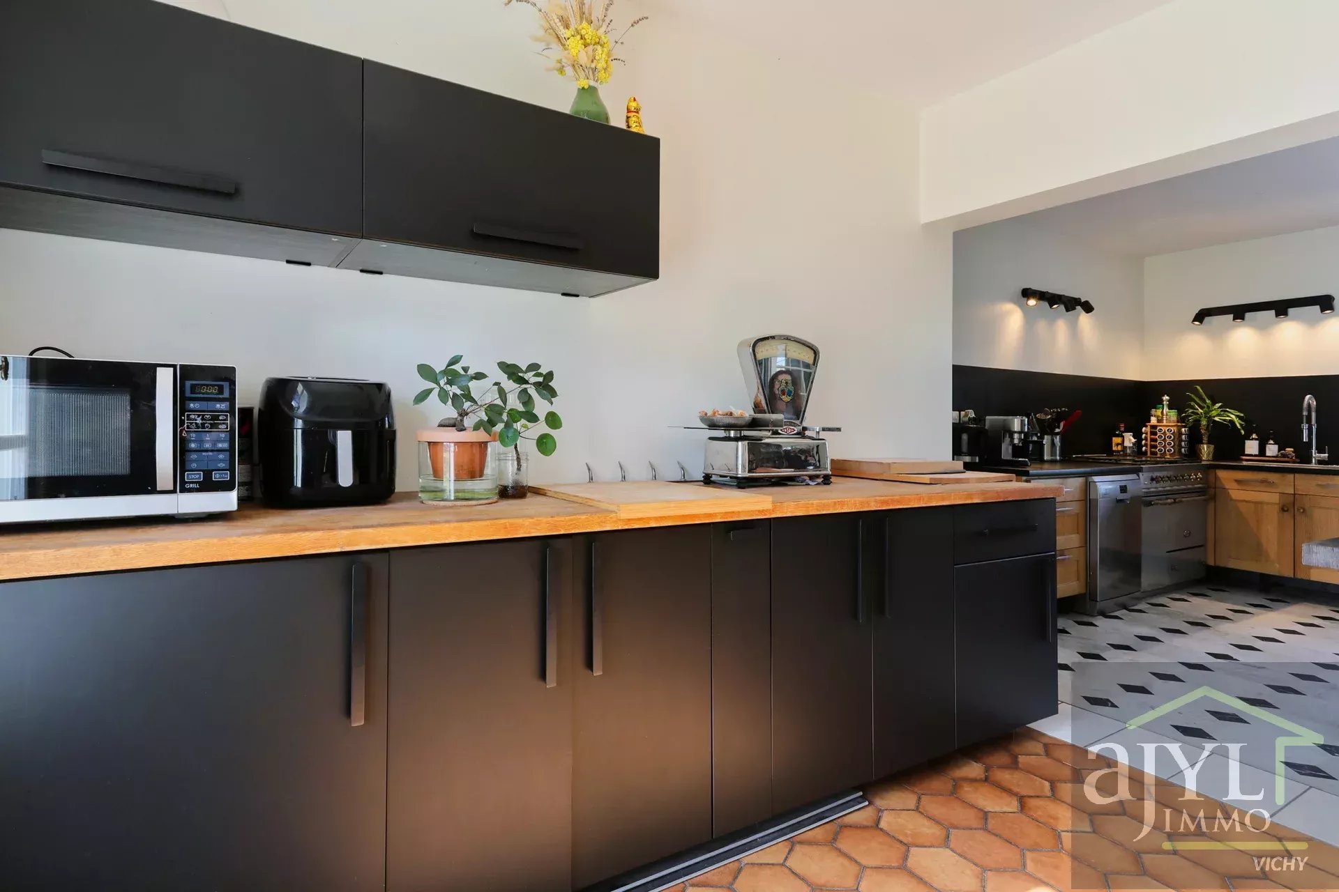 À seulement 9 km de Vichy, belle propriété de caractère d’environ 220 m² habitables, nichée au cœur d’un parc arboré de 6 000 m² — intimité, luminosité et volumes généreux. Rez-de-chaussée (vie de plain-pied possible) : • Entrée / hall 25 m² avec cheminée • Salon lumineux 50 m² avec cheminée • Cuisine équipée + espace repas 30 m² • Bureau, 2 chambres, salle d’eau, WC indépendant, buanderie/chaufferie Étage : • Palier spacieux, 2 chambres (25 m² / 13 m²) • Rangements sur mesure (placards/dressing), salle de bains, WC indépendant Extérieurs & annexes : • Atelier 120 m² au sol avec mezzanine (partie isolée aménageable en bureau) • Garage attenant • Terrain piscinable (fort potentiel aménagement piscine / terrasse) • Toiture refaite en 2022 — travaux structurels récents • Panneaux photovoltaïques rapportant environ 1 800 €/an Travaux & potentiel : quelques rafraîchissements (peinture, salle de bains) permettront de révéler tout le cachet de la maison. Idéale pour famille cherchant espace et tranquillité, ou pour projet mêlant habitation et activité (atelier). Points forts : parc 6 000 m² • volumes lumineux • atelier 120 m² • toiture 2022 • revenus photovoltaïques • proximité Vichy (9 km).