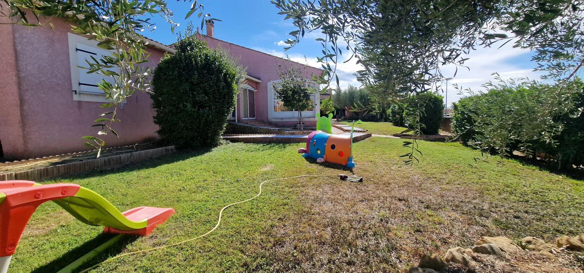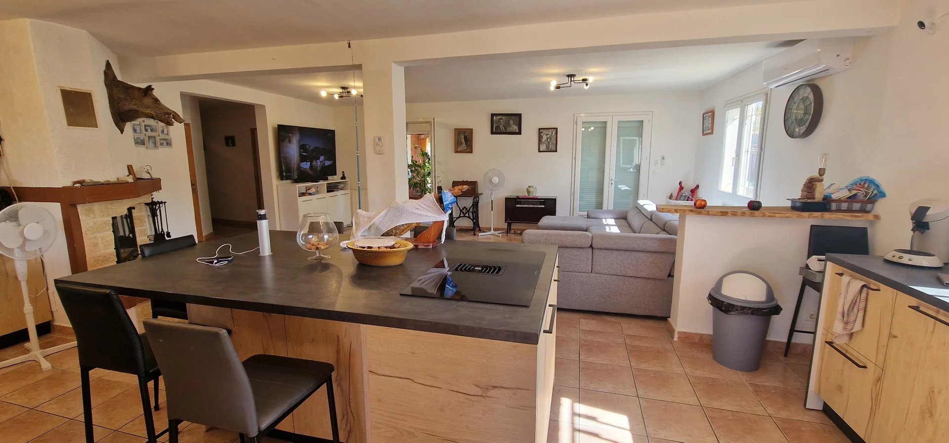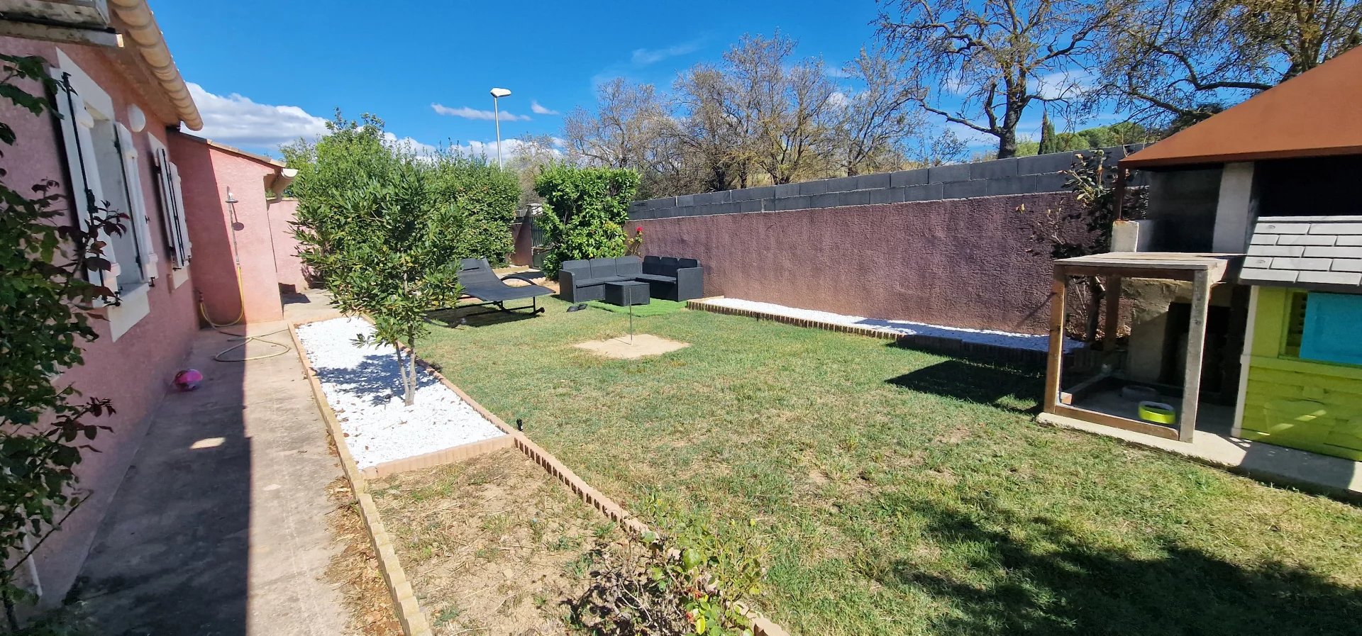Exclusivité Orphea LC immobilier , Spacieuse maison libre sur 4 faces de 148,55m2 habitables composée d'une pièce à vivre de près de 60m2 , salon , véranda , 3 grandes chambres , salle de bain et douche , toilette , buanderie et 2 grands garages . Cette agréable maison est équipée de climatisation réversible ; cheminée , un forage avec arrosage du jardin et barbecue . Sa parcelle de terrain de 1259m2 joliment arborée finira de vous séduire par sa situation et son environnement calme . Plus d" informations au 04 68 320 320 choix 2