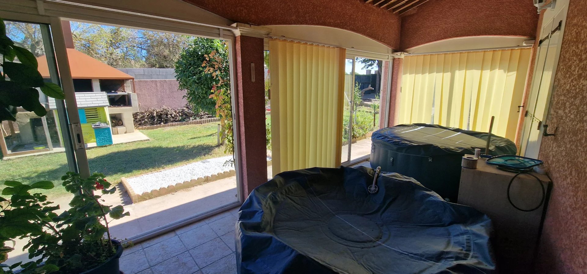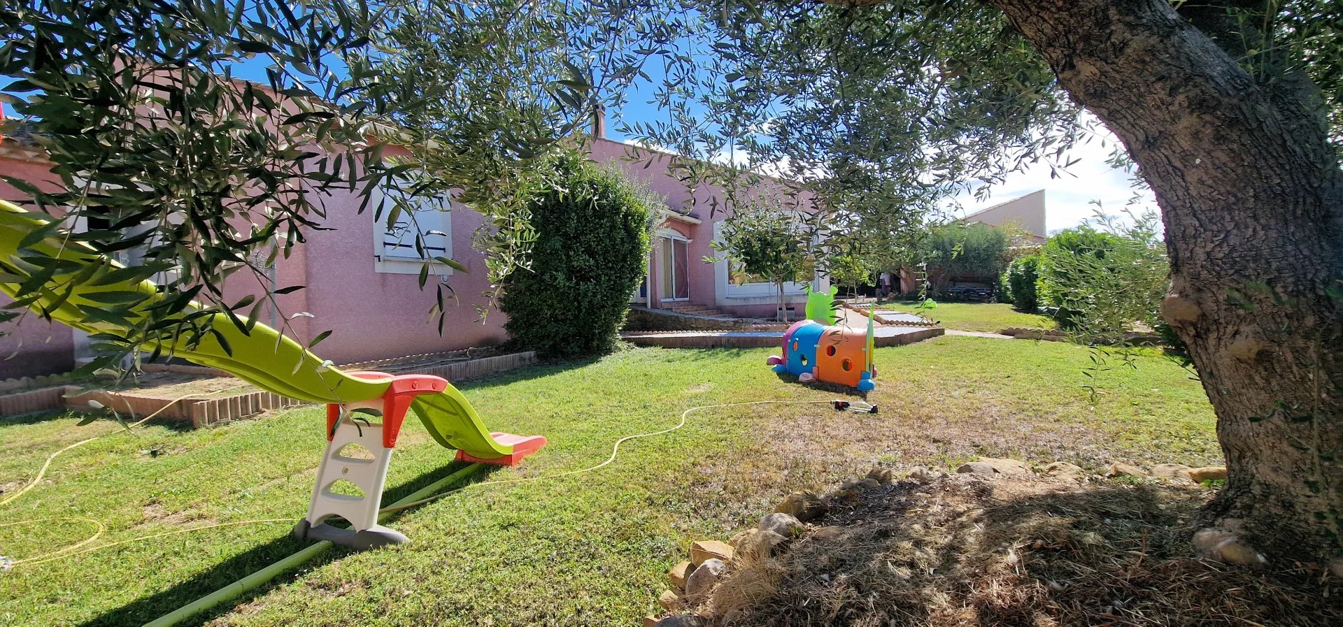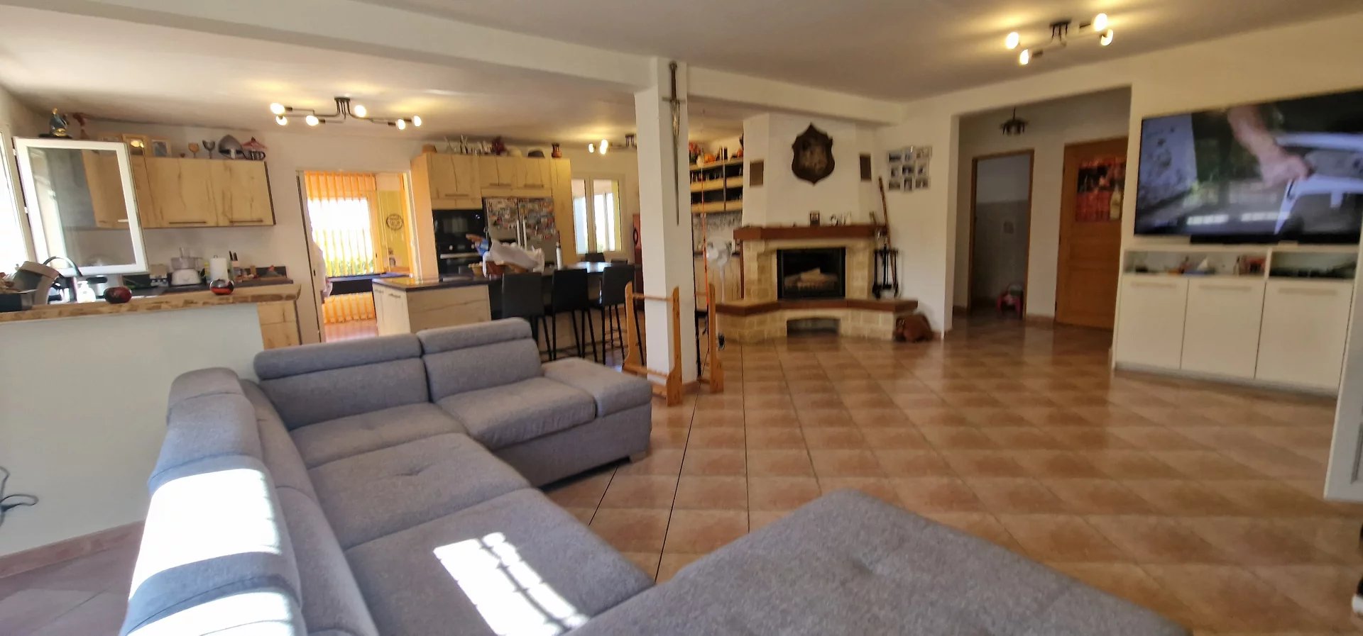 Exclusivité Orphea LC immobilier , Spacieuse maison libre sur 4 faces de 148,55m2 habitables composée d'une pièce à vivre de près de 60m2 , salon , véranda , 3 grandes chambres , salle de bain et douche , toilette , buanderie et 2 grands garages . Cette agréable maison est équipée de climatisation réversible ; cheminée , un forage avec arrosage du jardin et barbecue . Sa parcelle de terrain de 1259m2 joliment arborée finira de vous séduire par sa situation et son environnement calme . Plus d" informations au 04 68 320 320 choix 2