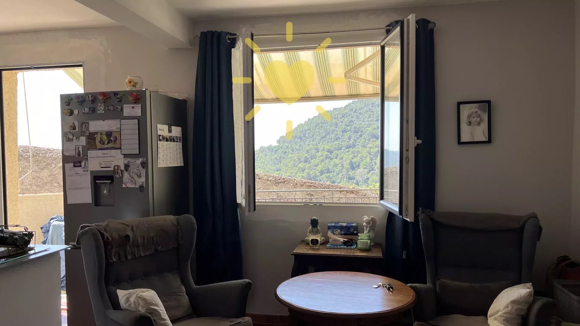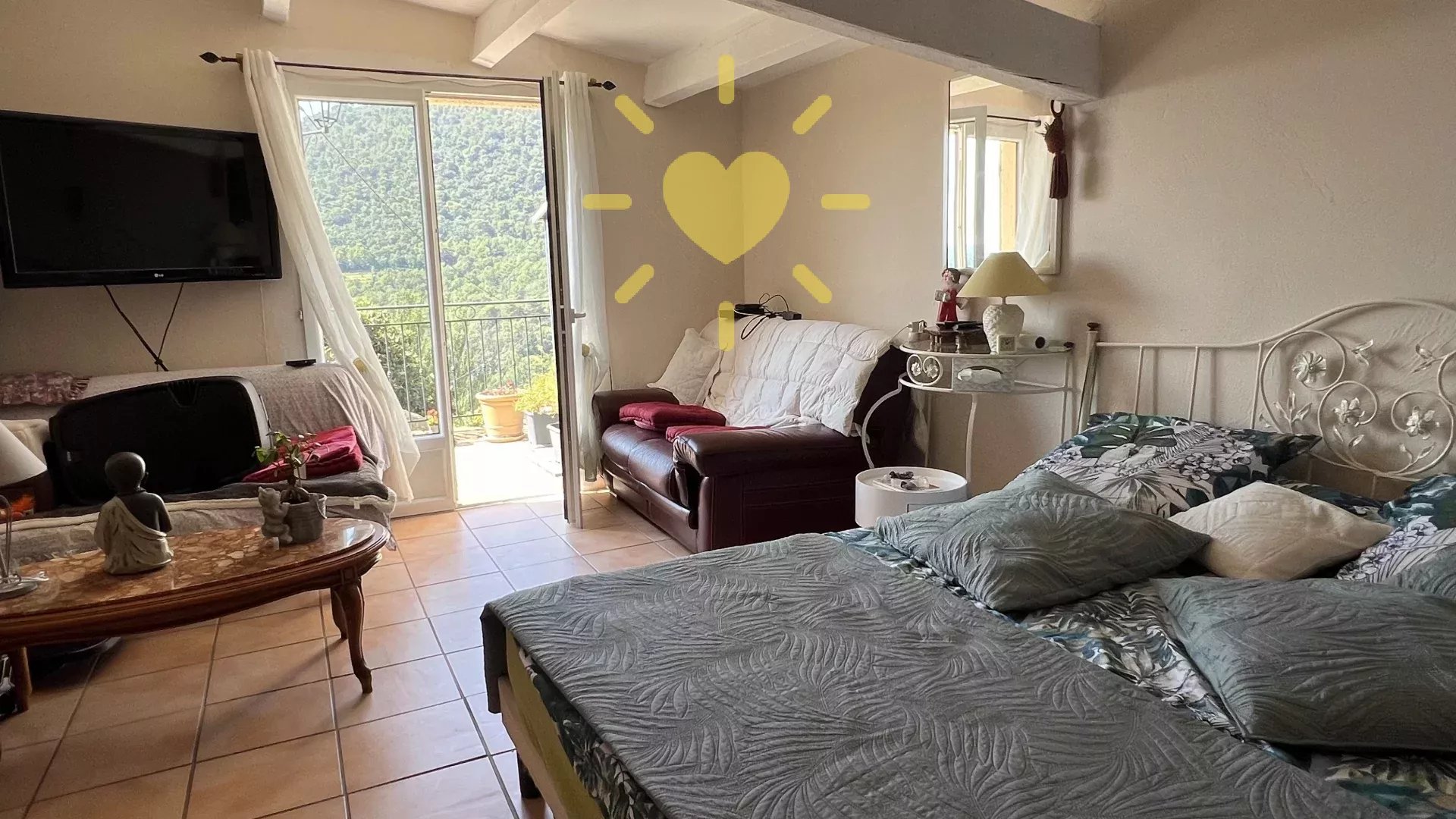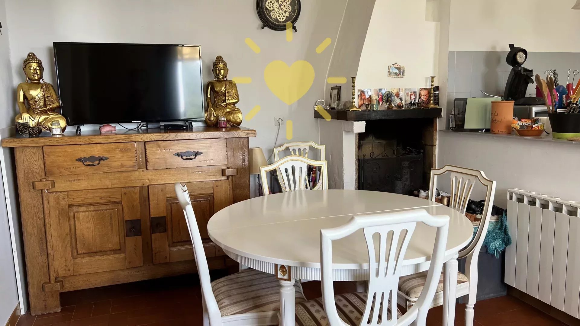 Sur un terrain de 119 m2 villa de 45 m2 comprenant : Séjour avec cheminée, cuisine, chambre, salle d'eau, WC indépendant. Terrasse. Jolie vue dégagée sur la campagne. Très mignon ! Quartier calme et accessible en voiture.