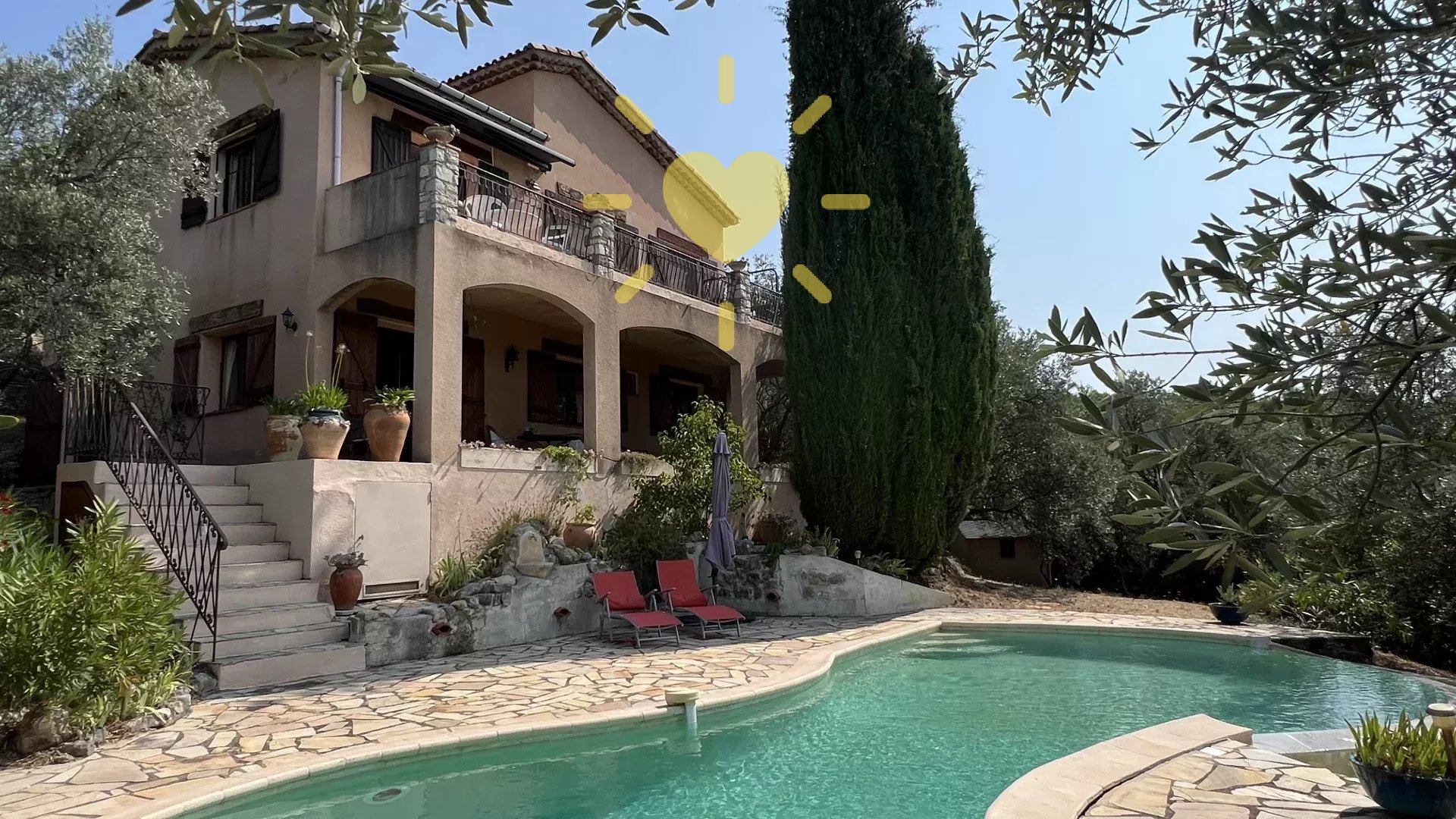 Provarim vous présente une villa atypique par son agencement et l'emplacement très privé mais tout près du centre de Claviers sur une parcelle de 3000 M2. En entrant, rez-de-chaussée vous découvrirez un hall spacieux qui mène au salon, avec les portes-fenêtres qui s'ouvrent sur une terrasse avec une vue époustouflante. Deux chambres, buanderie et une salle de bains avec WC complètent le tout, avant de découvrir, au niveau du jardin, la cuisine équipée avec cheminée et ensuite une grande terrasse couverte idéale pour passer des soirées entre famille/ amis sur les douces soirées d'été. À ce niveau se trouve également un bureau et chambre avec sa salle d'eau et WC. La piscine attire le regard depuis la terrasse avec sa forme libre et le jardin se prolonge par étapes. Sous la maison, un garage spacieux qui peut être transformé en espace supplémentaire si nécessaire. Il y a une citerne de 4000 litres d'eau pour la piscine et le jardin. Vous êtes les bienvenus pour une visite et laissez-vous surprendre.