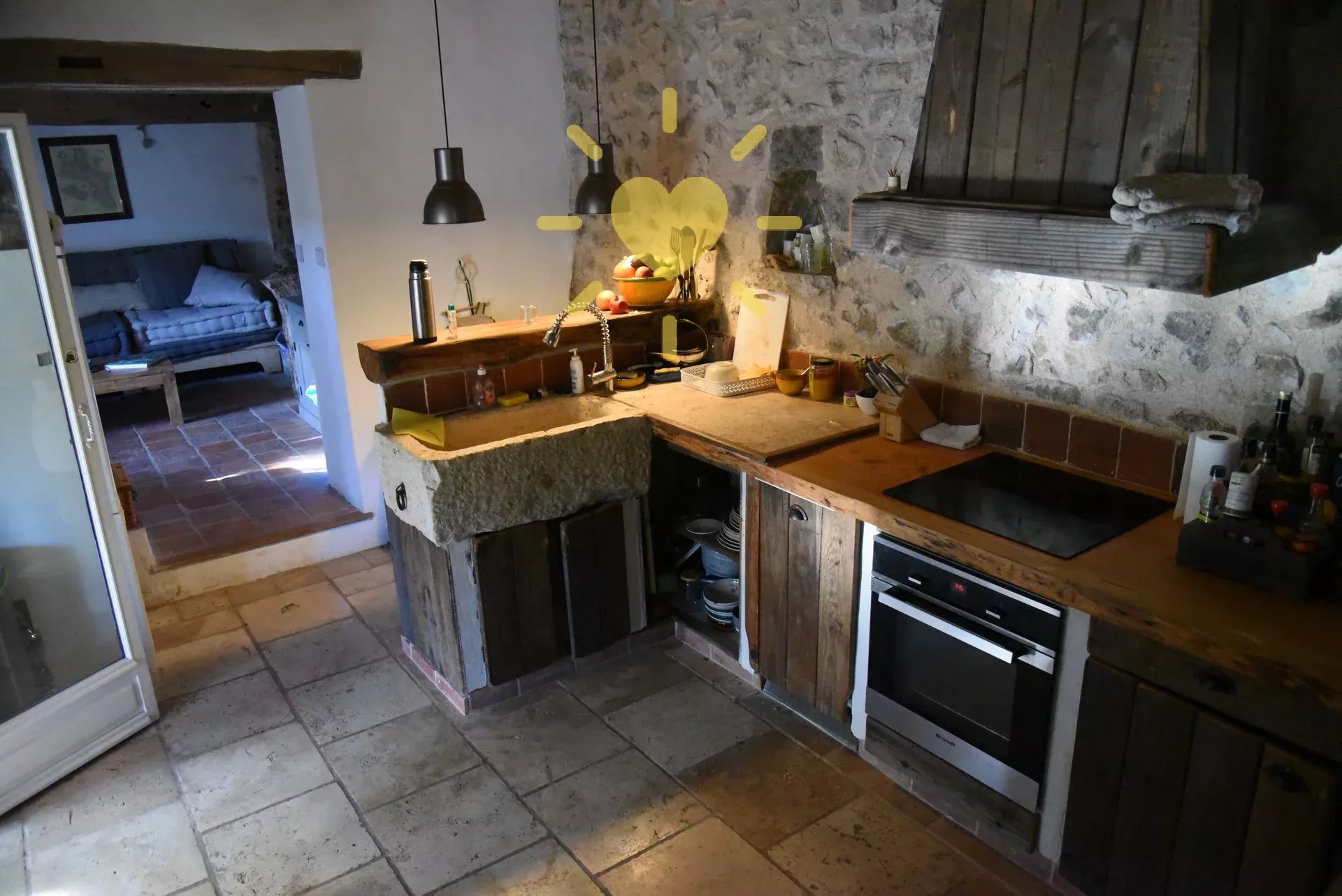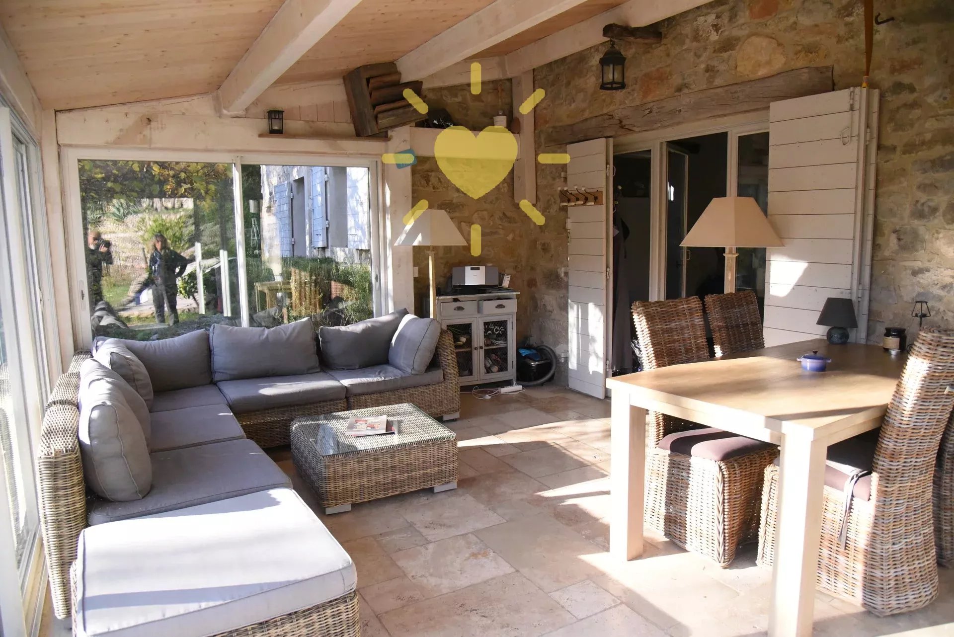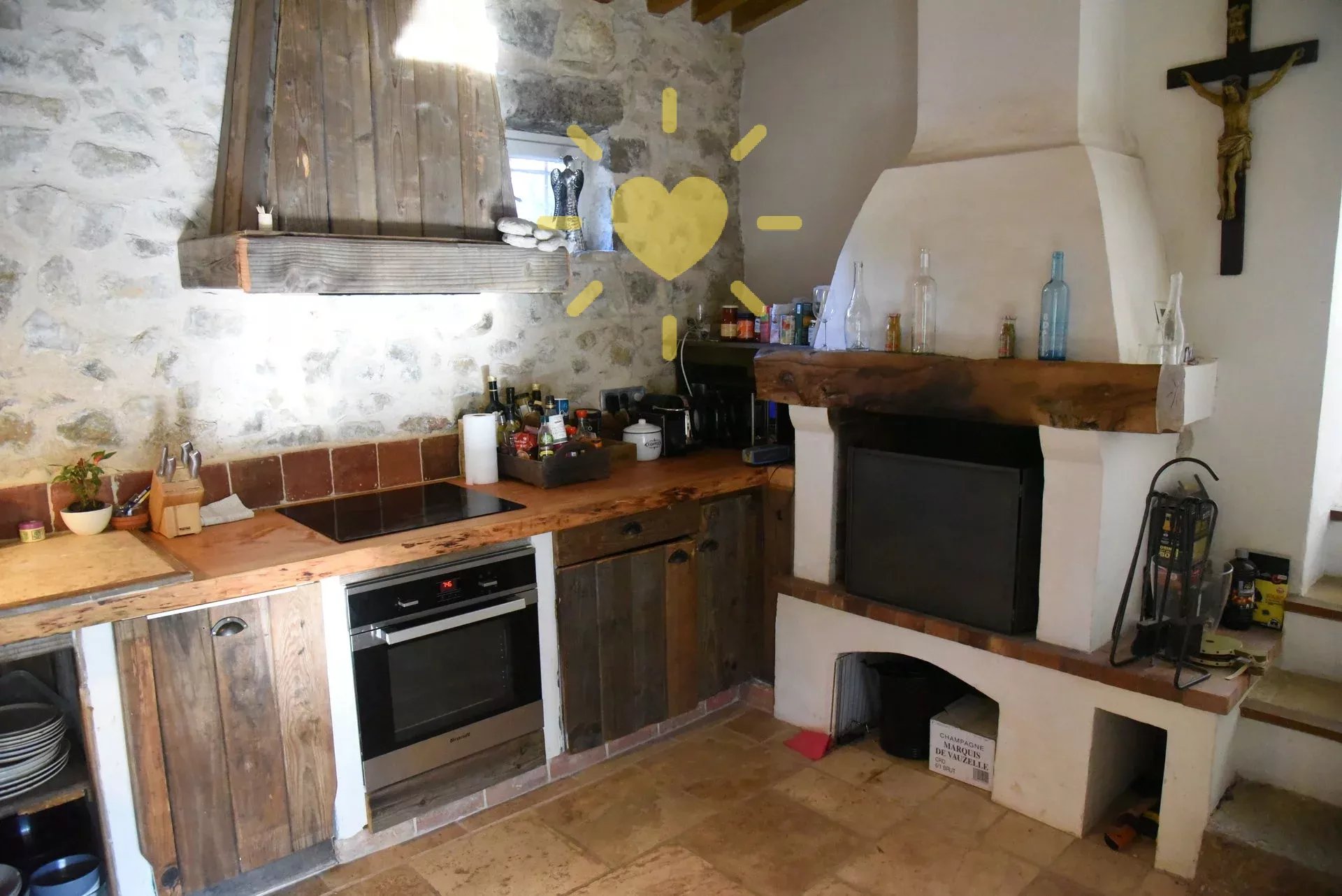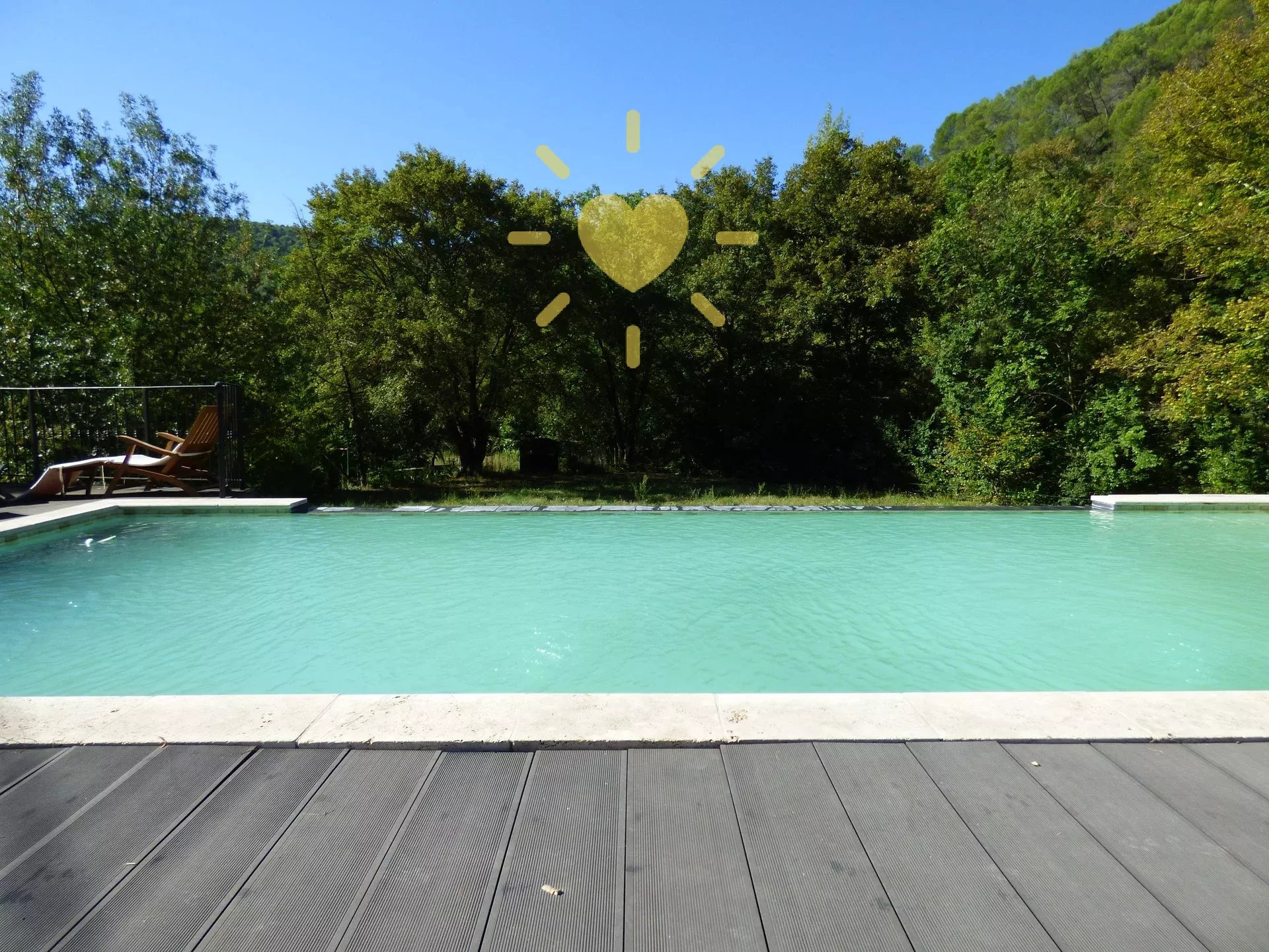 Sur un terrain de 2 600 m2, mas rénové et agrandit comprenant : véranda, séjour, cuisine équipée avec cheminée, bureau/chambre, salle d'eau avec WC. A l'étage : chambre avec salle d'eau et WC. Piscine 10 m x 4 m. Eau par pompage avec microfiltre et anti-tartre. Toiture en partie neuve. Exposition Sud. Vue sur la nature. Pas d'agrandissement possible.