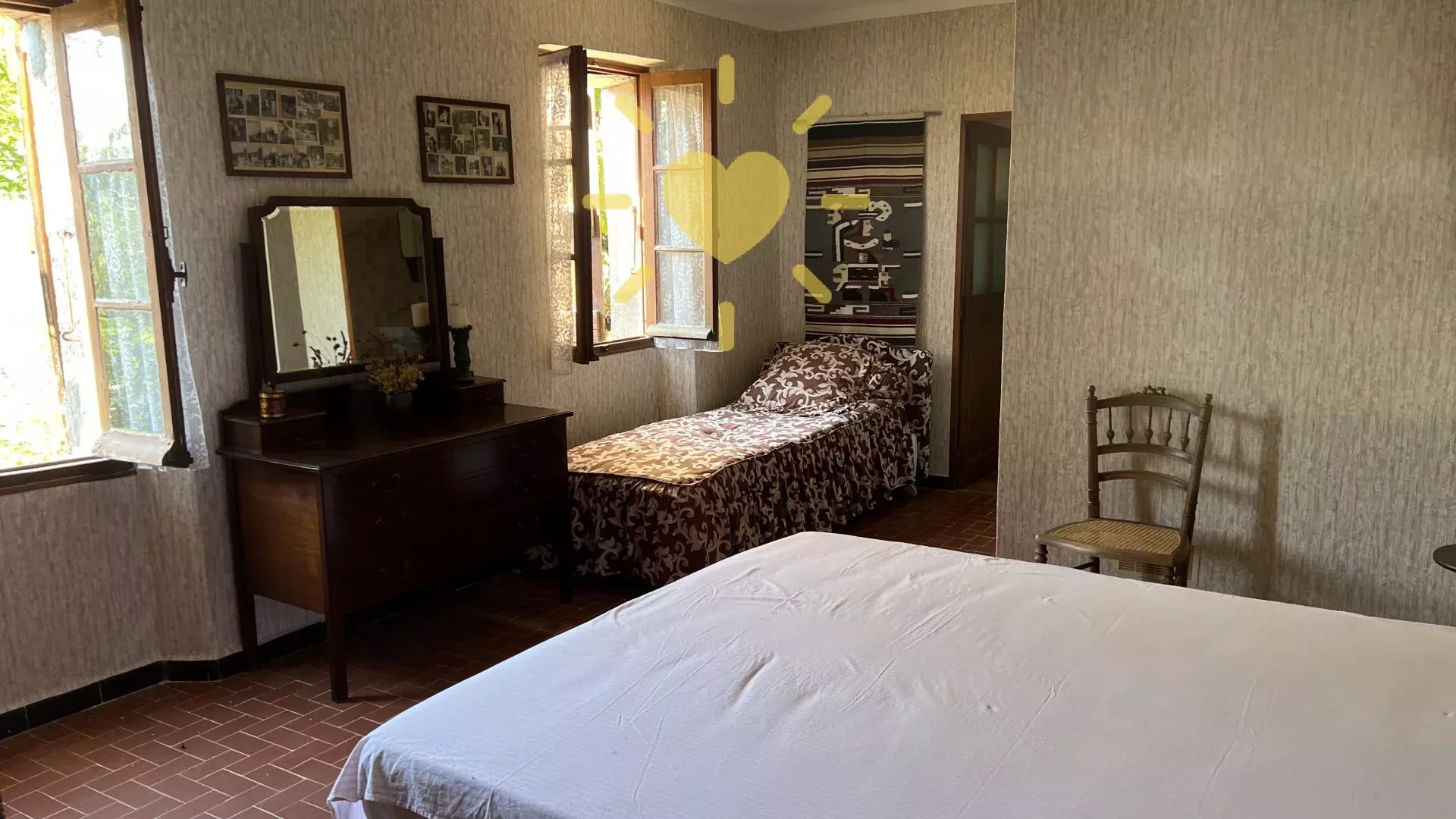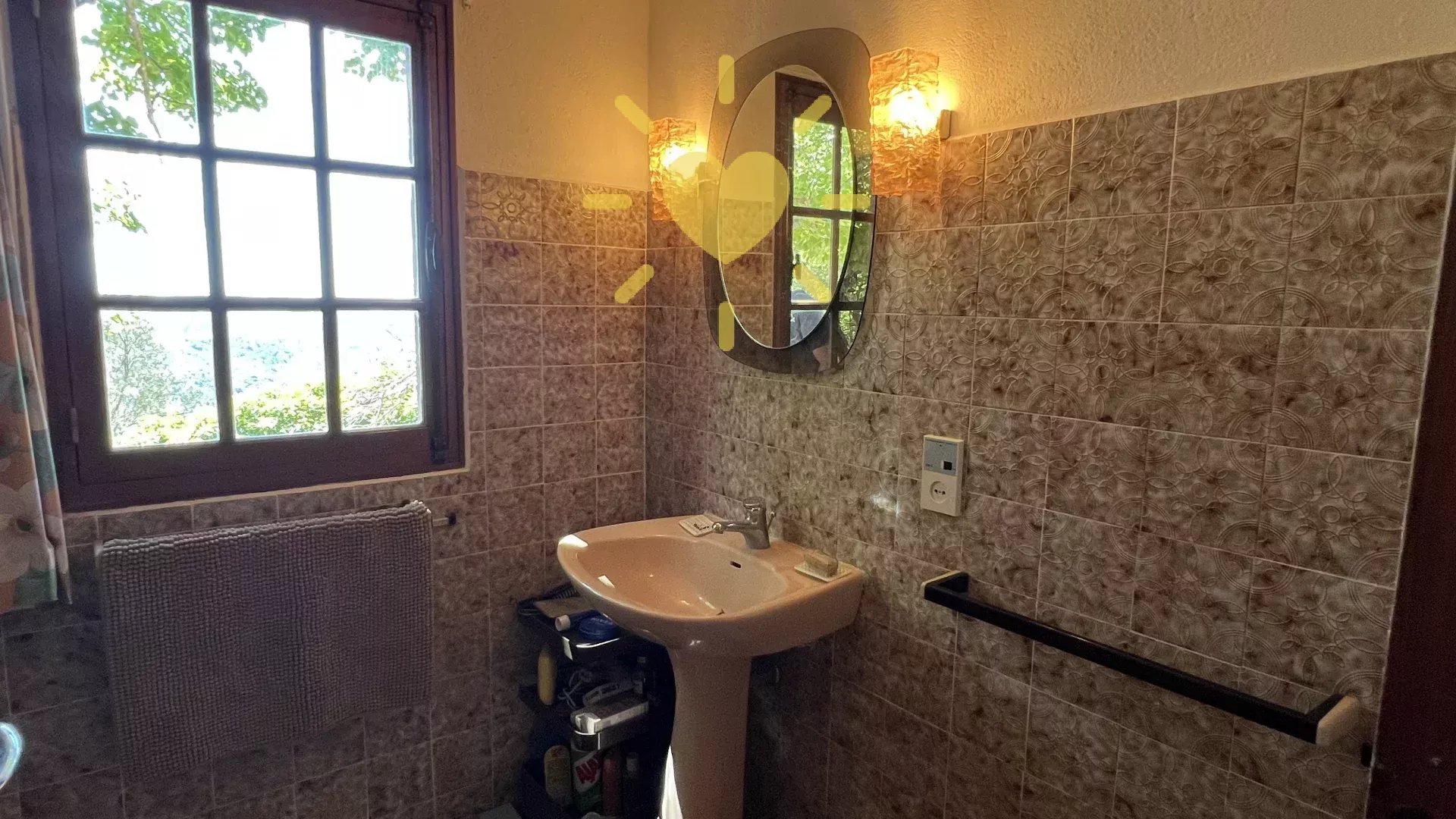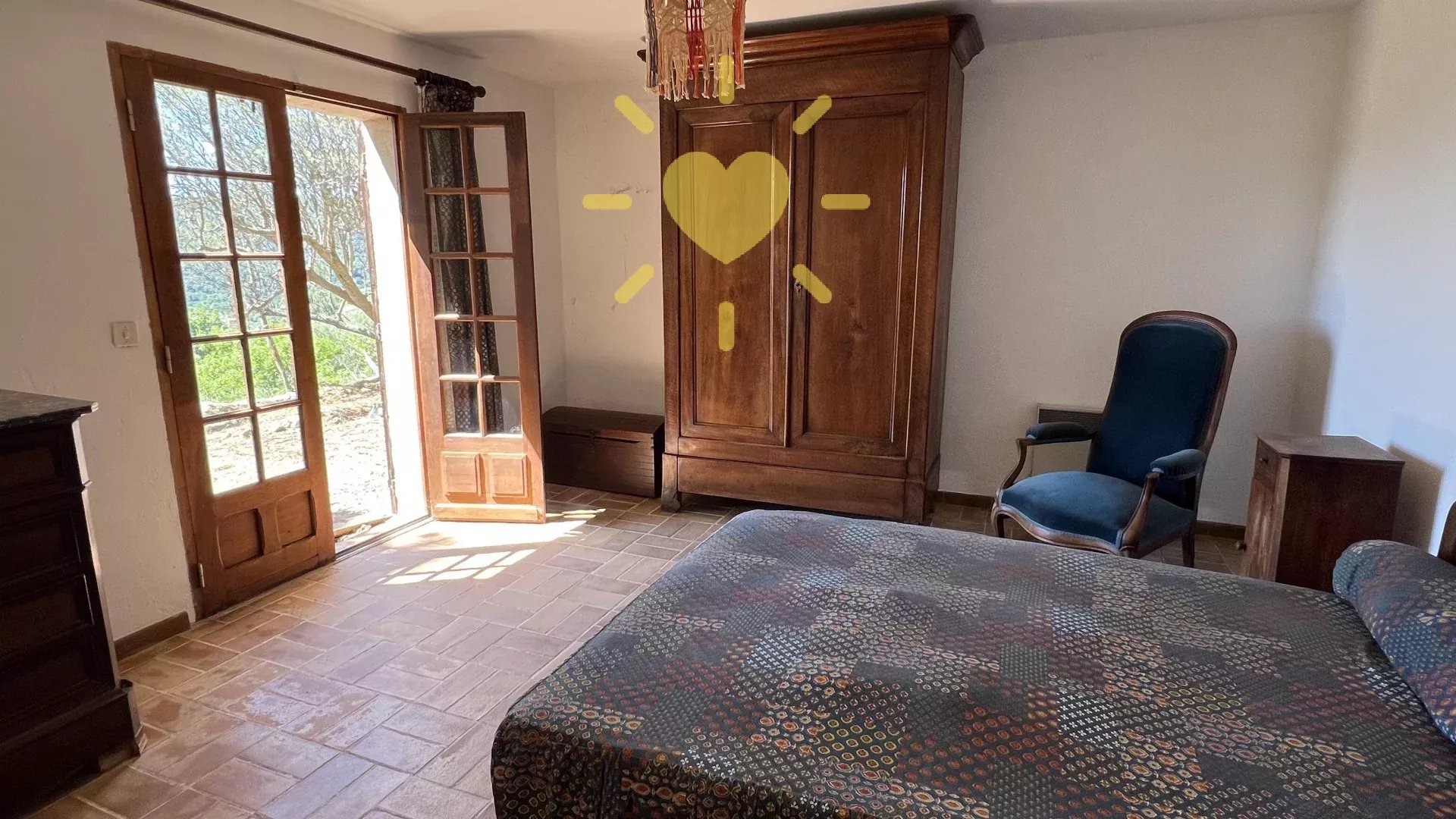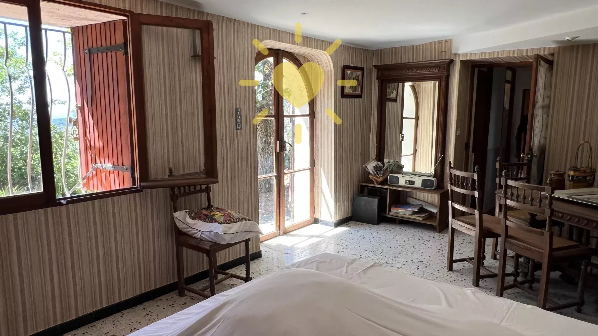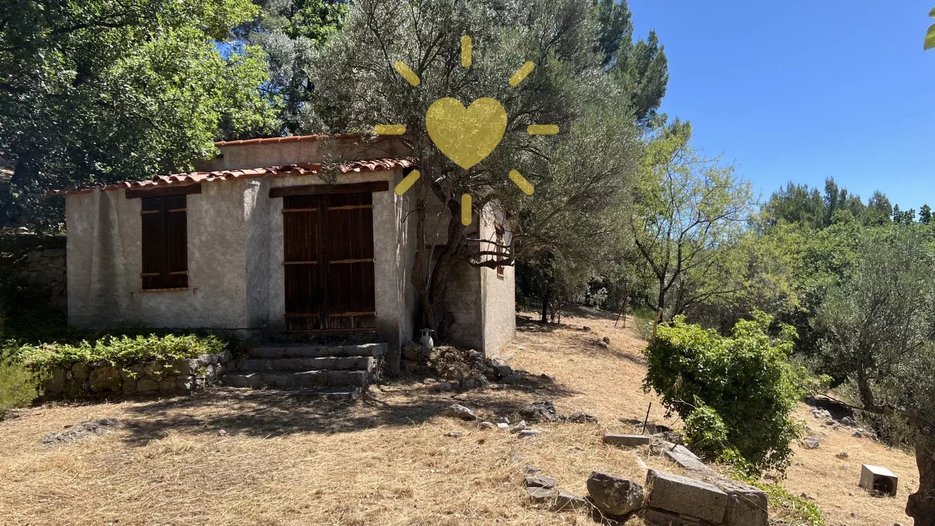Sur un terrain de plus d’un hectare, au calme avec vue panoramique, maison style « Bastide » comprenant : Rez-de-chaussée : Entrée, séjour avec cheminée, cuisine, 2 chambres, salle d’eau avec WC. Rez-de-jardin : 2 chambres, salle d’eau, WC indépendant, buanderie. Cabanon indépendant, double garage. Très beau potentiel ! Exposition Sud. Beau terrain en restanques avec de belles parties plates et ombragées. Travaux à prévoir. Environ 2 km du village.