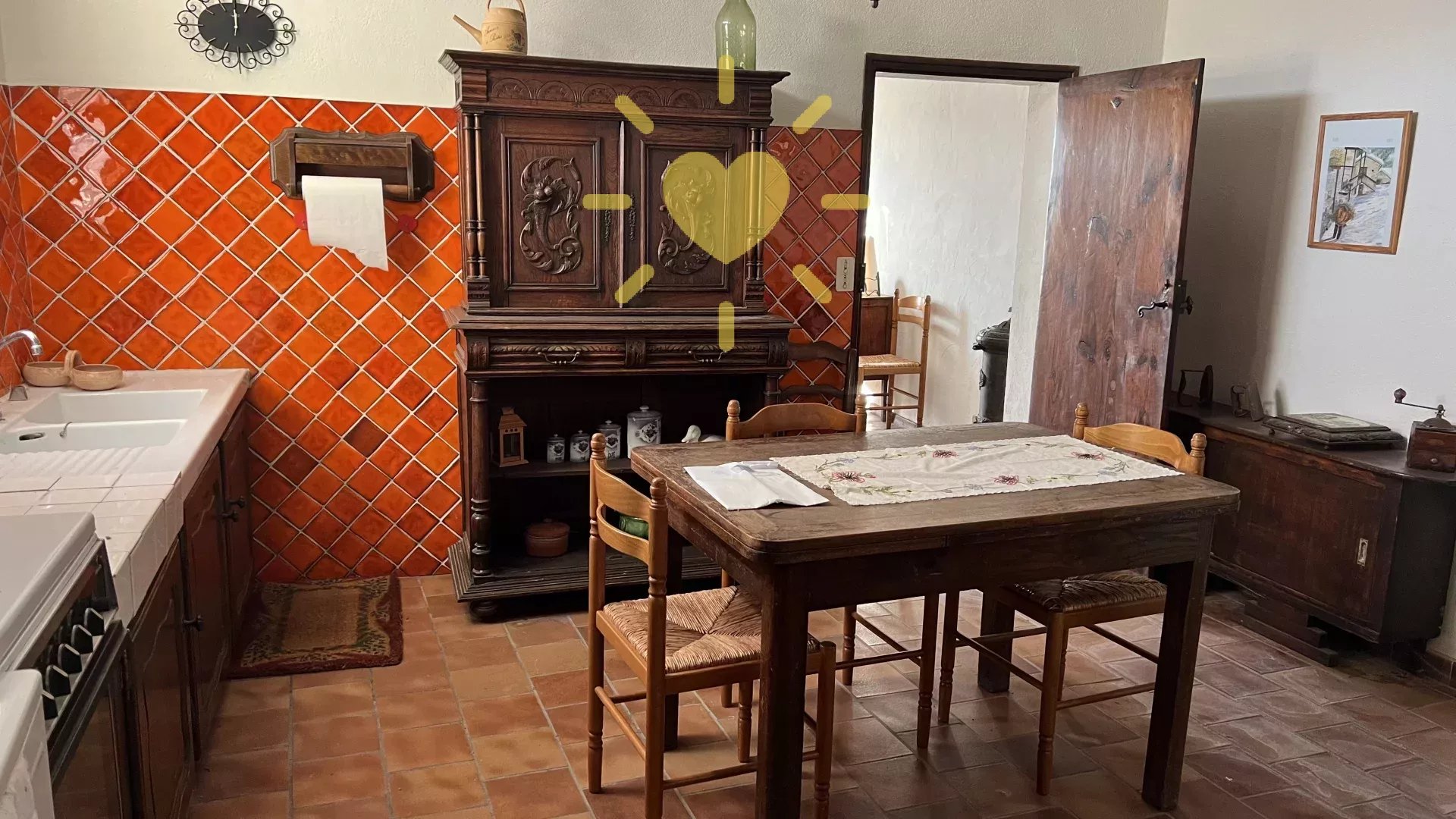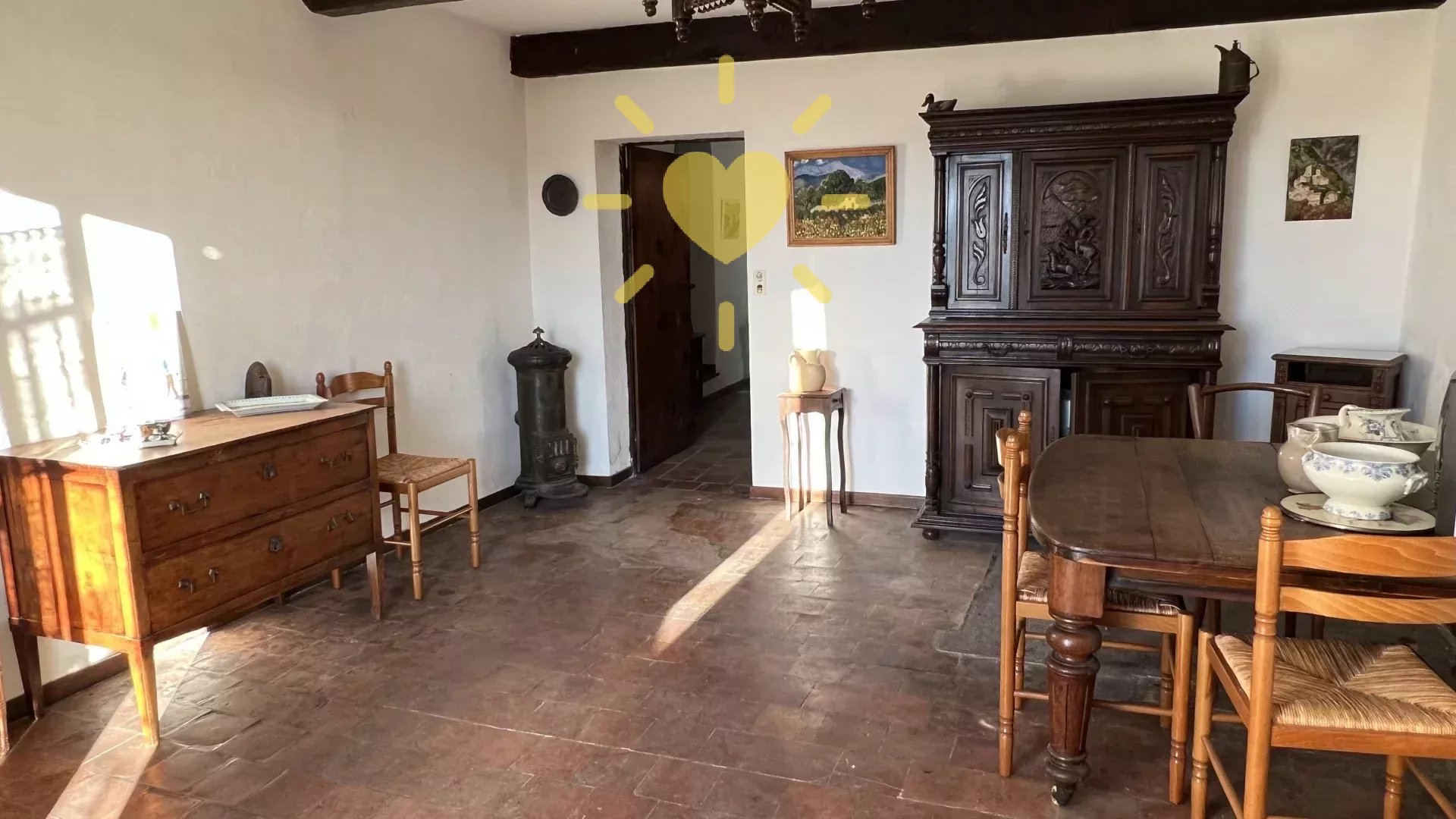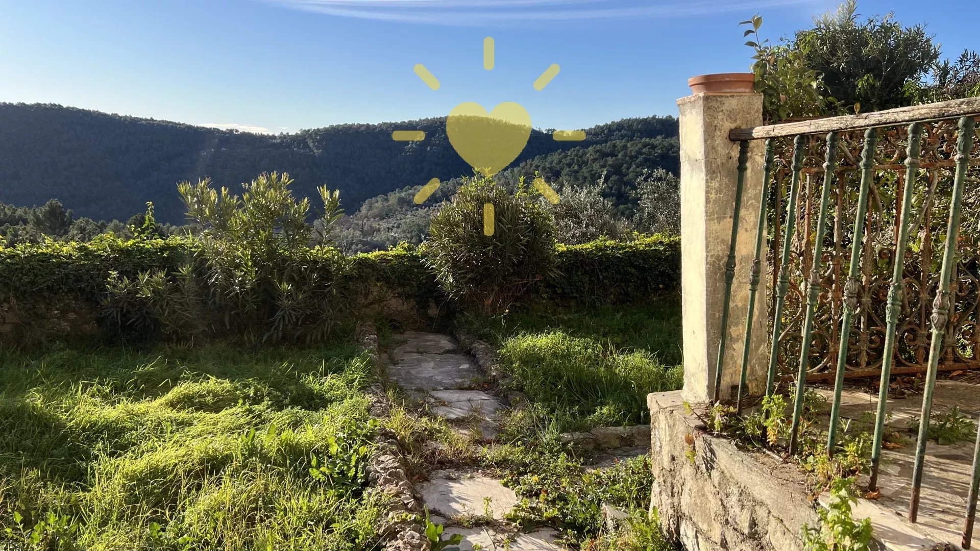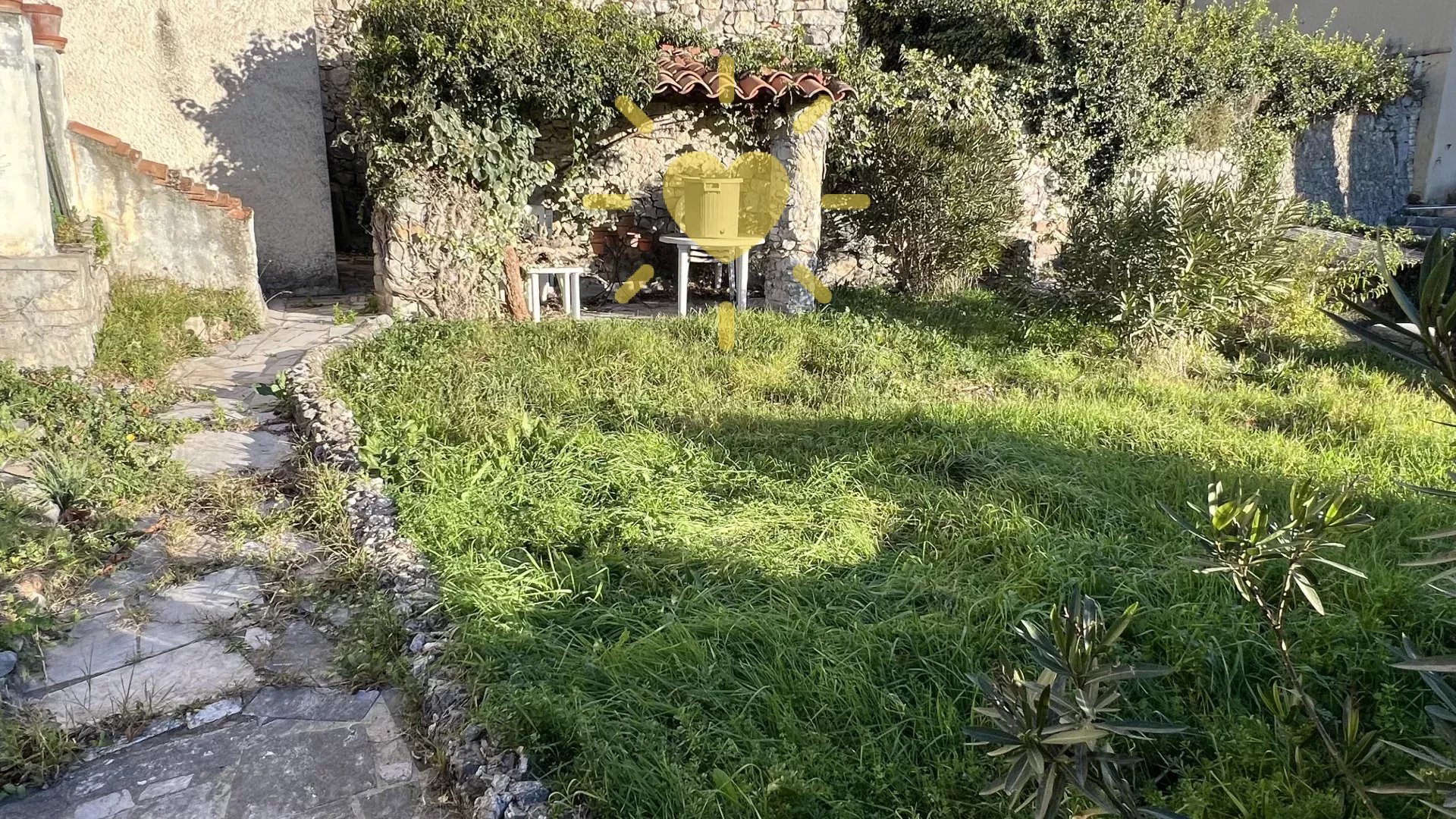 Dans une maison de village, au rez-de-chaussée, un appartement avec accès privatif comprenant : entrée, cuisine avec coin repas, salon avec cheminée et balcon, chambre, salle d'eau, WC indépendant. A l'étage : 2 greniers. Remise en sous-sol. Rez-de-jardin : un studio indépendant avec un séjour/cuisine donnant sur terrasse, une salle d'eau WC. Jardin de 250 m2. Vue panoramique, exposition Sud, au calme. Travaux à prévoir.