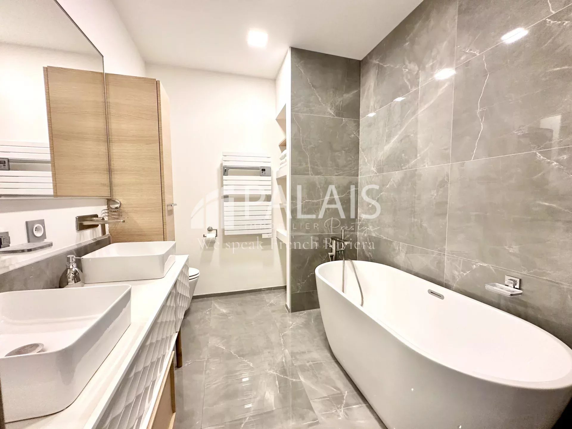 Ainsi qu'une deuxième chambre de 14 m², avec salle de douche, donnant sur un balcon de 5 m² au calme total, et un WC invité.