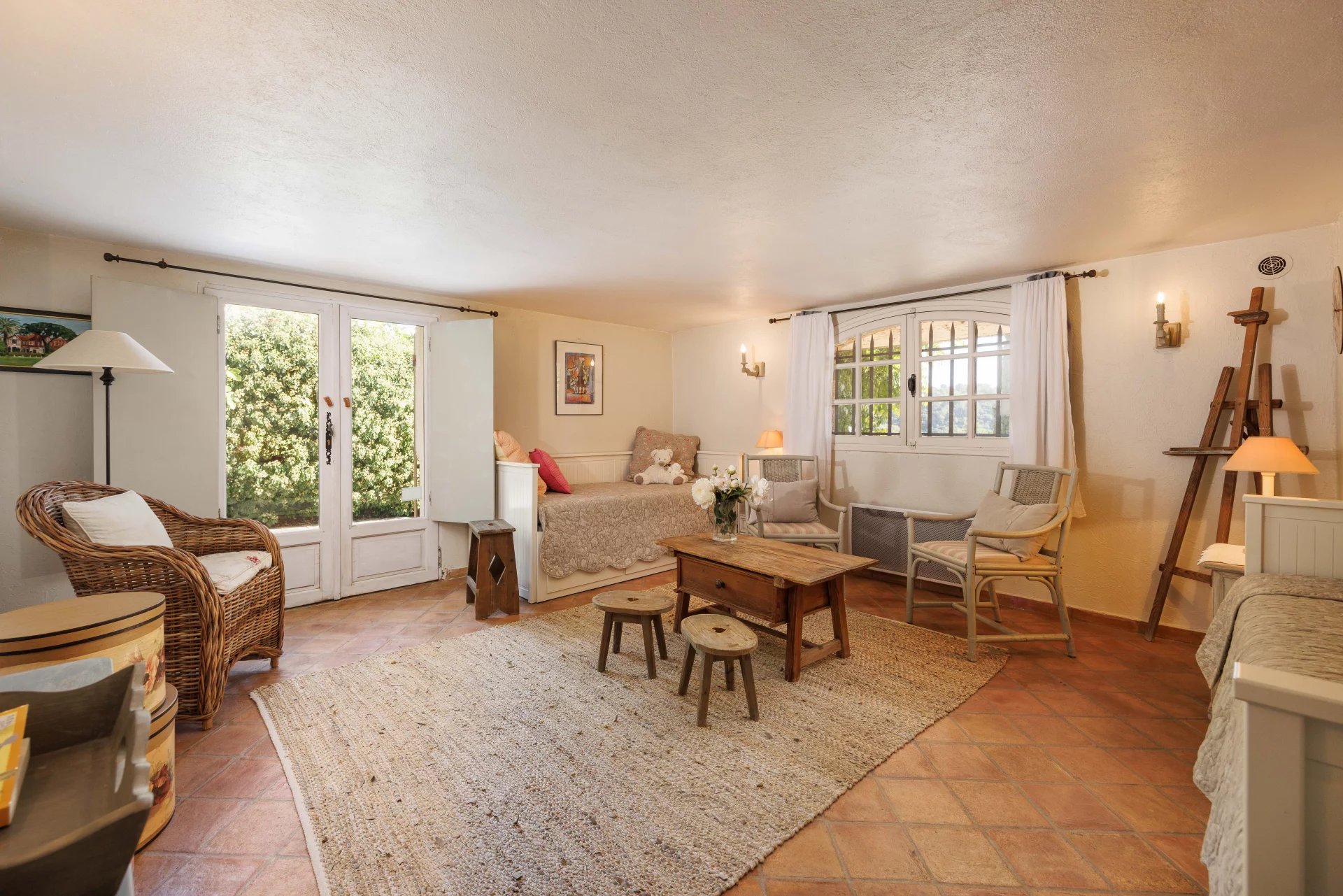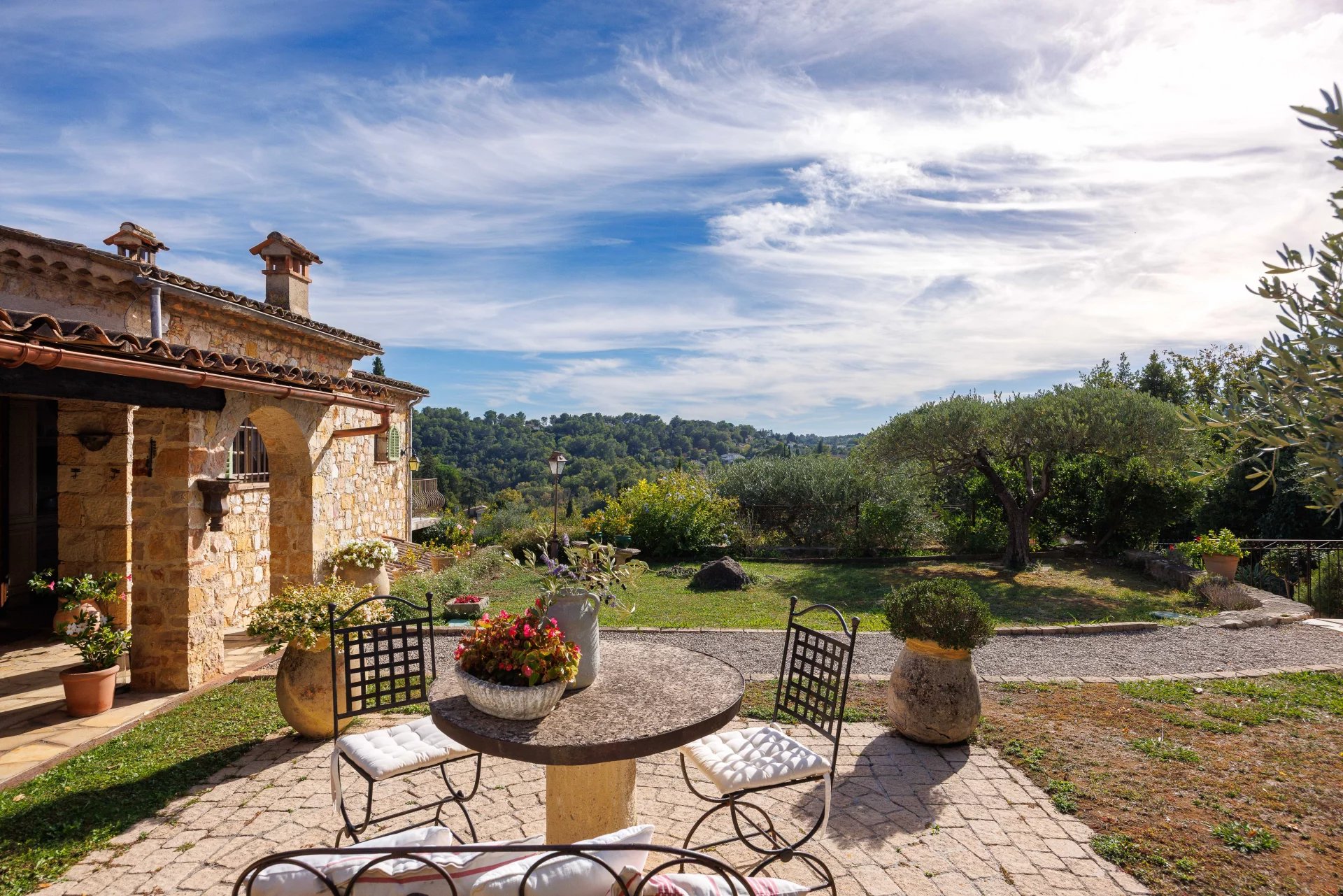 Exclusivité - À moins de 200 mètres du cœur du village de Valbonne, au fond d'une impasse, cette maison en pierre baptisée « La Colombe » offre une très belle vue dégagée vers le village, son clocher et les collines environnantes. L’accès se fait par un portail privé partagé avec deux autres propriétés discrètes, garantissant tranquillité et intimité. Édifiée sur un terrain en pente de 1500m², la maison occupe la partie haute du terrain, bénéficiant ainsi d’une position dominante. En contrebas se trouvent la piscine à débordement, l’aire de stationnement soigneusement intégrée et un terrain de pétanque niché au fond du jardin. On accède à cette villa « carte postale provençale » par un portillon ouvrant sur un jardin accueillant ainsi qu’une belle terrasse couverte. La surface totale est d’environ 186m² répartis sur deux niveaux. L’entrée s’ouvre sur une cuisine indépendante avec sols en tomettes qui se prolongent dans l’ensemble de la maison. Le séjour spacieux (43m²) avec cheminée donne accès à une terrasse offrant une vue dégagée sur le village. Une petite tour décorative accessible par un escalier en colimaçon peut servir de bureau ou d’espace de rangement. Le même niveau comprend deux chambres de 14 et 17m², qui partagent une salle d’eau avec douche, double vasque et toilettes. Les deux chambres s’ouvrent sur une terrasse orientée à l’est, également accessible depuis l’arrière de la maison. Un WC invité complète ce niveau. Le niveau inférieur, avec entrée indépendante, accueille deux chambres (20 et 14m²) qui partagent une salle d’eau avec douche, vasque et WC. Une buanderie et un local technique pour la chaudière (fioul) complètent cet étage. De larges terrasses en pierre entourent ce niveau et mènent par un escalier extérieur vers la piscine à débordement de 4,5 par 7 mètres. Dans le prolongement de la plage piscine, on accède à la partie basse du jardin, à la zone de stationnement gravillonnée et enfin au terrain de pétanque. A l’arrière de la maison se trouvent une spacieuse aire de jeux et un cellier. Facile d’entretien, le jardin s’organise en restanques naturelles et s’harmonise parfaitement avec la charmante architecture de la maison. Avec sa situation recherchée à pied du village, cette propriété séduira ceux qui recherchent une demeure provençale authentique, adaptée aussi bien à une résidence principale qu’à une maison de vacances. **** Valbonne – Ce village authentique a été conçu selon un plan en damier, un trait architectural rare qui a été bien préservé depuis sa fondation par des moines au XIIe siècle. On y trouve de nombreux restaurants chaleureux et de petites boutiques intimes dans les ruelles étroites et charmantes. Au cœur du village se trouve la vaste Place des Arcades, animée toute l’année. Valbonne est située au cœur du plus grand technopôle d’Europe, Sophia Antipolis. Ce technopôle couvre une superficie de 4 300 hectares et emploie 35 000 personnes dans les domaines de la haute technologie, R&D et de la communication. De magnifiques terrains de golf à proximité, une excellente école internationale ainsi qu’une infrastructure remarquable expliquent également la popularité de Valbonne. La distance du village jusqu’à l’aéroport de Nice est de 24 km et jusqu’à Cannes, de 12 km.