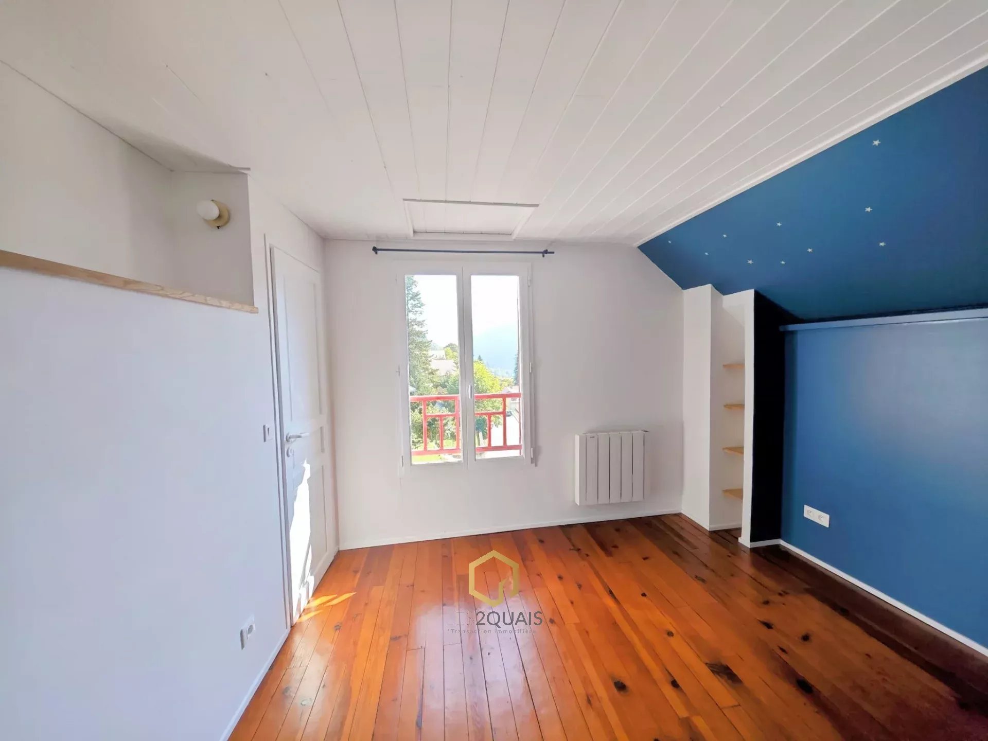 • 2ème étage : deux chambres, une salle de bains, WC indépendants, rangements.
