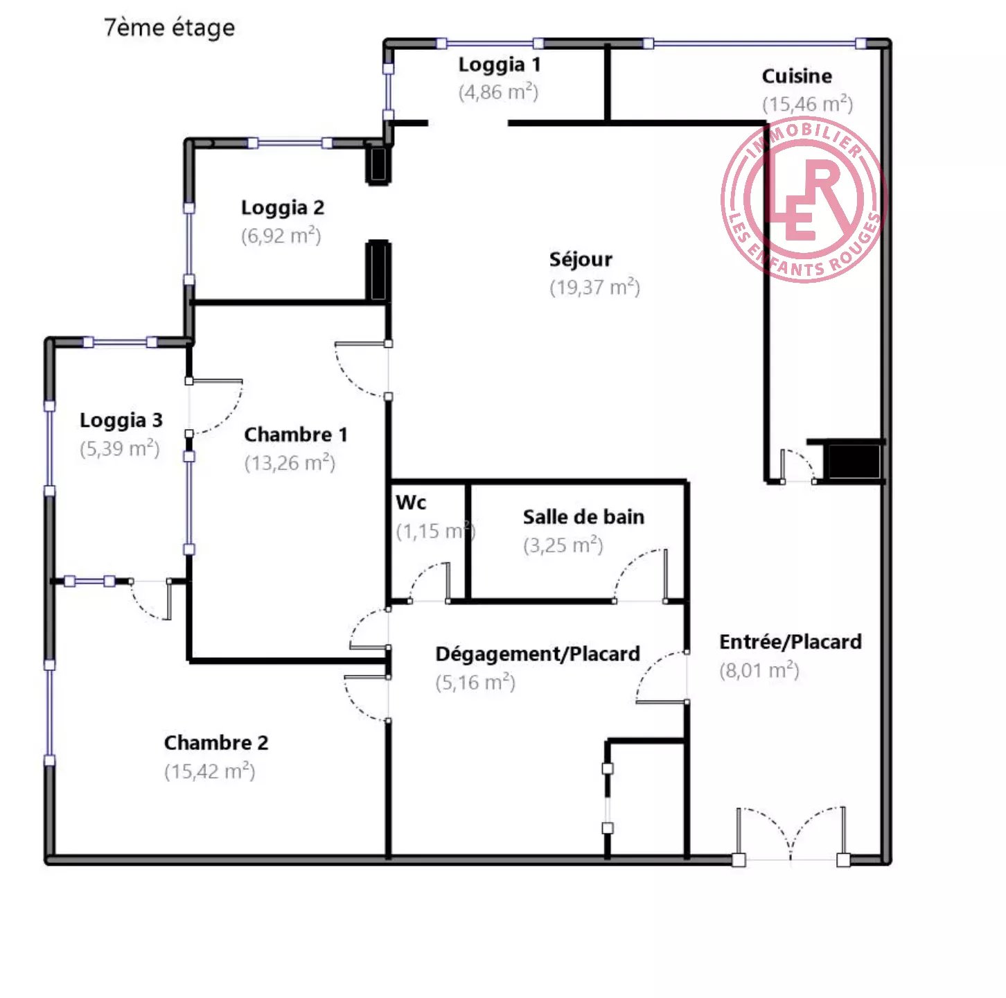 Exclusivité - L’Agence des Enfants Rouges a le plaisir de vous proposer un appartement confortable et lumineux de 88m2 Carrez et 98m2 au sol, situé au 7eme étage avec ascenseur d’un immeuble récent de standing (avec gardien et vidéo surveillance).