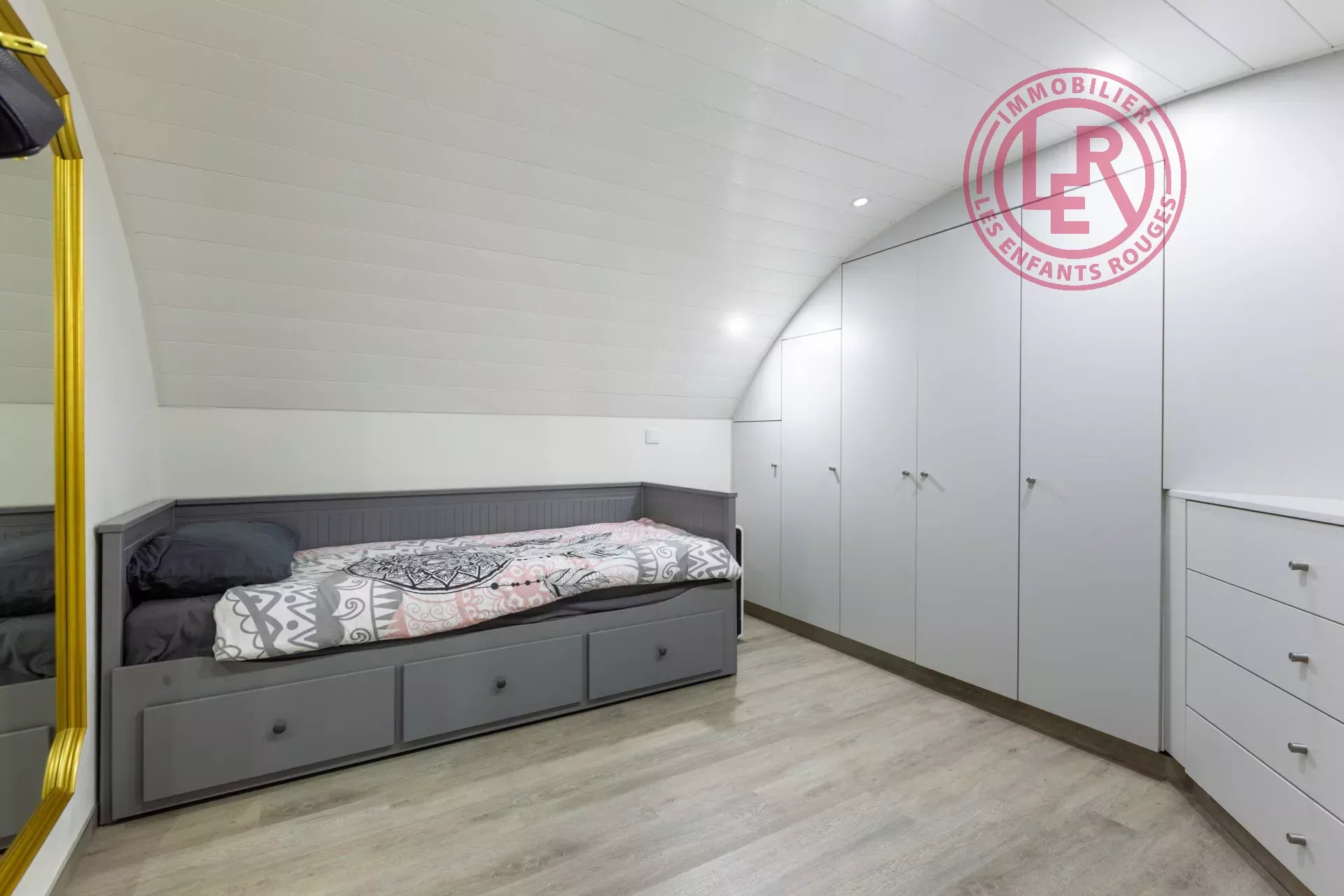 Au premier étage, l’espace nuit, composé de trois chambres avec de nombreux rangements, dont une suite parentale avec salle de douche, ainsi qu’une salle de bain avec toilettes.