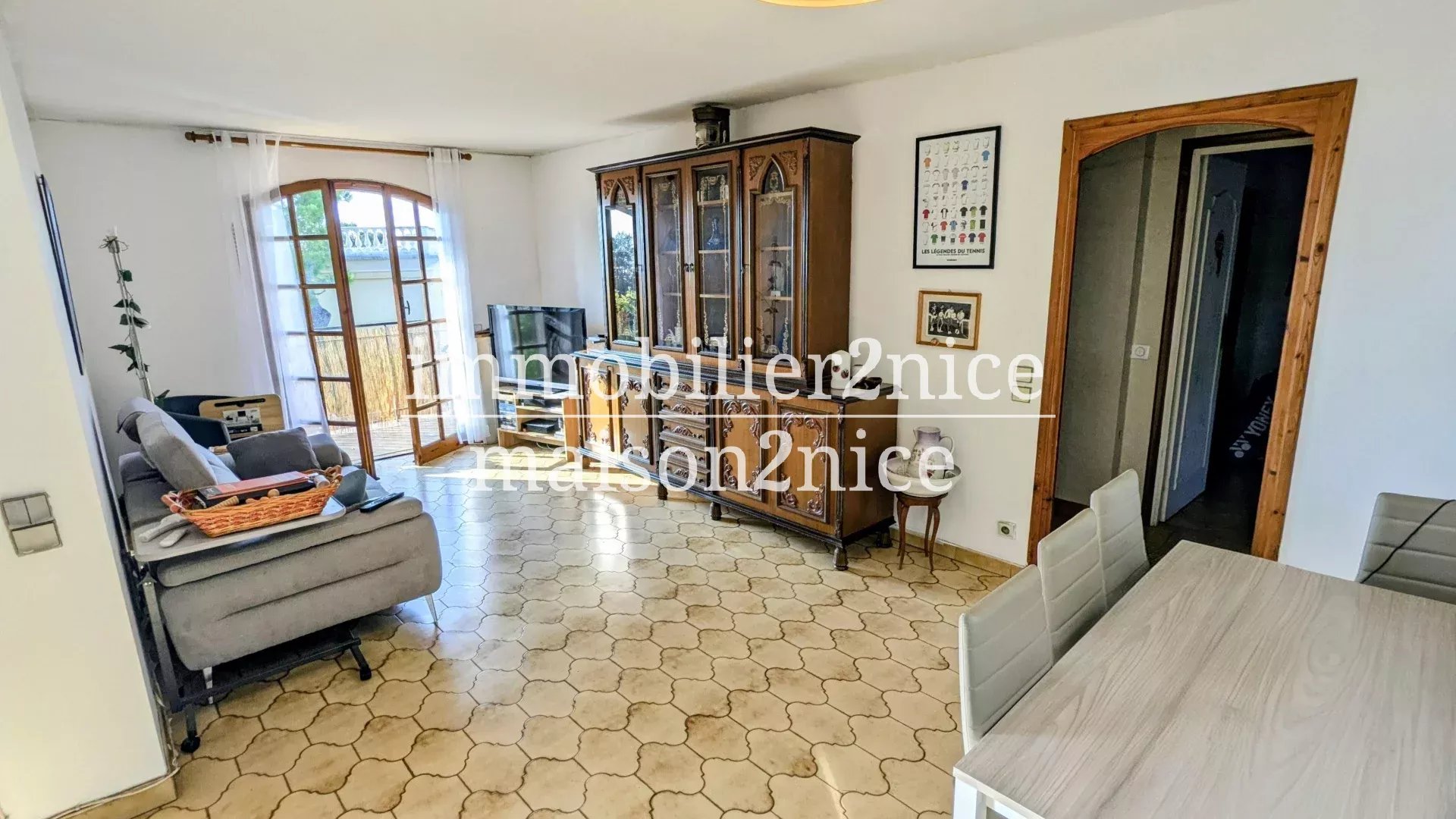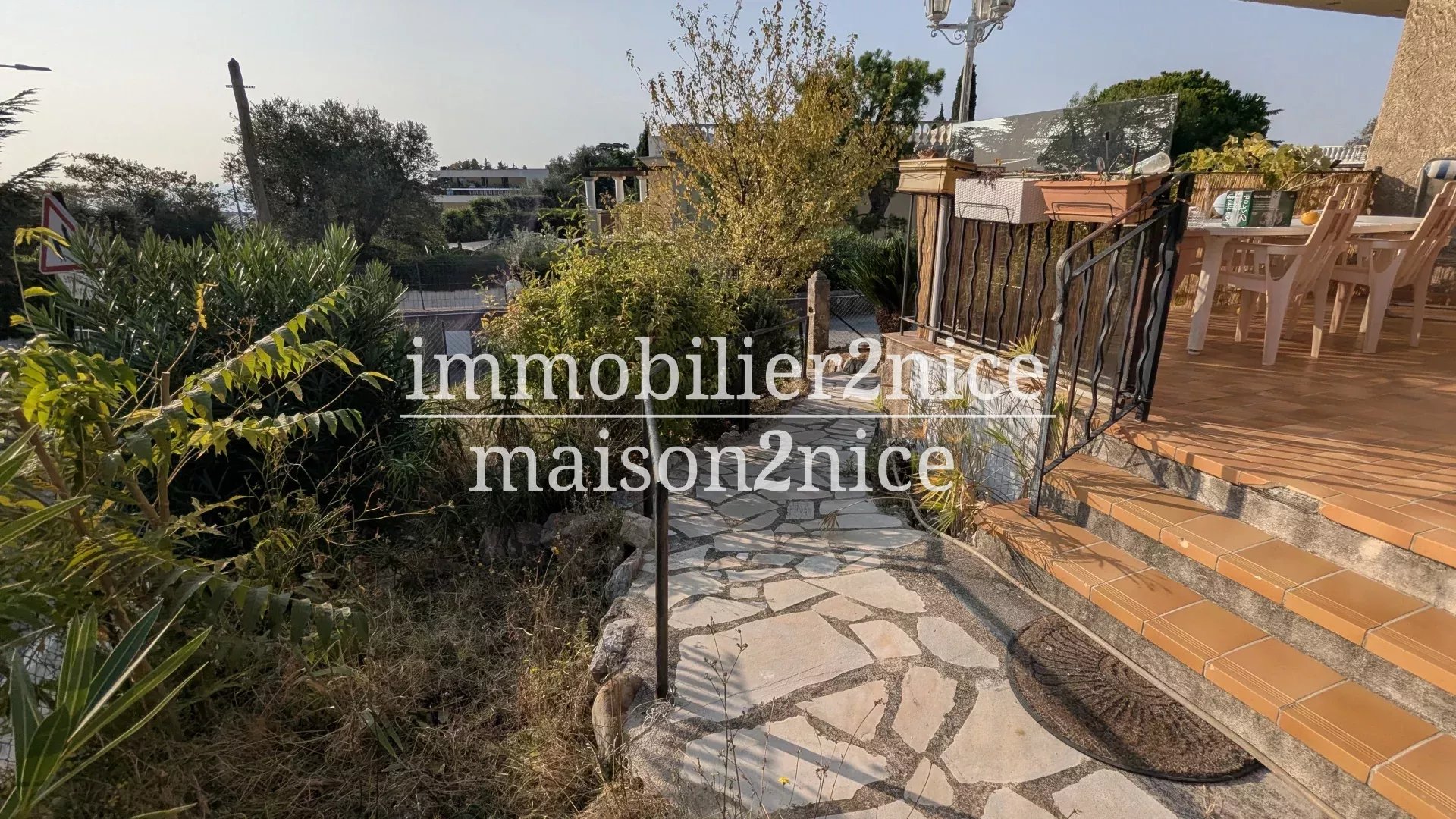 Dans une villa en copropriété : 3 pièces en Rdj avec garage et immense sous sol, vue dégagée campagne et mer, superbe exposition, séjour donnant sur une belle terrasse, cuisine indépendante avec sa terrasse, entrée indépendante, jardin.