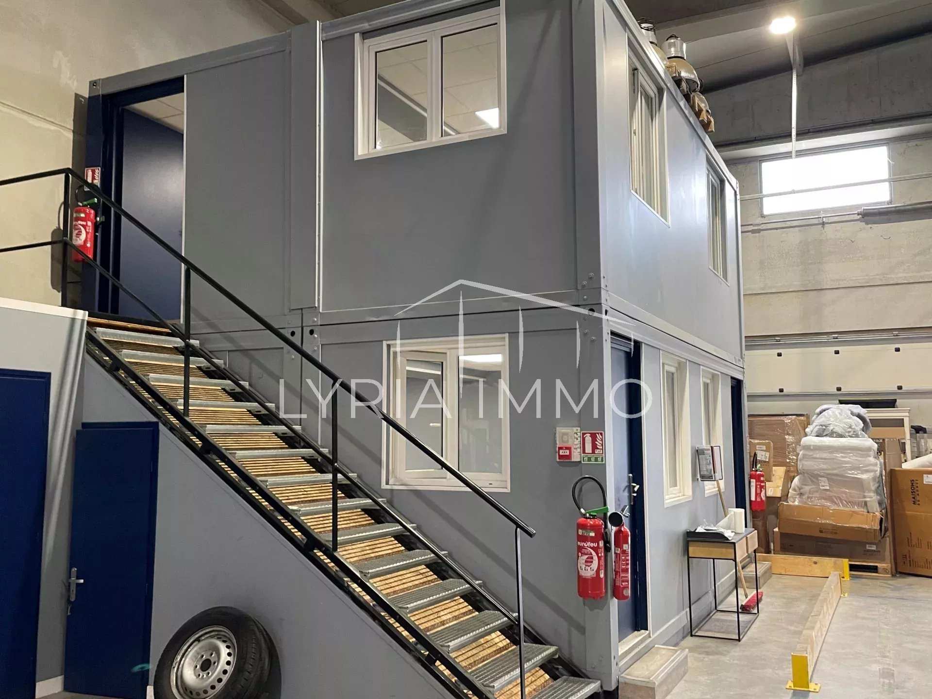 Il possède également une cellule de bureaux, des sanitaires et un local social.