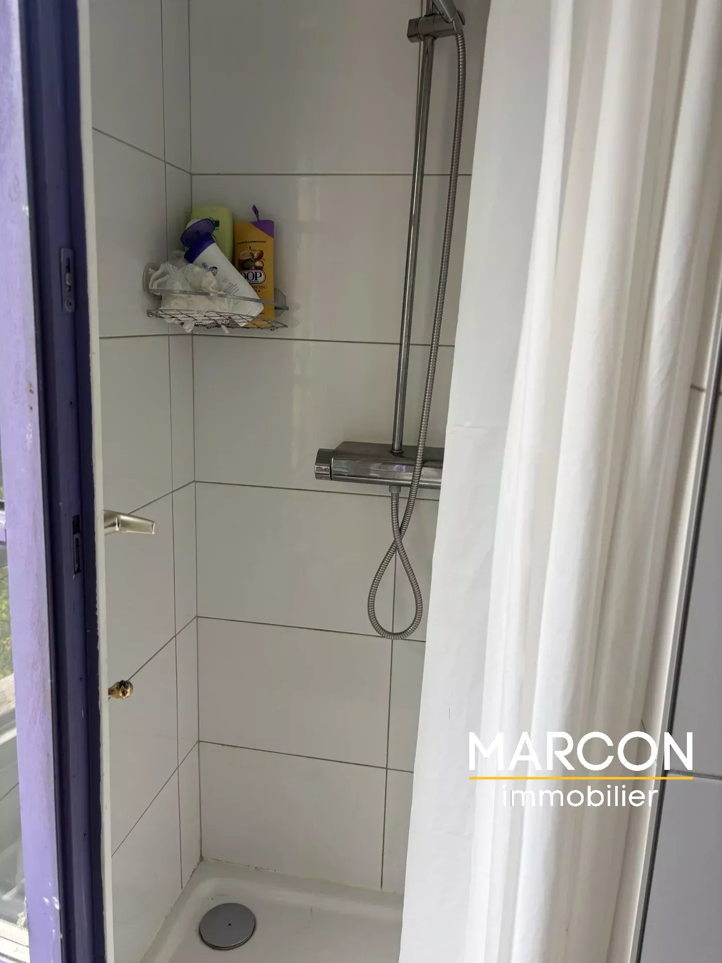Sur le demi-palier, vous trouverez deux chambres et une salle de douche avec toilettes.