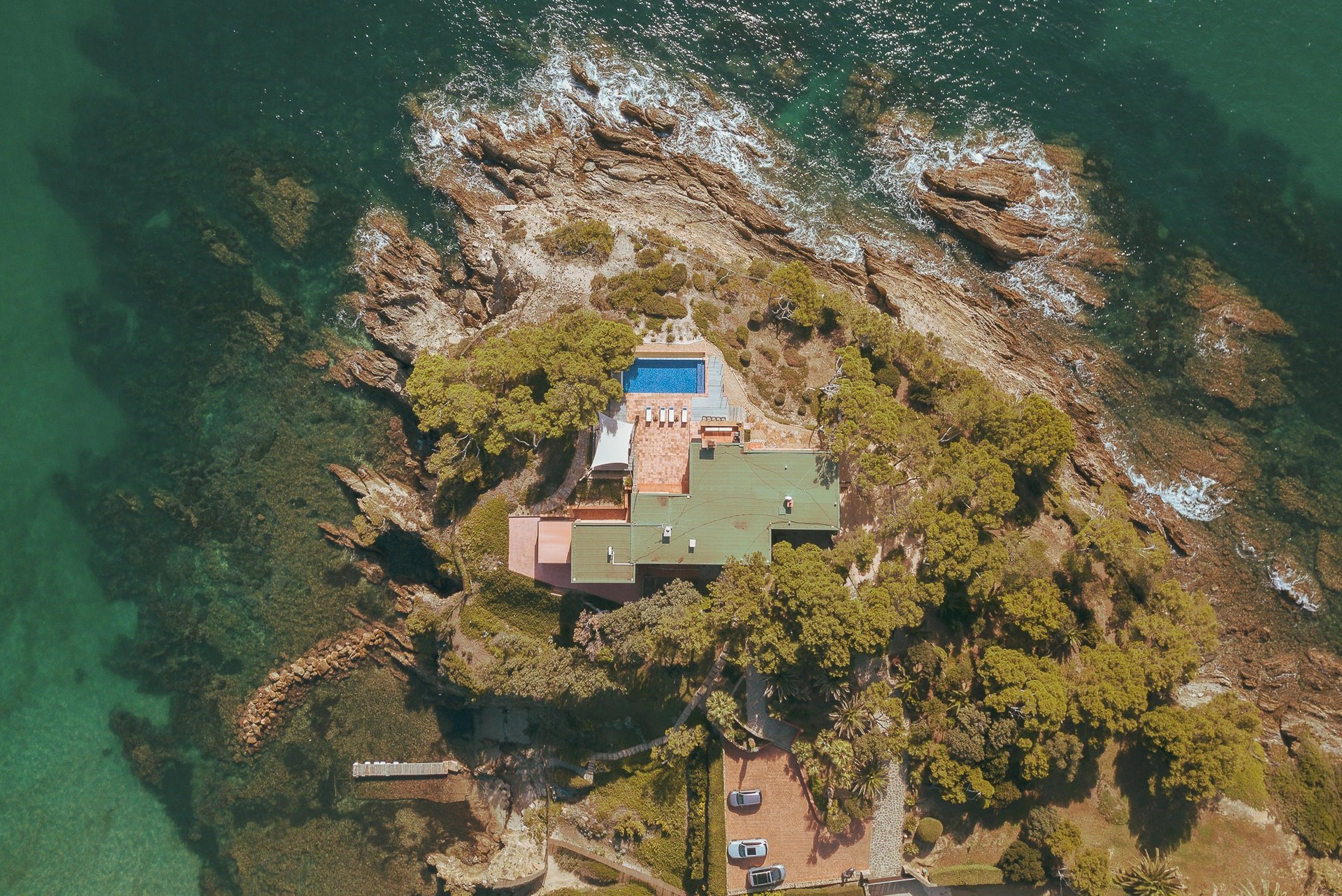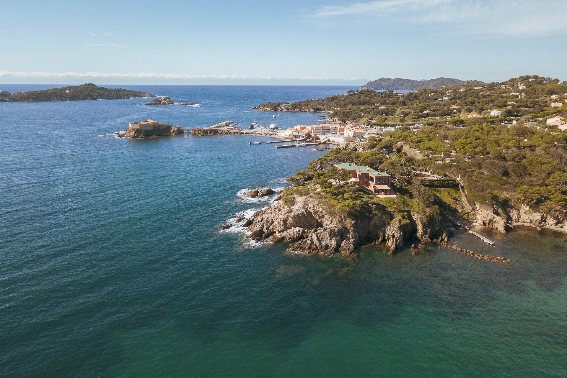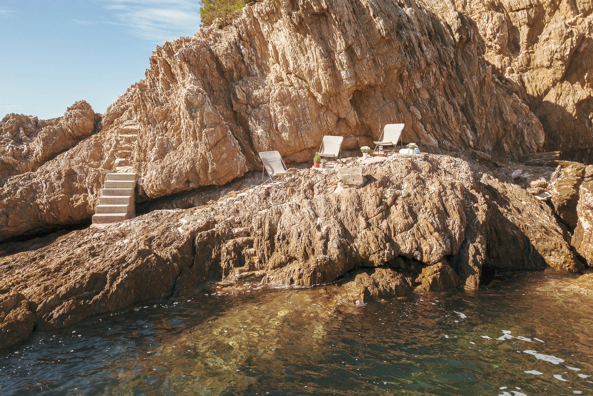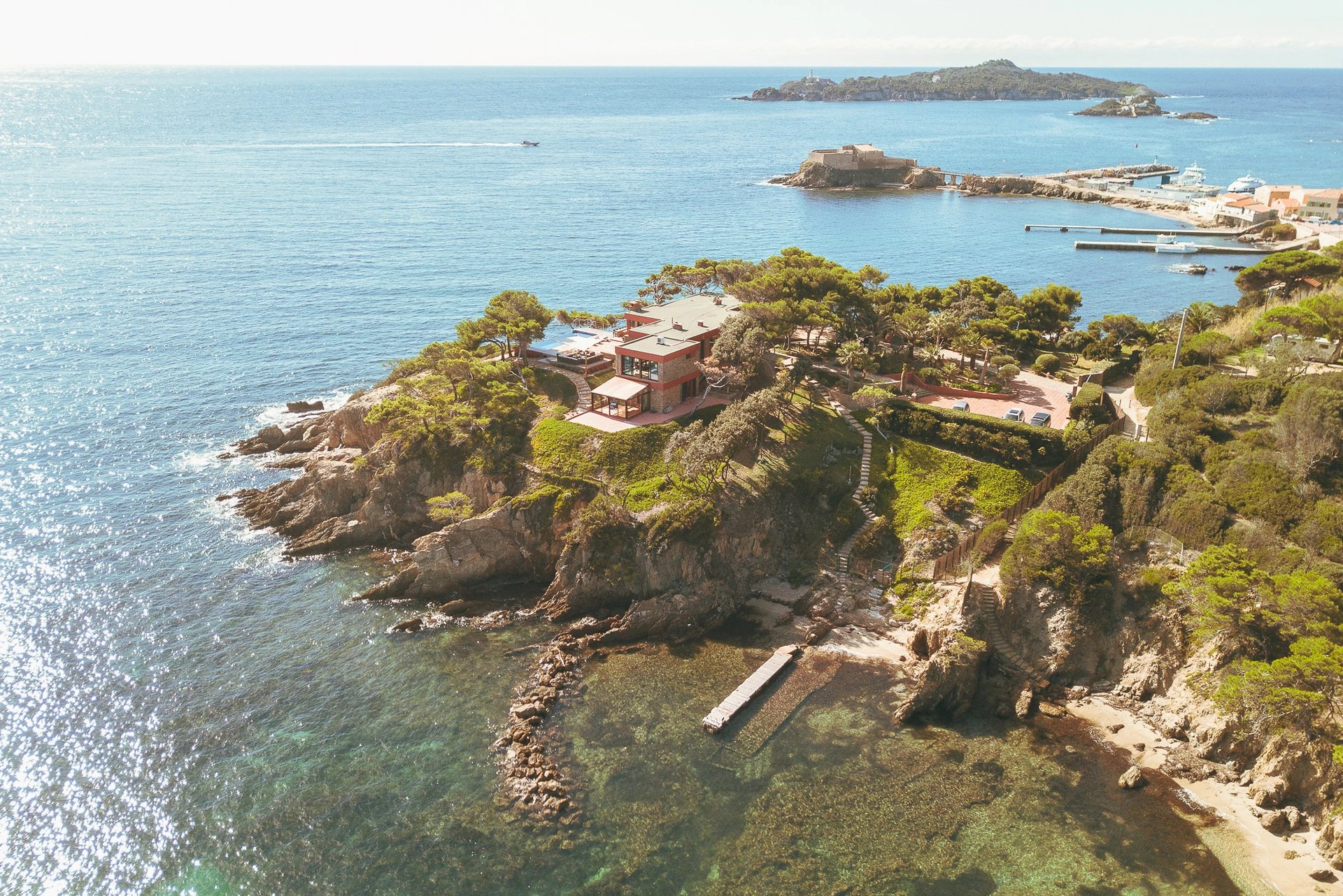 Privilège ultime, la propriété possède deux accès privés à la mer, le premier au Sud donnant sur une crique, idéale pour la méditation et la contemplation et le second à l’Est, donnant sur une petite plage de sable et de son ponton (bénéficiant d'une AOT).