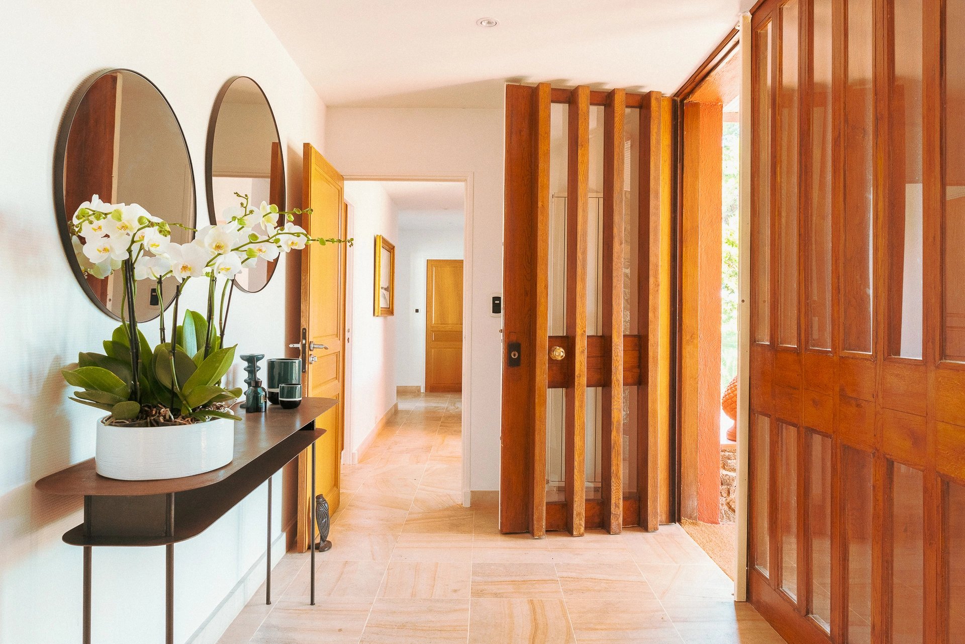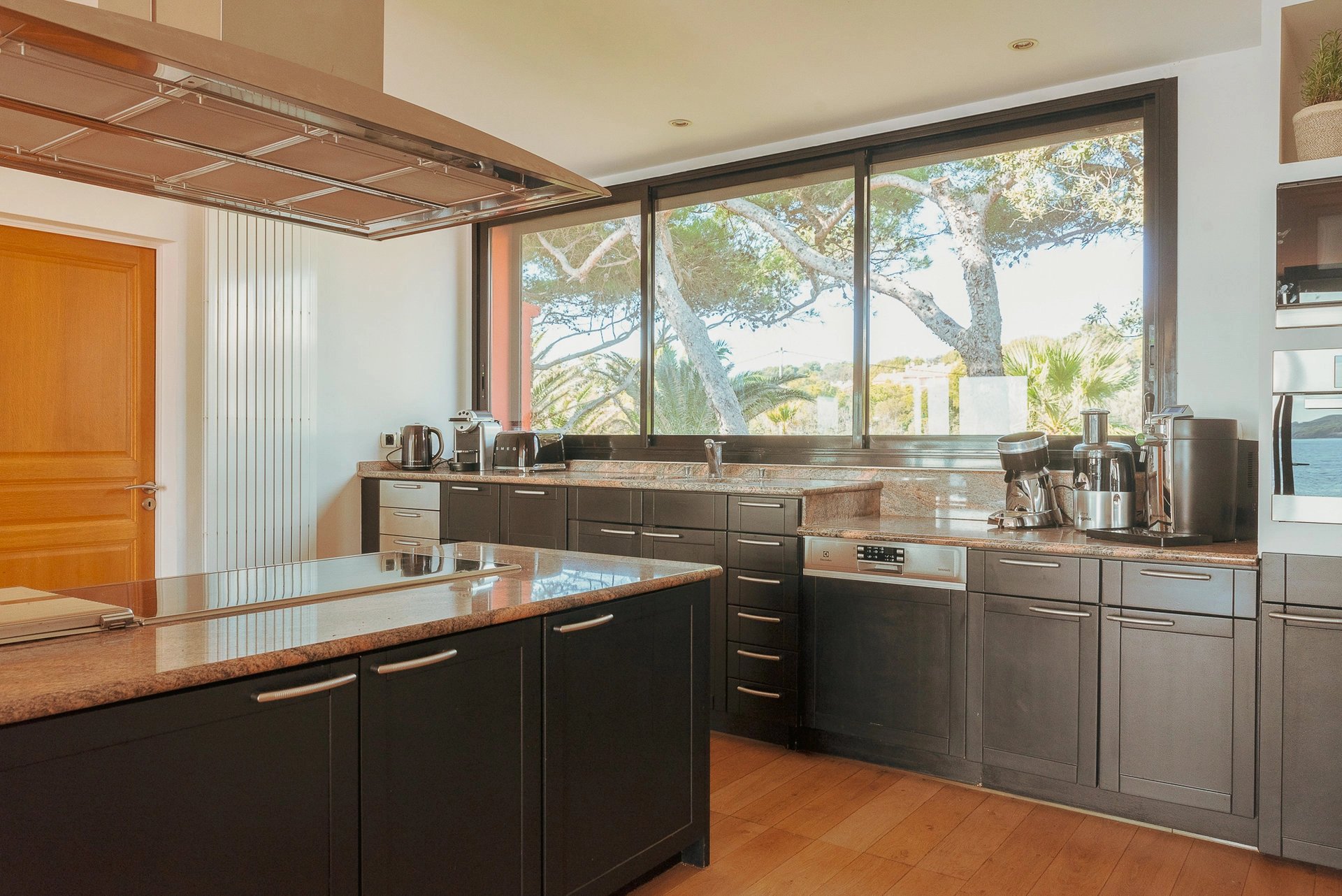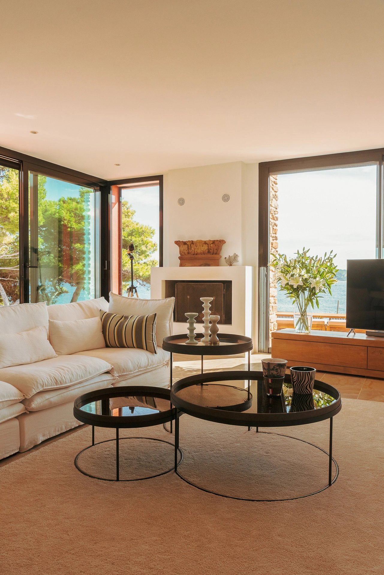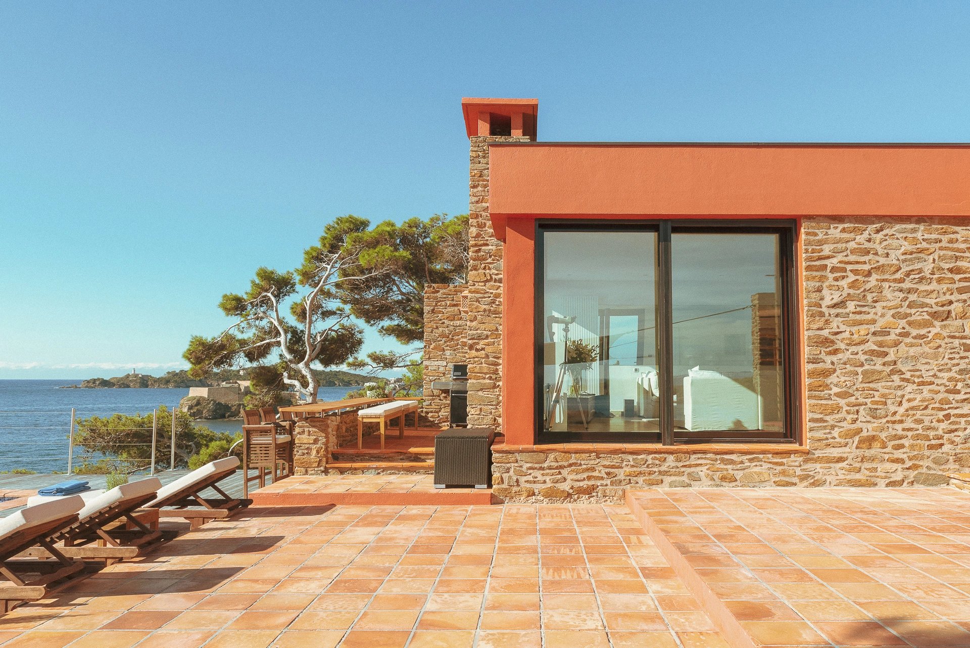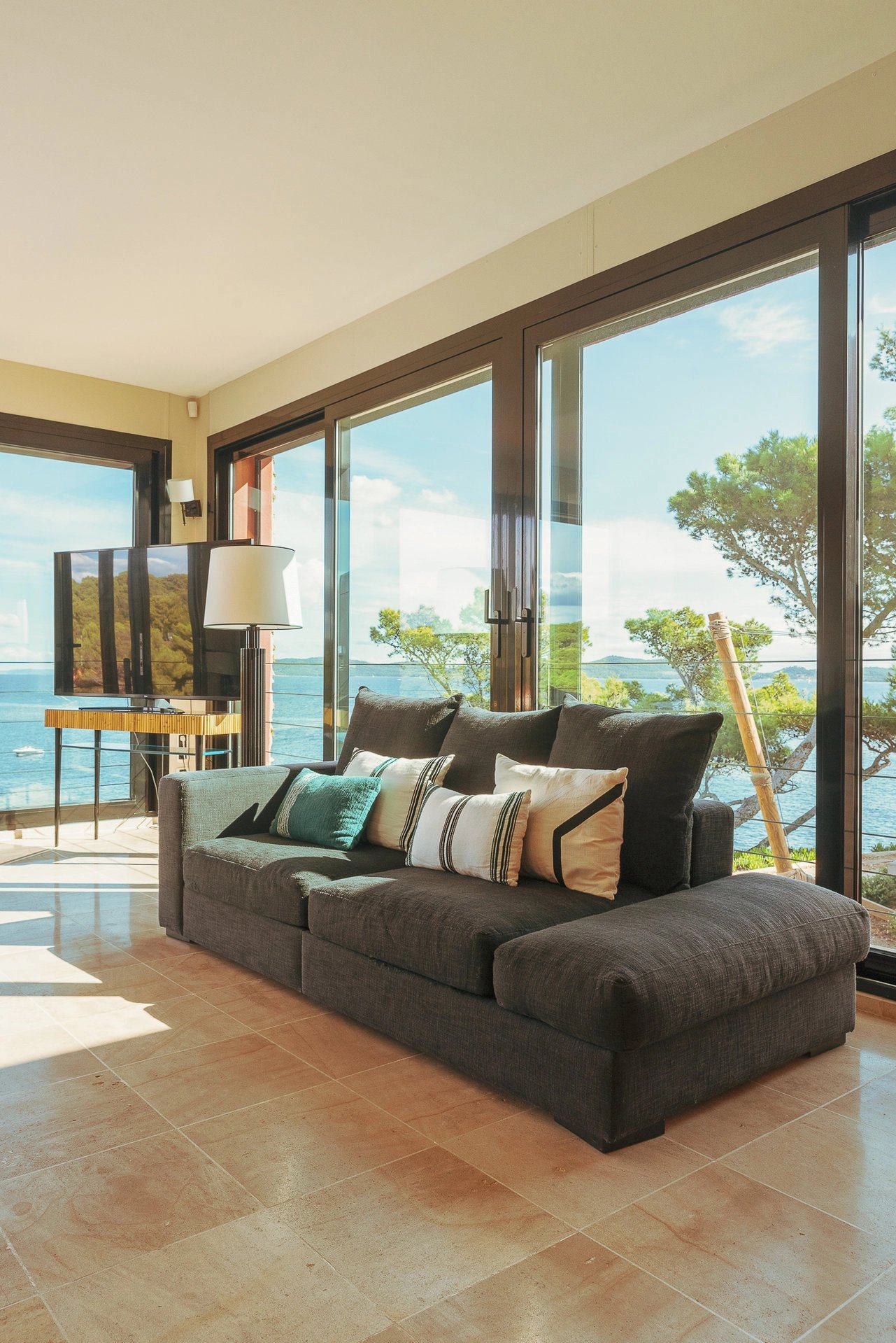 Bordée par la méditerranée, à l’abri du mistral et des regards, la villa Éole bénéficie d’une situation exceptionnelle qui permet de profiter du soleil tout au long de la journée. Les espaces extérieurs et intérieurs sont largement ouverts sur la mer et profitent d’une vue panoramique sur toute la baie et les îles d’Or.