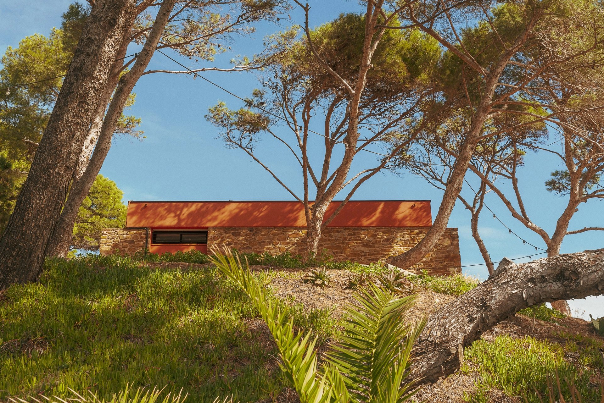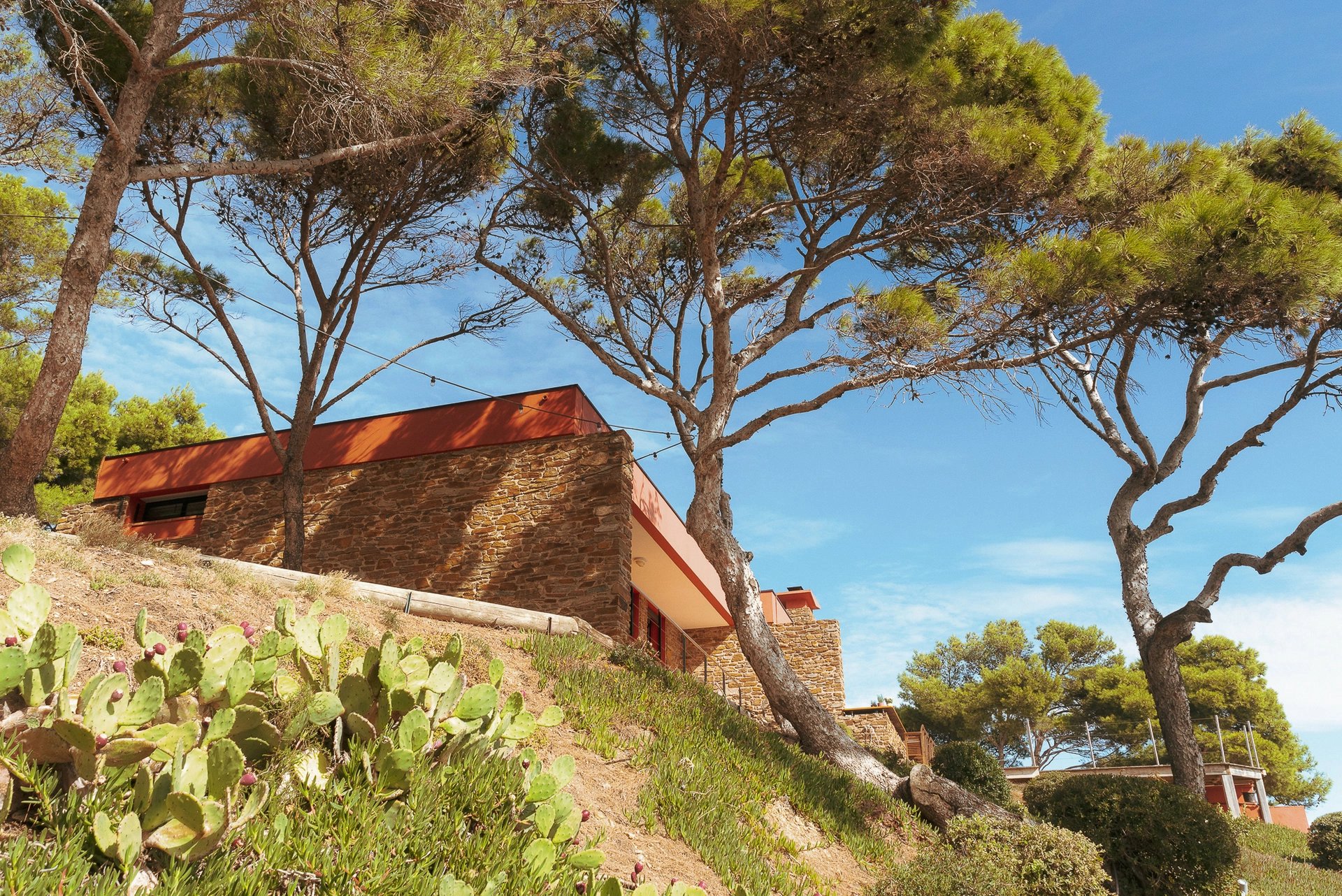 C’est en empruntant un chemin privé que l’on découvre l’unique villa, en promontoire de la sublime presqu’île de Giens, œuvre du célèbre architecte Hyèrois Lucien David.