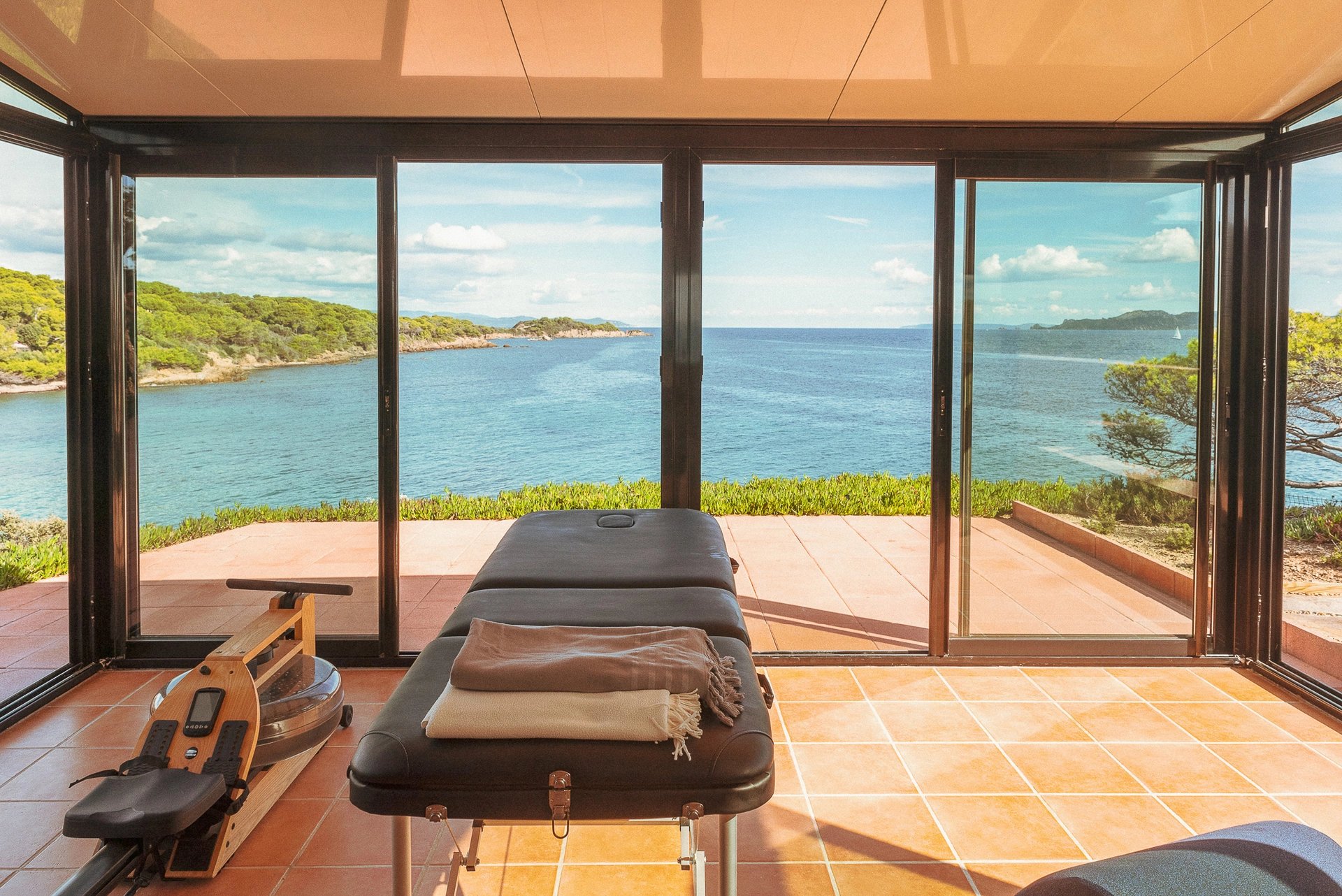 Des activités sportives pour toute la famille sont à disposition sur place : activités nautiques au départ de la plage privée (2 paddles, 1 canoé), une salle de sport avec vue panoramique sur la mer en rez de villa (rameur, vélo elliptique, TRX, tapis de yoga, haltères et table de massages) ainsi qu’un vaste boulodrome éclairé pour les parties de pétanque si chères aux traditions de notre Provence.