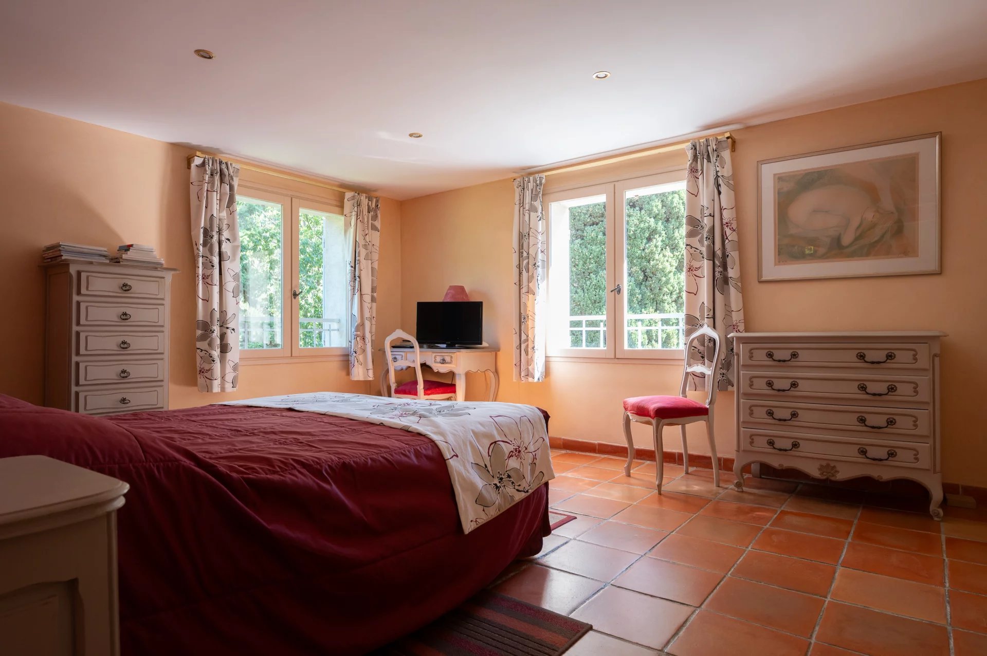 Le tout est déployé sur un somptueux parc paysager de 3 691 m², planté d’essences méditerranéennes et d’arbres centenaires. Une piscine de 16 x 4,50 mètres, accompagnée de son pool house, est idéalement nichée à l’abri des regards pour garantir une intimité totale.