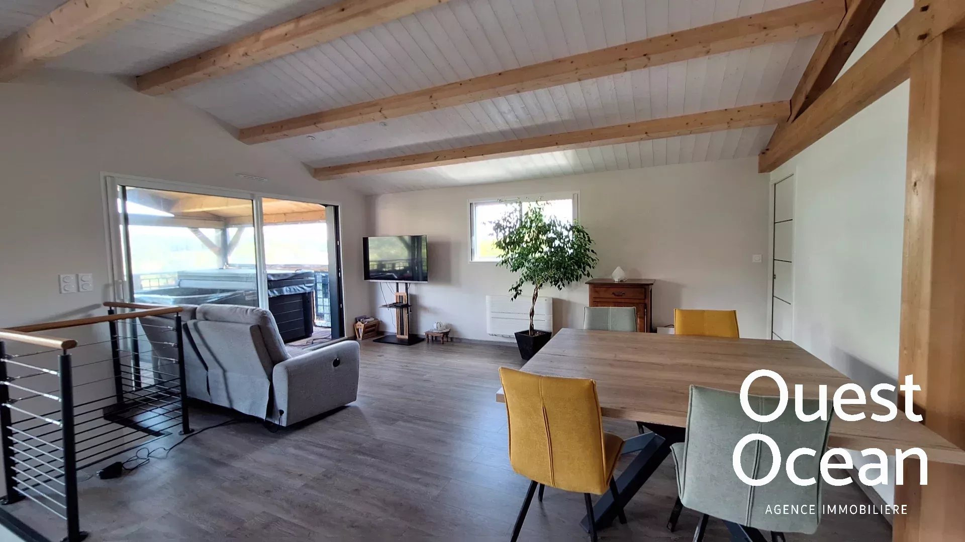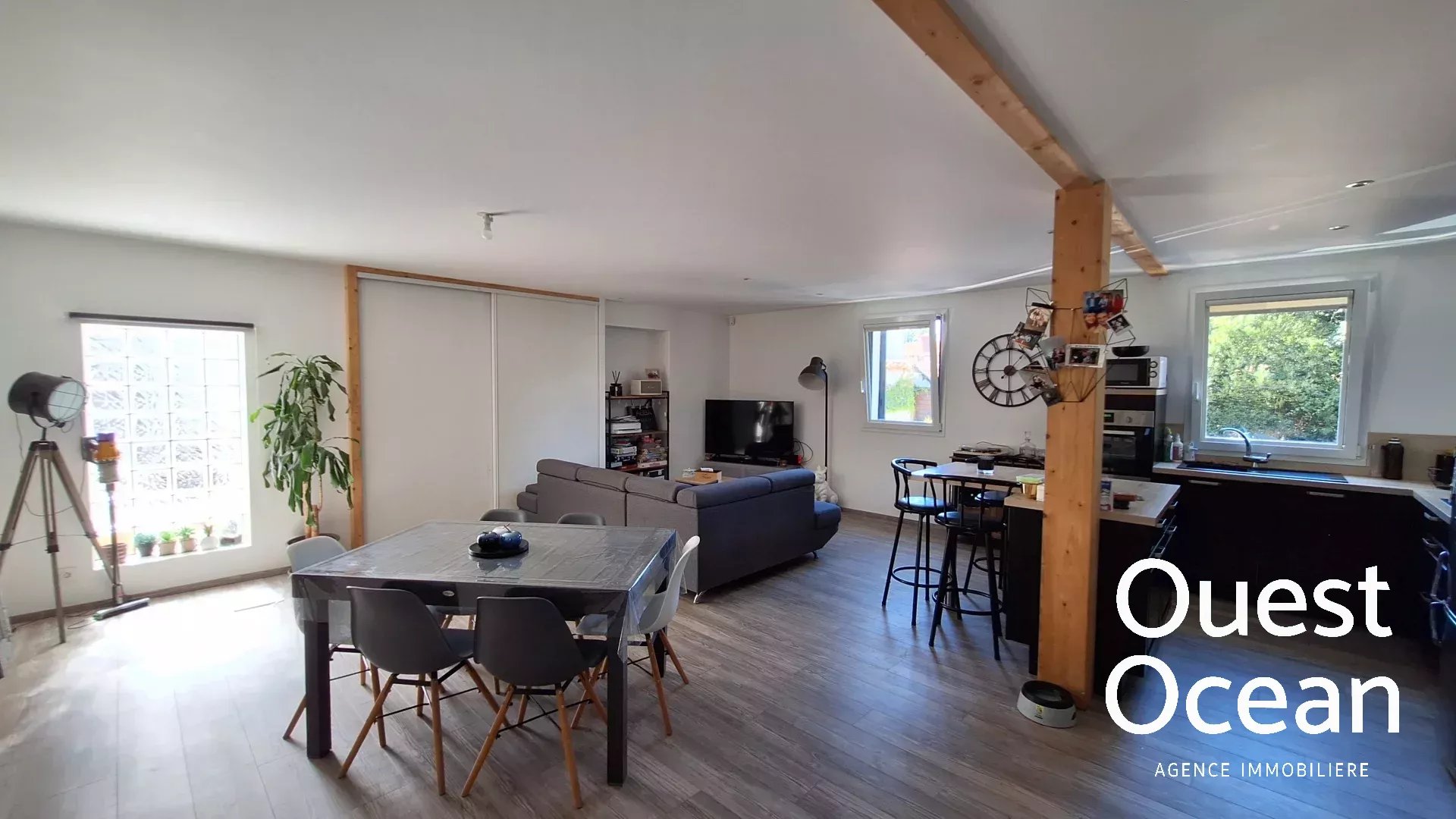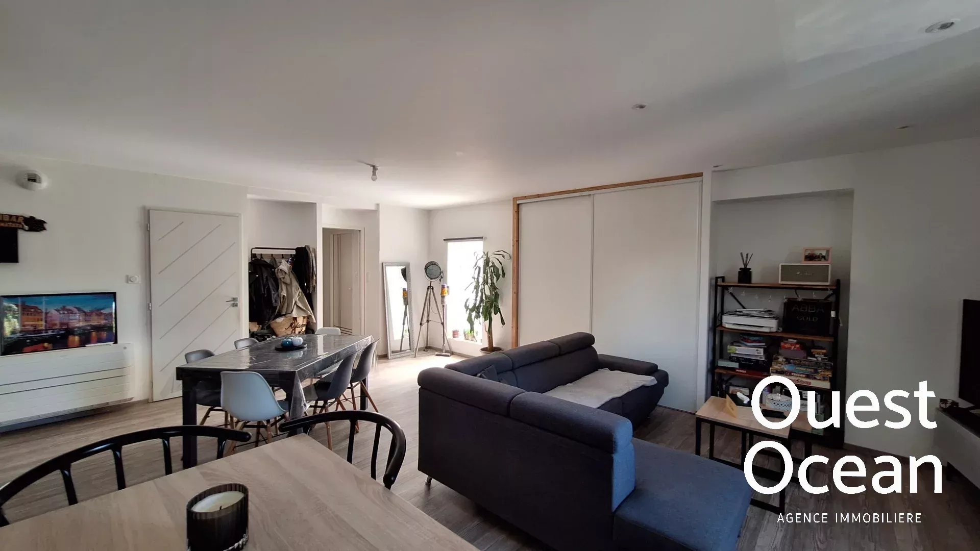 Un appartement indépendant de 77m²,offrant une pièce de vie avec cuisine meublée et équipée, cellier ,salle de douche, deux chambres ,terrasse.