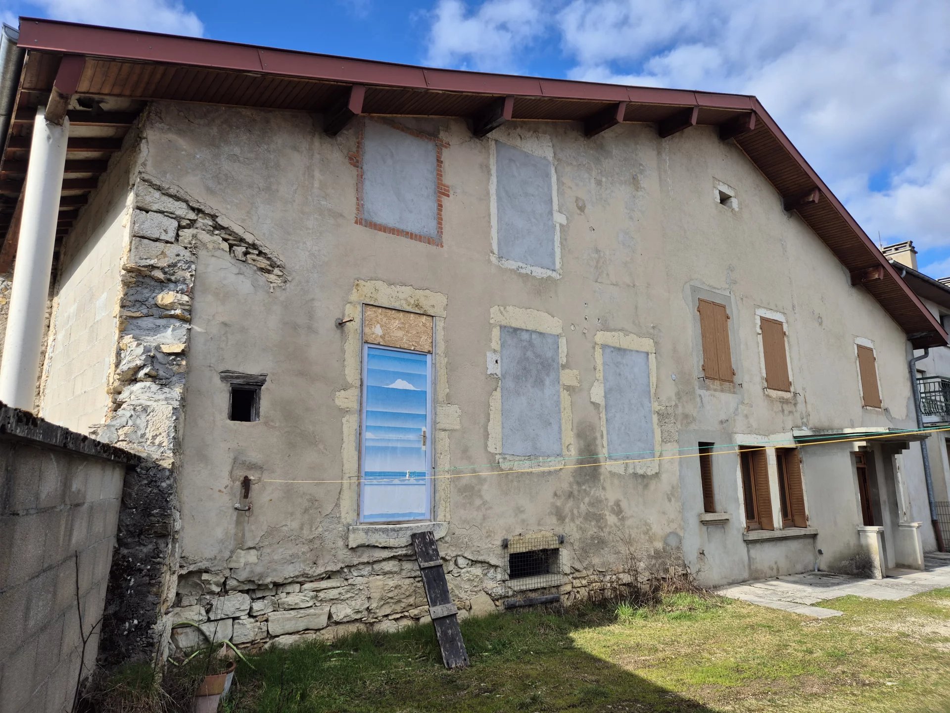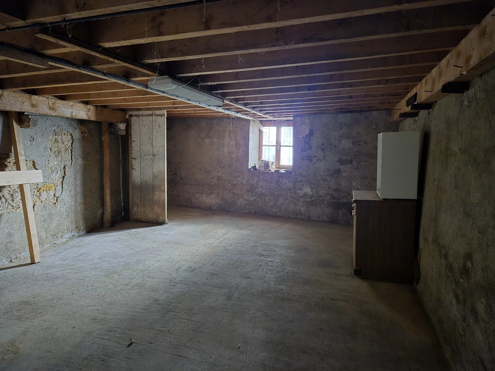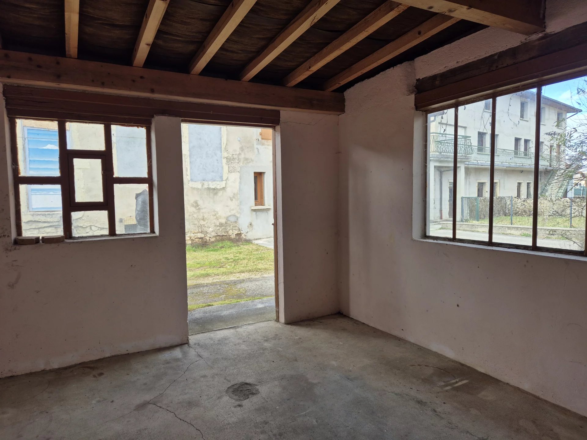 Sur un terrain en partie clos d'environ 1200 m², cette maison en pierres se compose d'une partie habitable (environ 128 m²) avec hall, cuisine, salle d'eau avec wc, salon-séjour, une pièce borgne et deux chambres à l'étage + une cave enterrée et une grande partie à usage de dépendances avec deux garages, une buanderie et un espace à l'étage pouvant être aménagé ainsi qu'un petit abri pouvant loger une voiture dont une partie fermée permet de ranger le matériel de jardin ou des motos. Chauffage central fuel