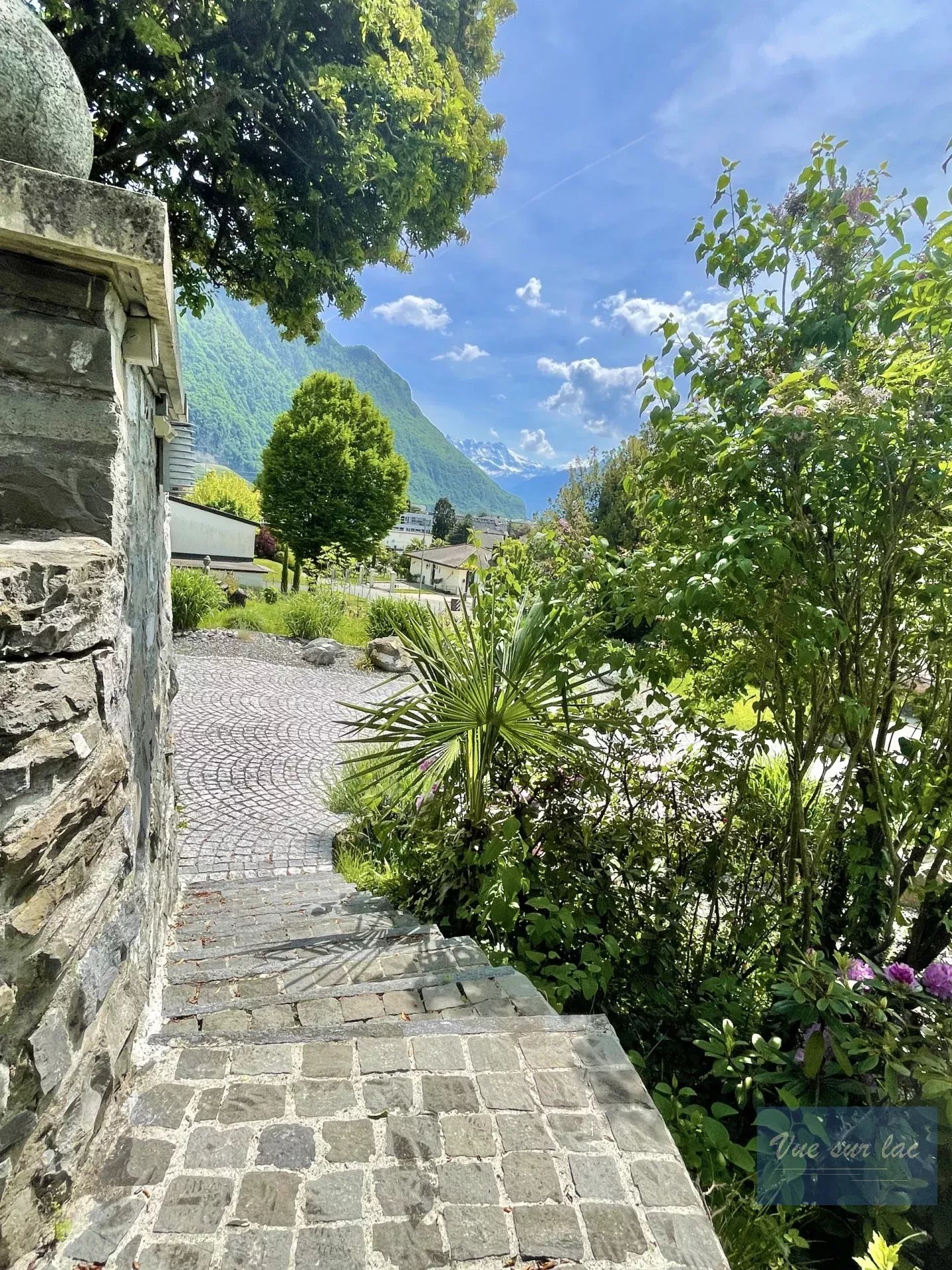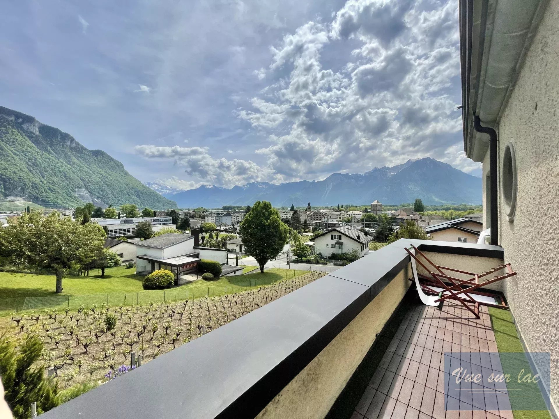 Avec son orientation Sud-Ouest, elle bénéficie d'une magnifique vue sur le lac, les Alpes et le début de la plaine du Rhône.