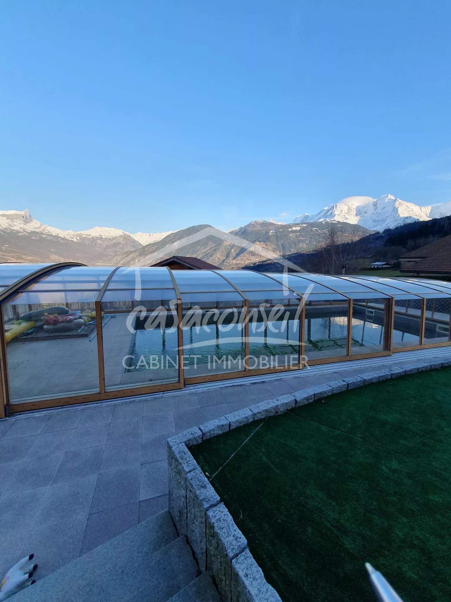 Una bellissima colonica parzialmente ristrutturata. Difronte al Monte Bianco, quasta proprietà ha un fascino indelebile per gli appassionati di autenticità montana. Il piano terra (155m²) si compone di 4 camere da letto, cucina, soggiorno con camino,servizi, cantina, locale tecnico. La parte superiore accoglie l'antico fienile da ristrutturare (180m²). A l'entrata del giardino si trova un piccolo chalet per eventuali affitti stagionali. Una bella piscina difronte al Bianco completa la proprietà.