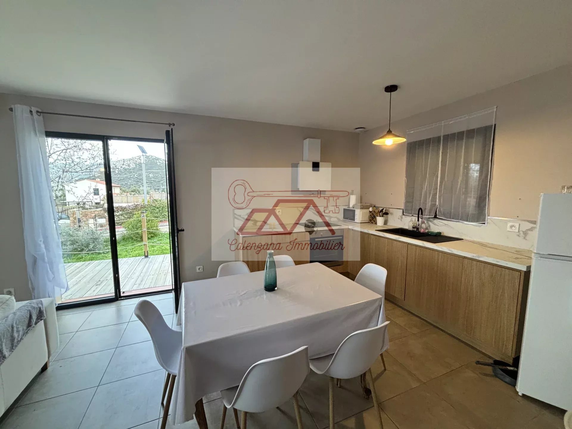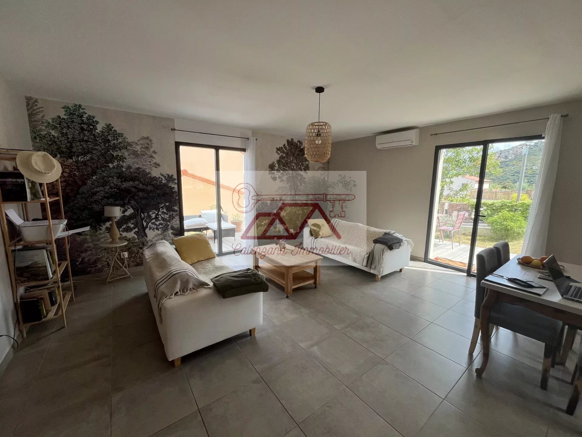 Située à quinze minutes des plages de Calvi, à trente minutes du bassin de l'Ile Rousse, agréable maison campagnarde de plain pied, avec son séjour spacieux et lumineux avec en prévision, si besoin, son conduit de cheminée. Son coin cuisine est aménagé et ouvert sur le salon.