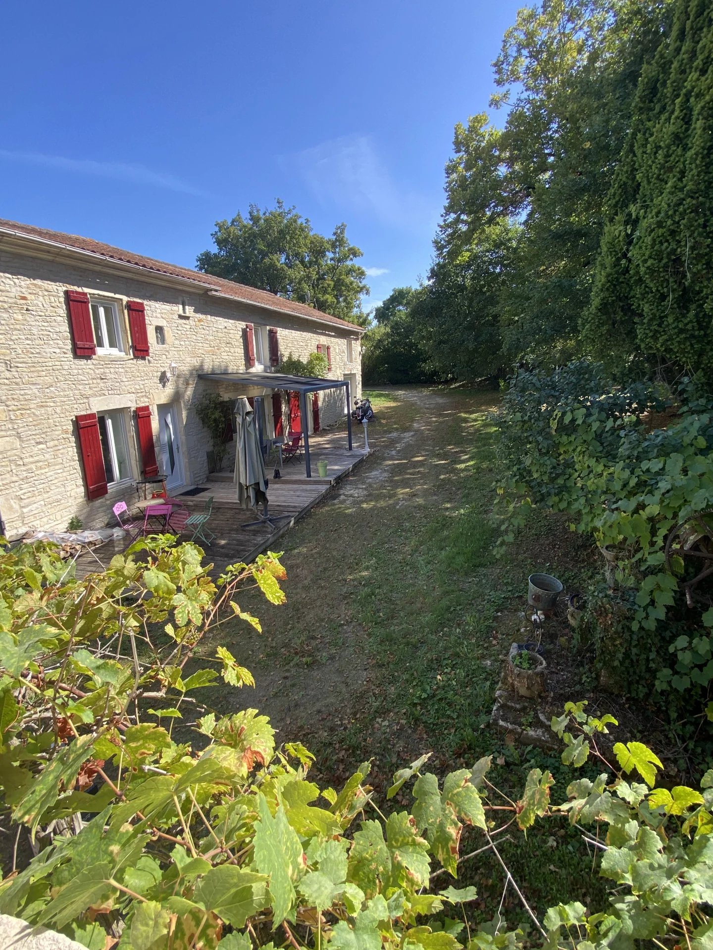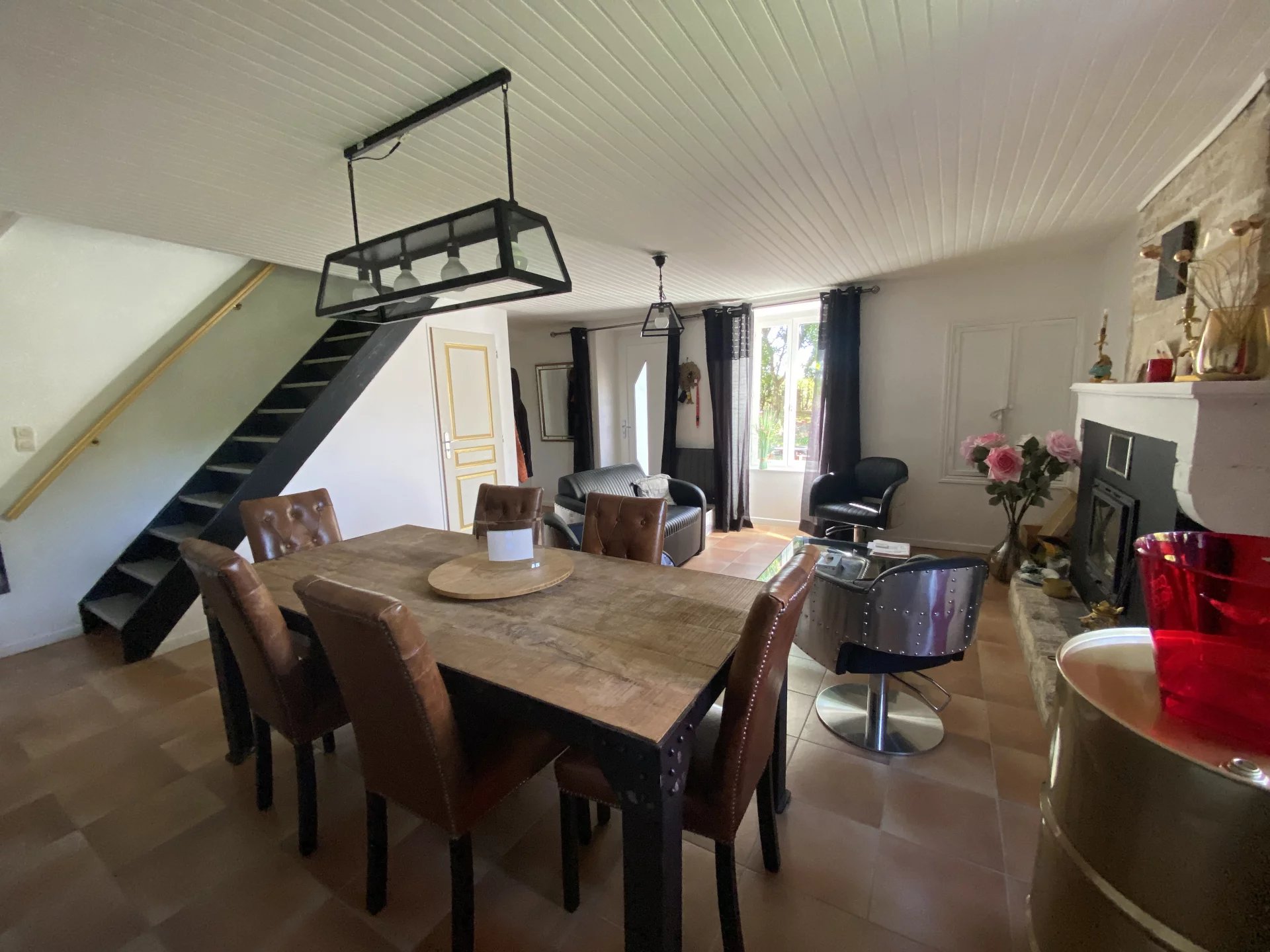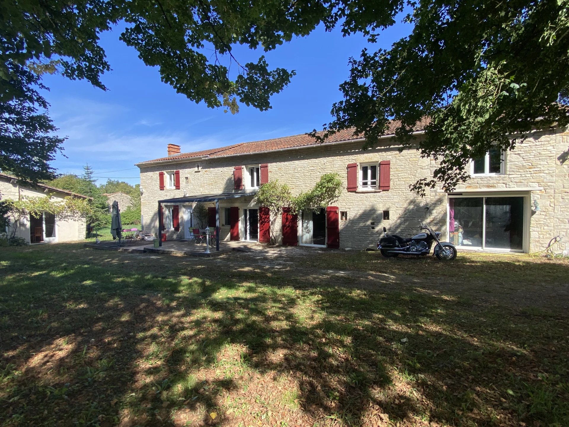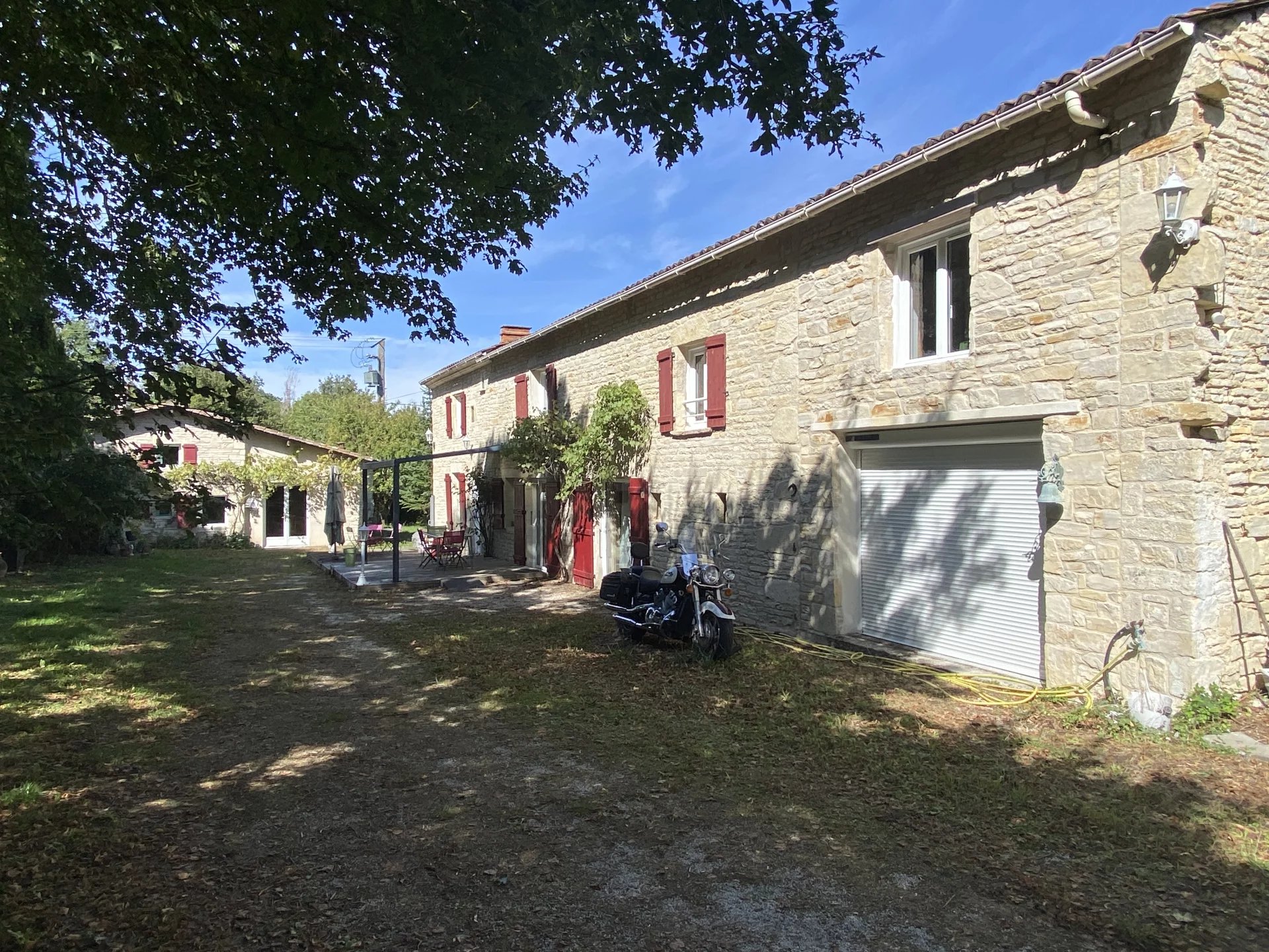 Charente. A seulement 15 minutes de Ruffec et 45 minutes d'Angoulême, maison ancienne datant de 1846 totalement restaurée avec goût et matériaux de qualité offrant sur deux niveaux et 190 m²: au rez-de-chaussée, un salon-salle à manger avec insert donnant sur une terrasse, une cuisine indépendante et équipée, une lingerie, une salle d'eau-wc, un salon avec bar, une salle de jeux ou bureau; à l'étage, un palier desservant une chambre, un dressing, un couloir desservant une grande salle de bains avec wc, une chambre parentale, deux chambres. Cette demeure à la décoration raffinée dispose également d'un appartement indépendant de 60 m² totalement restauré avec au rez-de-chaussée, un séjour-cuisine, un salon, une salle d'eau avec wc, une chambre et à l'étage une seconde chambre. Jardin clos et arboré de 3500 m² avec un puits. Environnement calme et proche de toutes les commodités. A 1h30 de Paris en TGV.