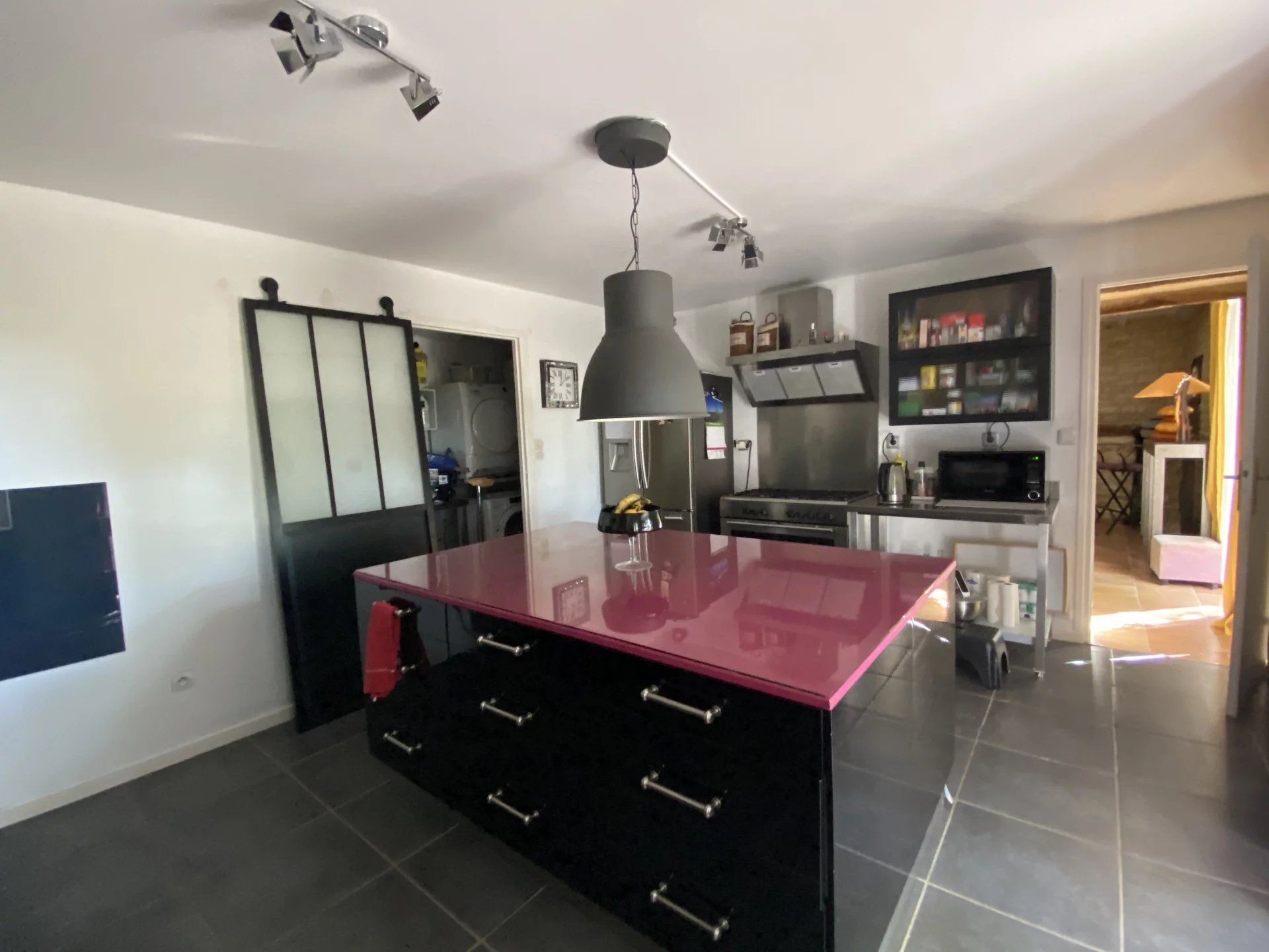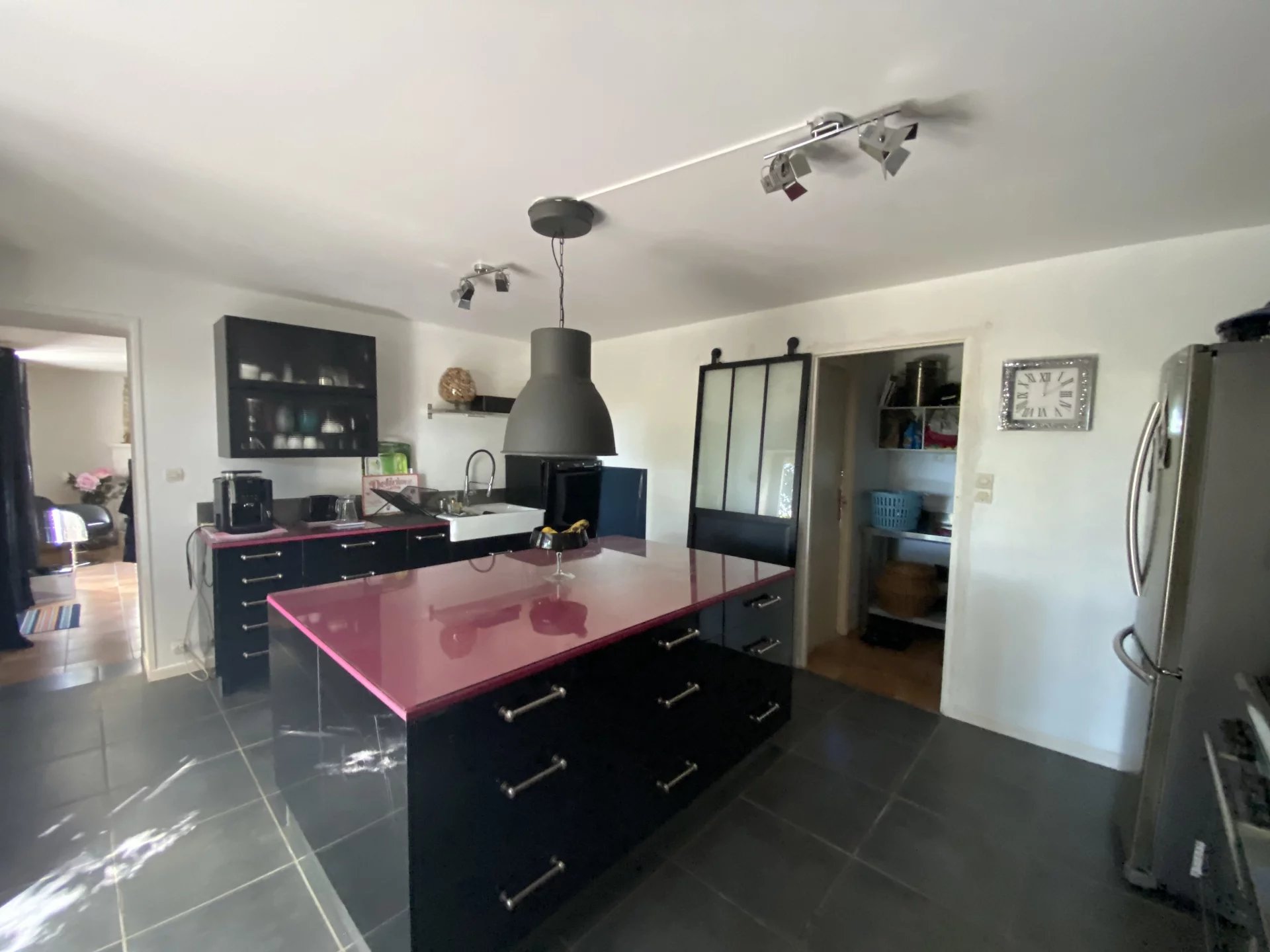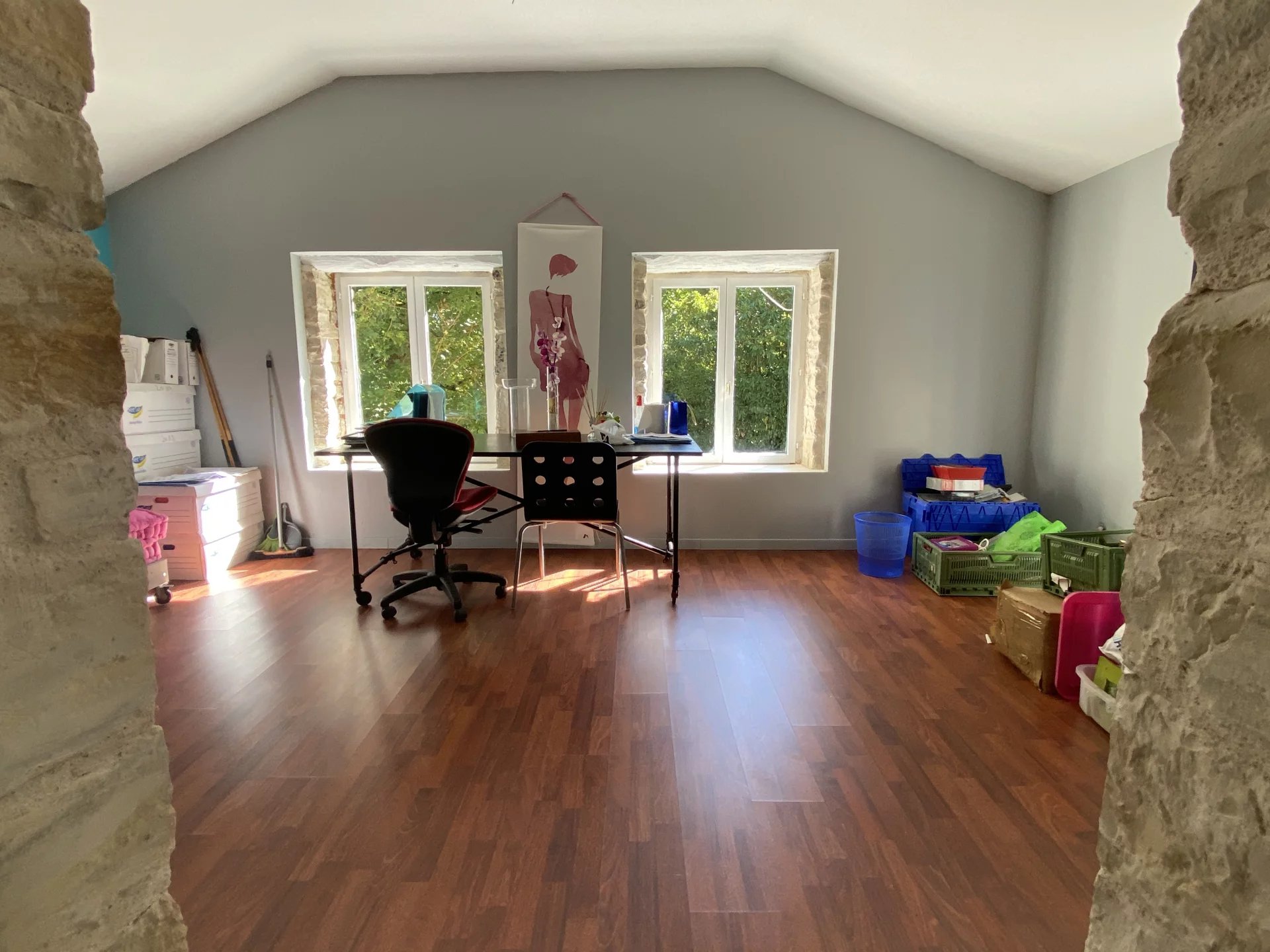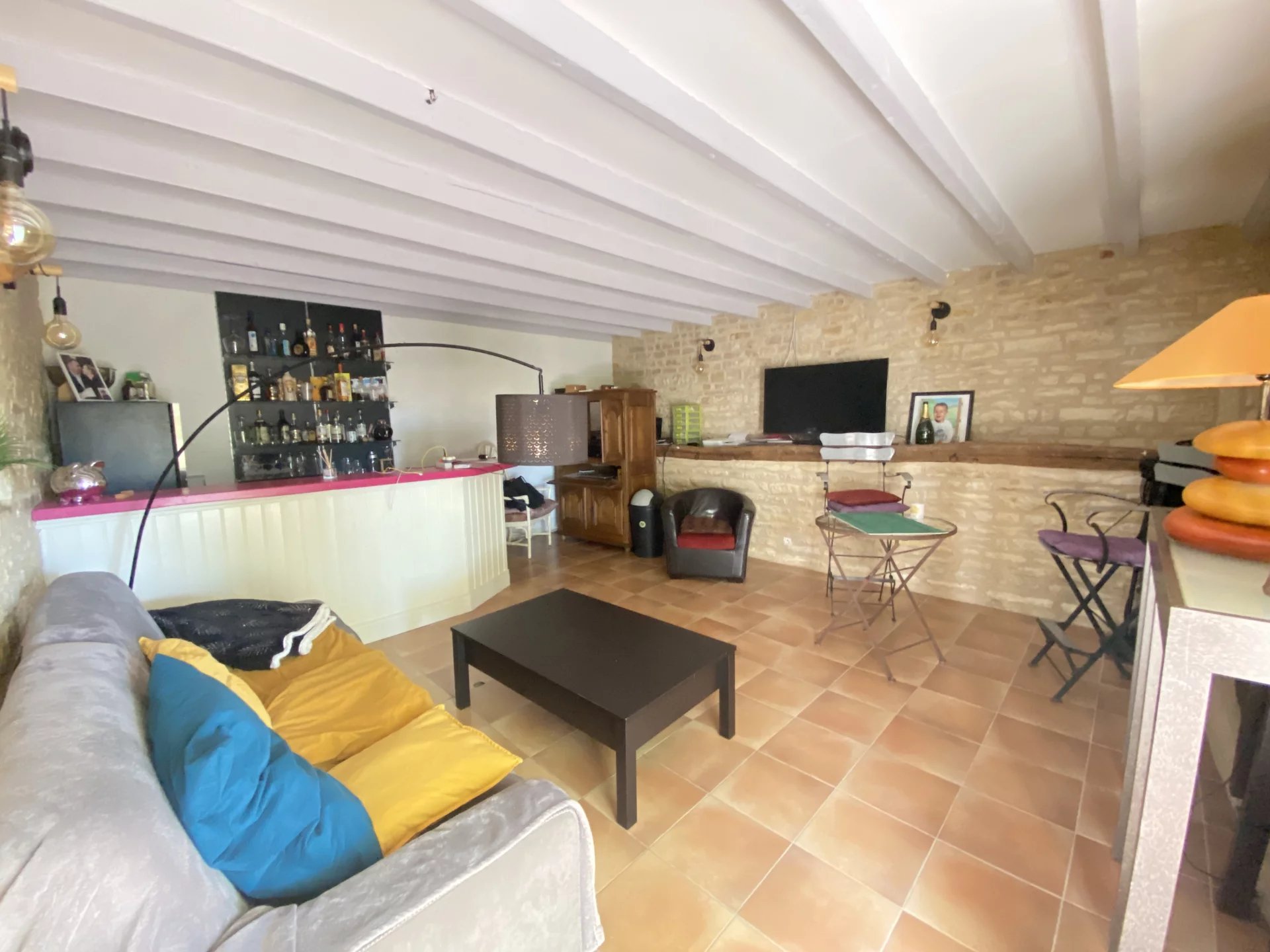 Charente. A seulement 15 minutes de Ruffec et 45 minutes d'Angoulême, maison ancienne datant de 1846 totalement restaurée avec goût et matériaux de qualité offrant sur deux niveaux et 190 m²: au rez-de-chaussée, un salon-salle à manger avec insert donnant sur une terrasse, une cuisine indépendante et équipée, une lingerie, une salle d'eau-wc, un salon avec bar, une salle de jeux ou bureau; à l'étage, un palier desservant une chambre, un dressing, un couloir desservant une grande salle de bains avec wc, une chambre parentale, deux chambres. Cette demeure à la décoration raffinée dispose également d'un appartement indépendant de 60 m² totalement restauré avec au rez-de-chaussée, un séjour-cuisine, un salon, une salle d'eau avec wc, une chambre et à l'étage une seconde chambre. Jardin clos et arboré de 3500 m² avec un puits. Environnement calme et proche de toutes les commodités. A 1h30 de Paris en TGV.