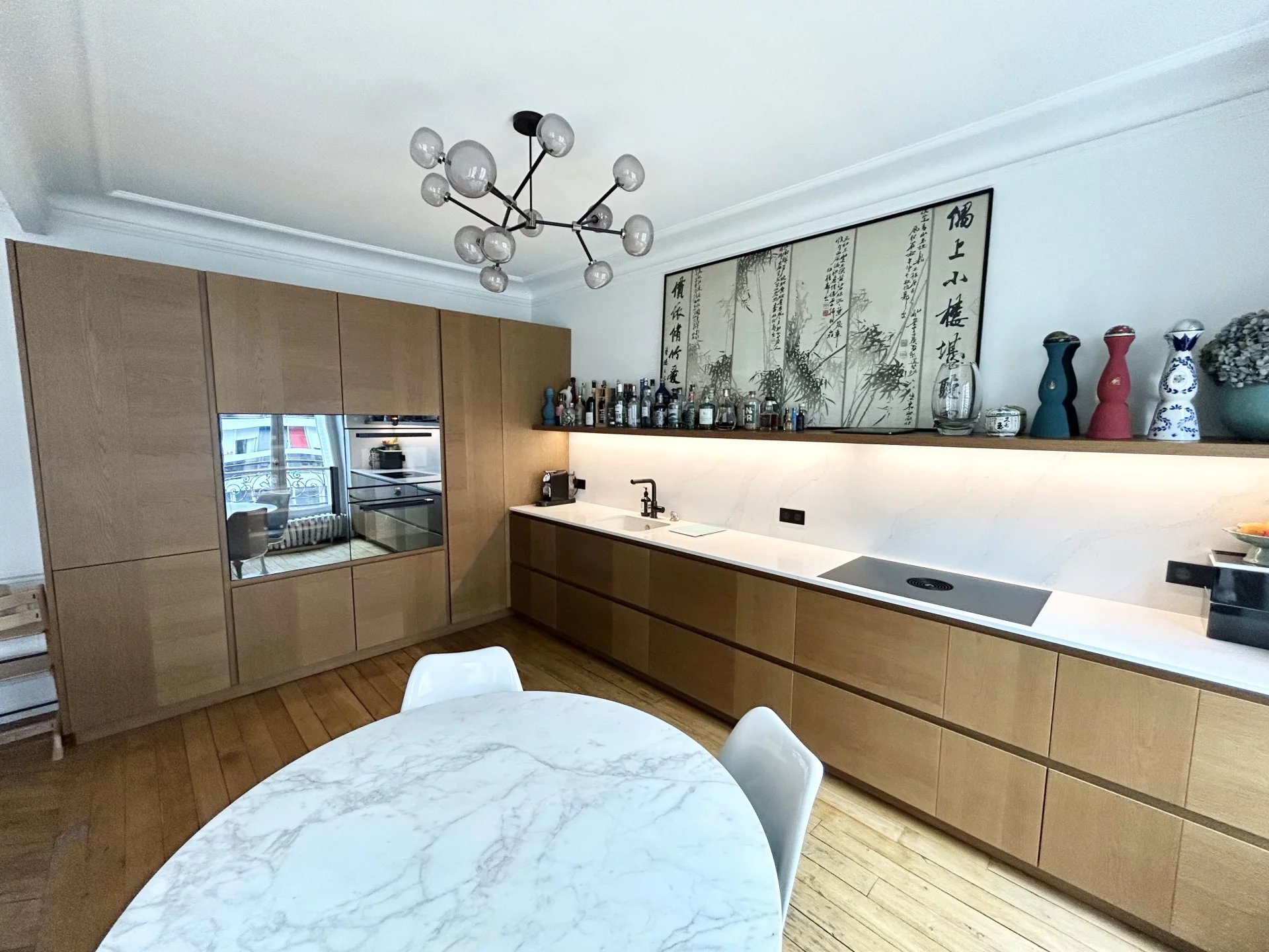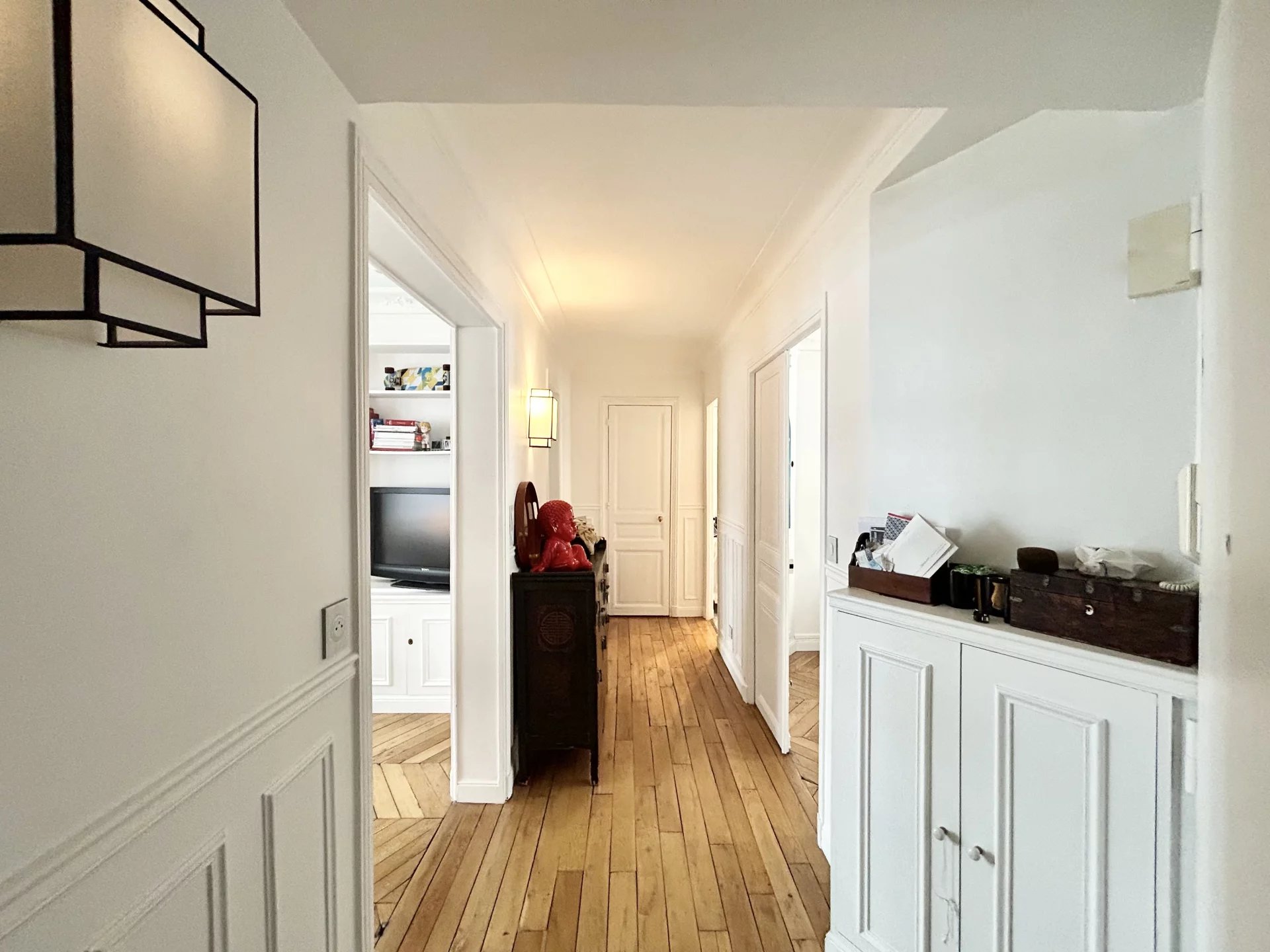 Appartement haussmannien - 4ème étage - 83 m² Situé au 4ème étage par ascenseur d'un immeuble haussmannien, en plein cœur du 16ème arrondissement, à proximité directe de la Tour Eiffel et du Trocadéro. Sectorisation rare et très demandée. L'appartement de 5 pièces est composé d'un vaste double séjour de plus de 30m². Le bien dispose également d'une galerie d'entrée, de 3 chambres, un dressing, une cuisine ouverte, ainsi que d'une salle d'eau. En excellent état, l'appartement possède tout le charme de l'ancien (parquets, moulures, cheminée). Le bien est traversant, avec une exposition est/ouest. Calme et lumineux, il est à proximité immédiate des commerces et des transports. La copropriété est saine, avec des parties communes biens entretenues et de bon standing. Gardien présent dans l'immeuble. Une cave complète ce bien. Copropriété : Aucune procédure en cours.