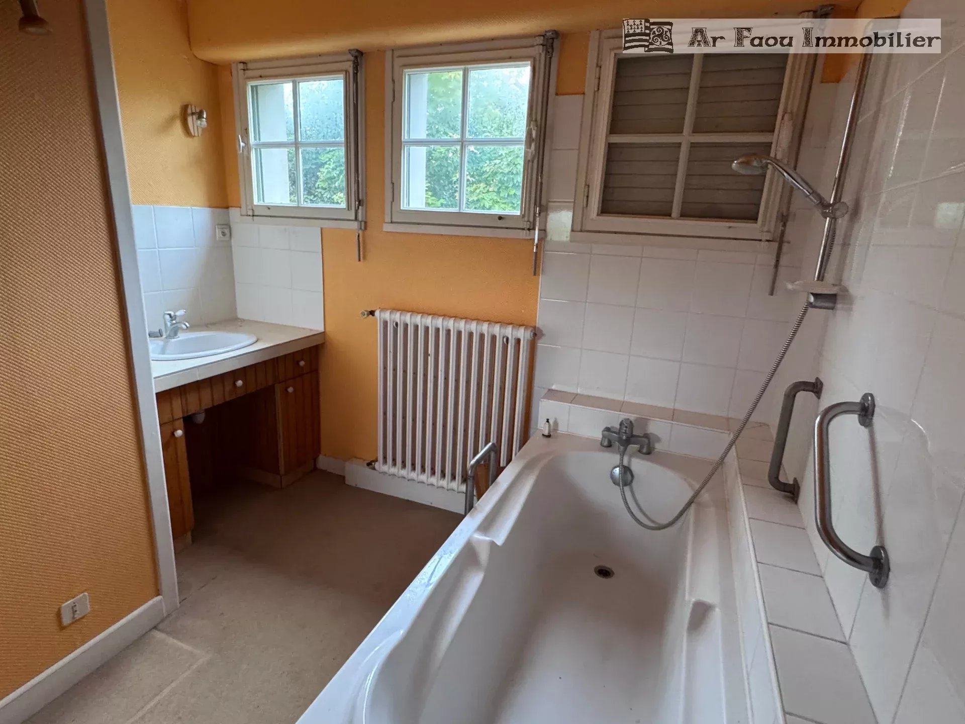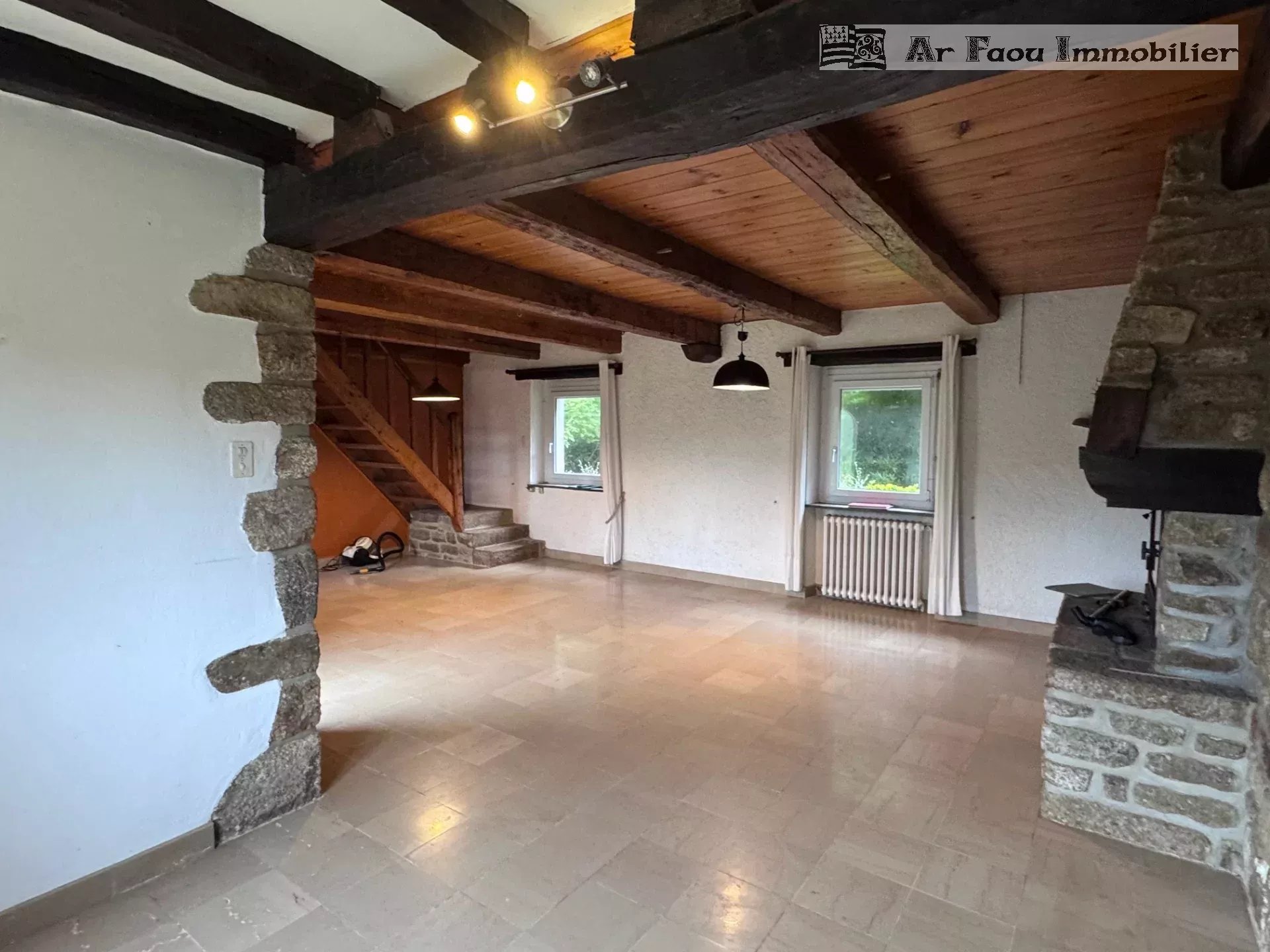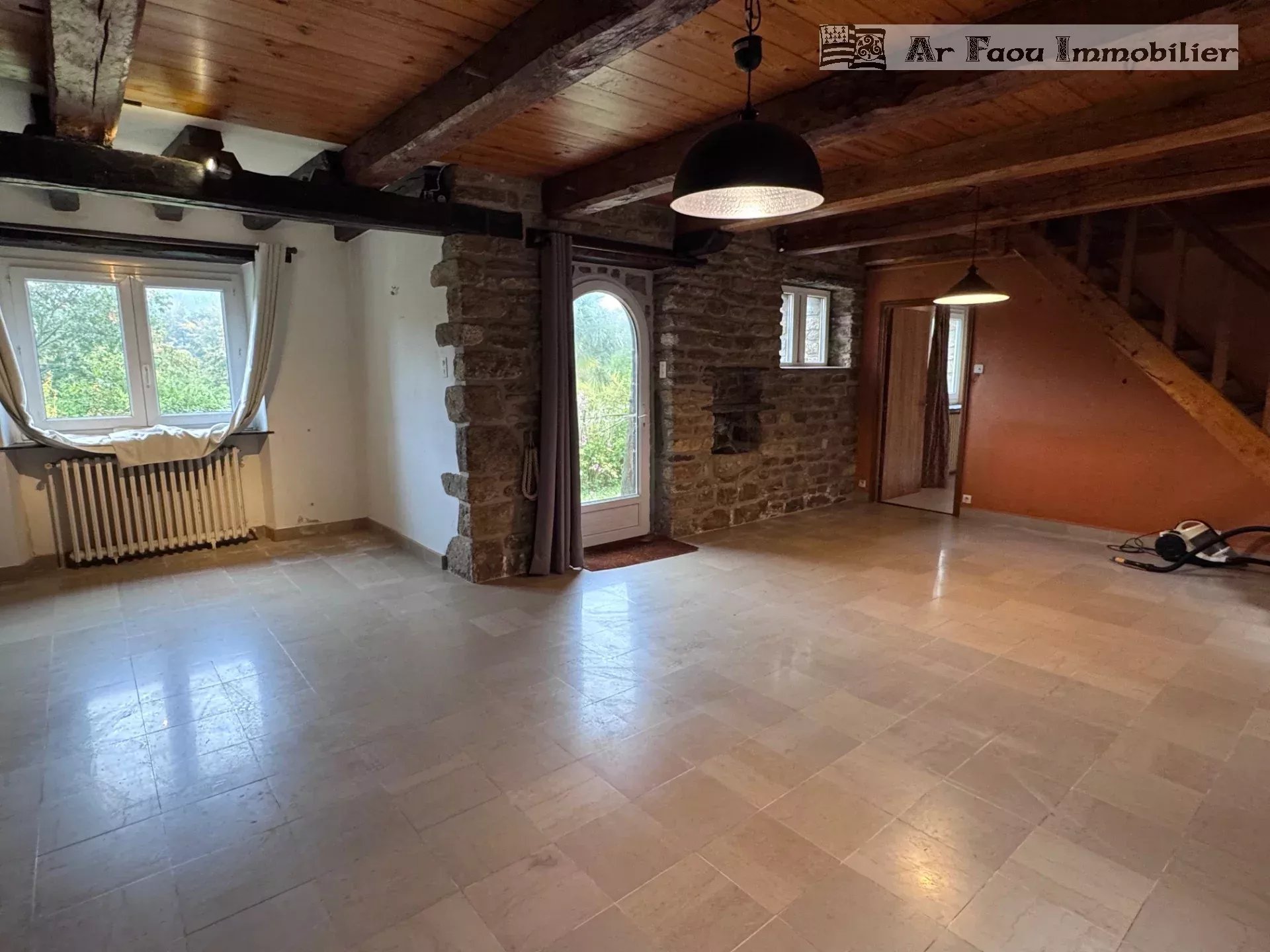 Sizun proche commodités, et dans un environnement privilégié, découvrez cette superbe maison en pierre de taille des années 70, une construction de qualité au charme intemporel. Restée endormie avec le temps, elle n’attend que d’être réveillée pour retrouver son éclat d’autrefois. Édifiée sur un sous-sol complet, cette belle demeure offre au rez-de-chaussée une spacieuse pièce de vie lumineuse ornée d’une cheminée majestueuse, une cuisine indépendante, ainsi qu’une chambre avec sa salle d’eau attenante, idéale pour une vie de plain-pied.