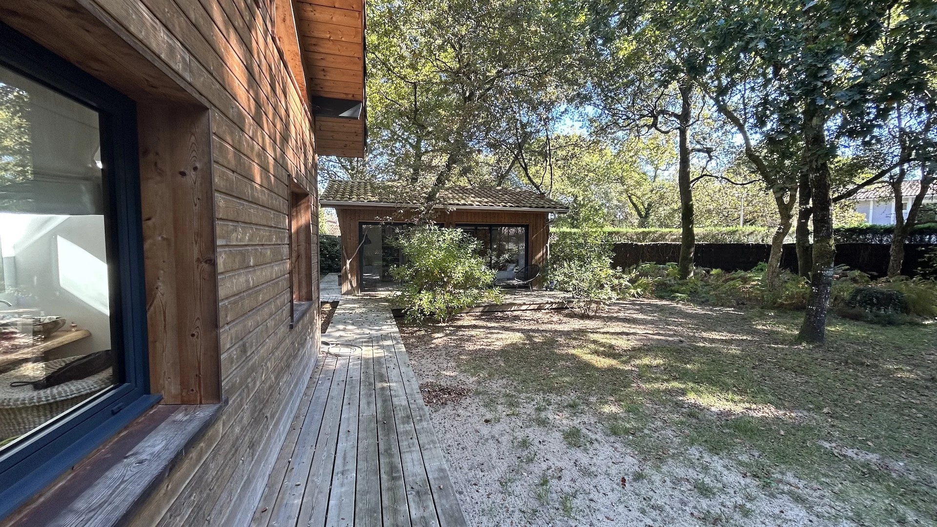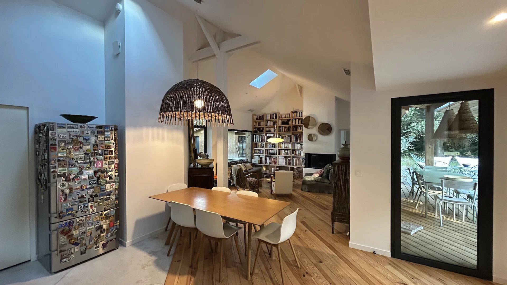 Située dans un des quartiers les plus calmes de Capbreton, sur un terrain de 1837 m2, cette villa à ossature bois a été rénovée et agrandie en 2022 grâce au talent de l'Architecte Serge Hiquet, qui a réussi à réunir 5 chambres (dont une suite parentale complète), 3 salles d'eau, 3 wc et un séjour cathédrale avec cuisine américaine dans 150 m2.