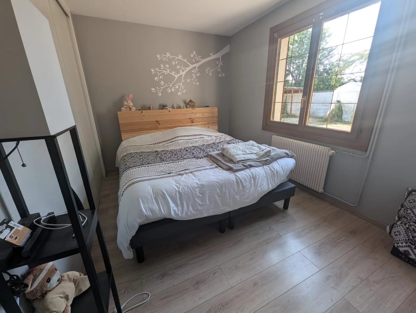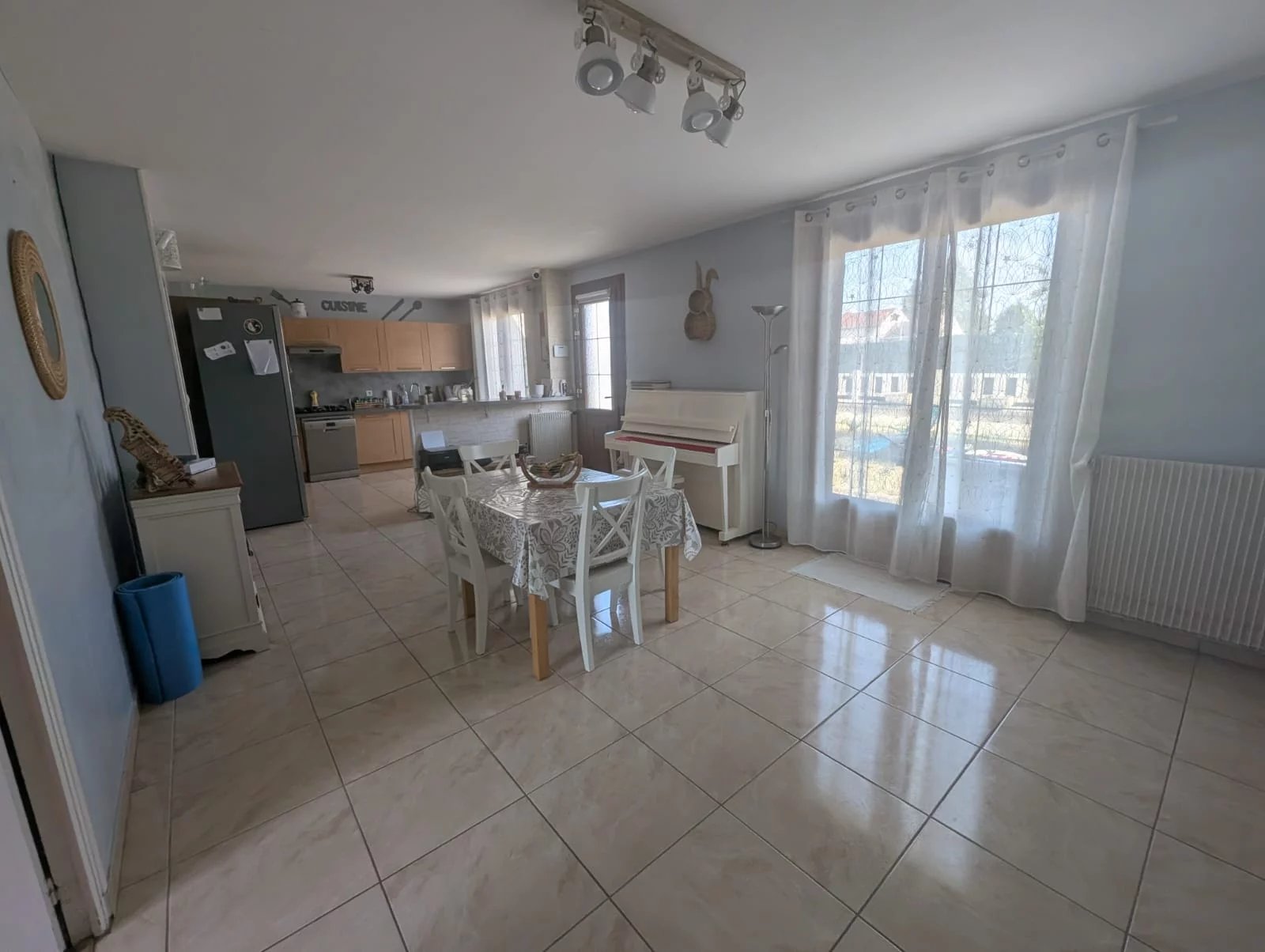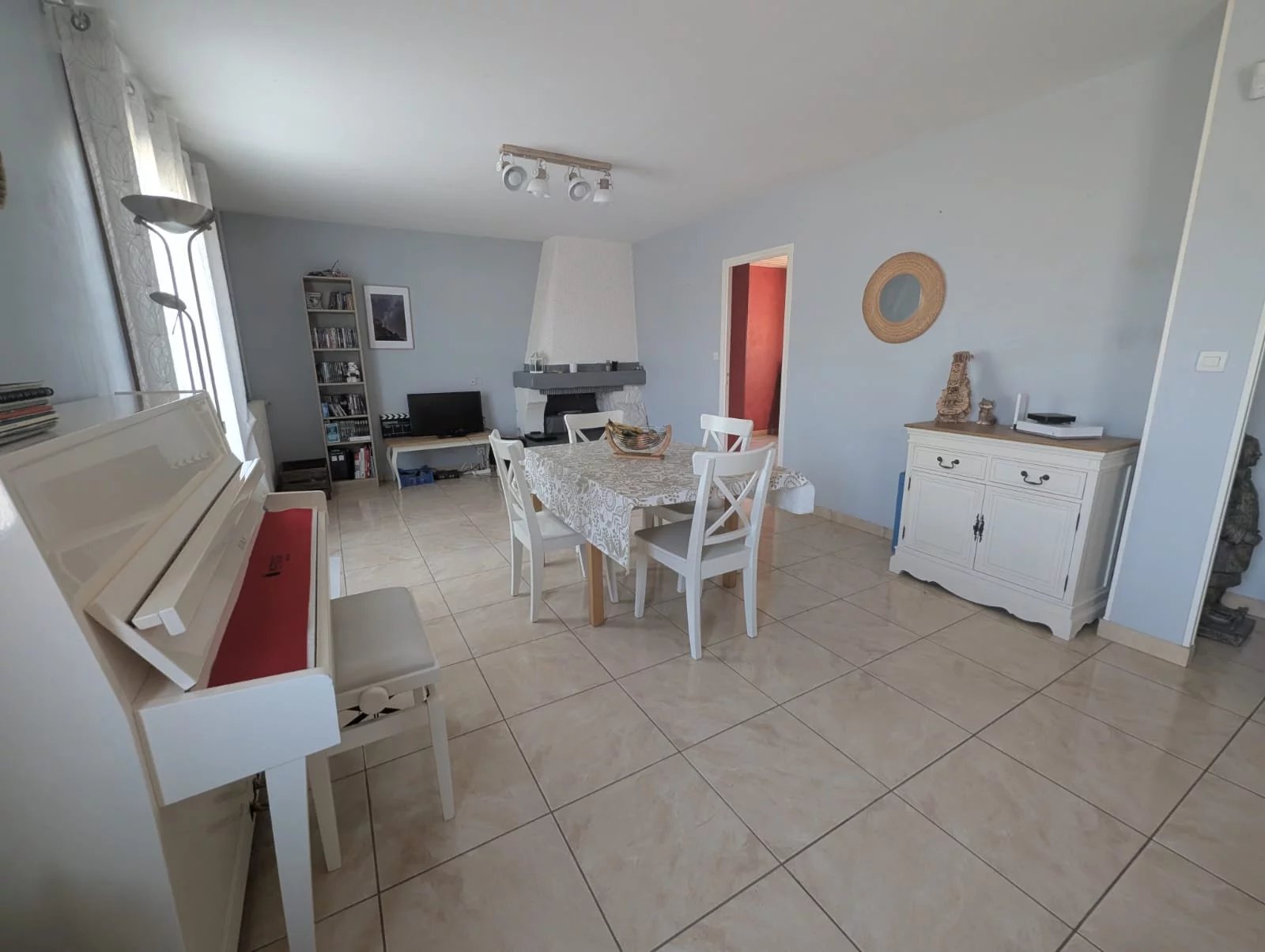 un séjour lumineux avec cheminée, une cuisine ouverte aménagée et équipée, 3 chambres, une salle d'eau, un toilette indépendant.