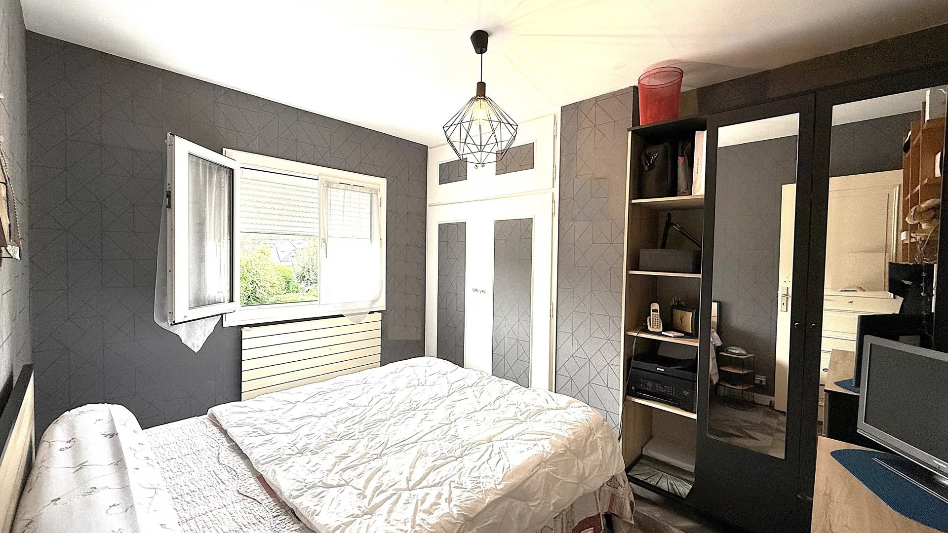 Dès l’entrée, vous découvrirez un séjour traversant ( poutres décorative facile a enlever en polystyrène) spacieux et convivial, doté d’une cheminée qui apporte une touche chaleureuse à l’ensemble. Sa grande ouverture sur le jardin, orienté sud-est, offre une belle luminosité naturelle et un cadre idéal pour profiter du soleil dès le matin. Le jardin, parfaitement proportionné, vous permettra de partager des moments en famille ou entre amis dans une atmosphère agréable et verdoyante.