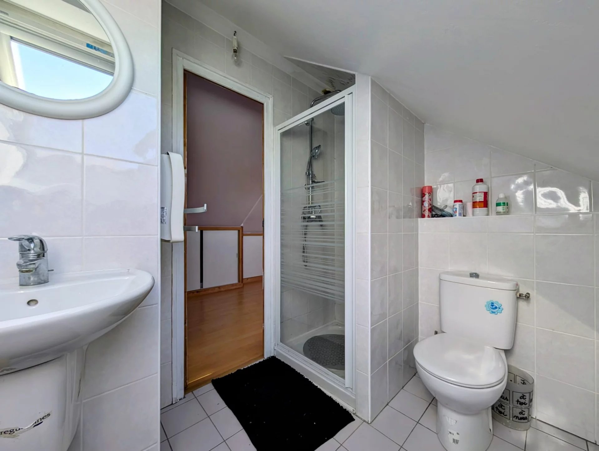 Hall d'entrée, séjour double avec poêle à bois, cuisine semi ouverte entièrement équipée, 1 suite parentale avec salle de bains, 3 chambres, salle de douche, WC et les combles entièrement aménagés avec une chambre, espace de stockage avec salle de douche et wc, Garage double, une buanderie