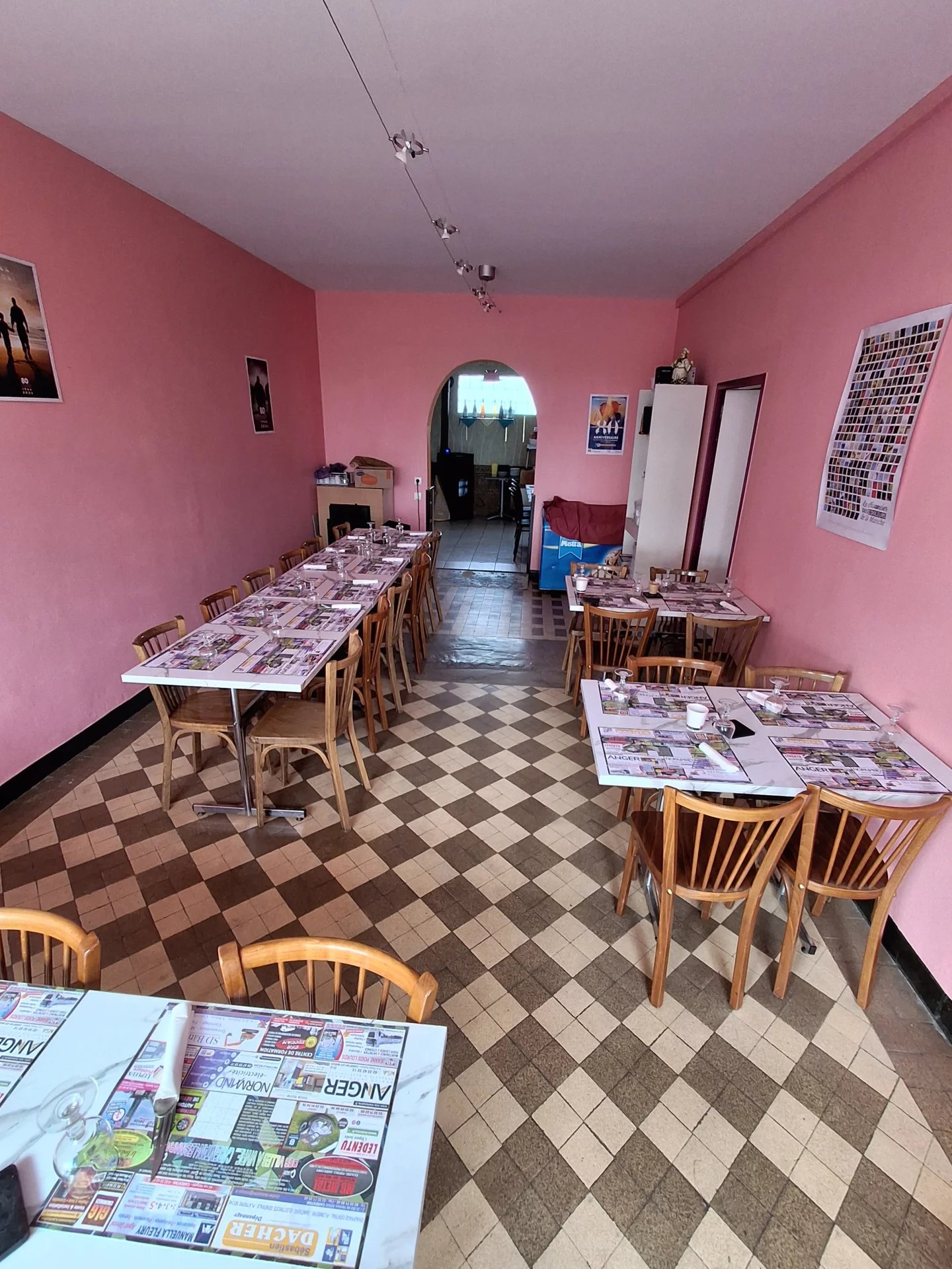Les locaux se composent d’une salle de bar d’une dizaine de places, de deux salles de restaurant d’une capacité totale de 94 couverts, d’une terrasse de 16 places, d’une cuisine, d’une réserve avec chambre froide, d’une cave, ainsi que d’un logement à rafraichir de 5 pièces.
