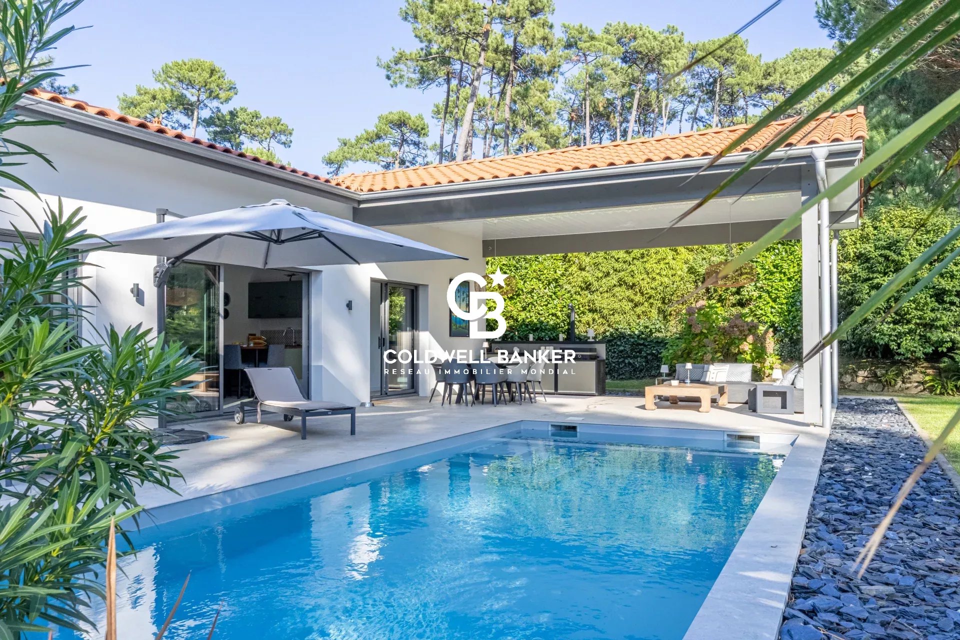 HOSSEGOR - CENTRE-VILLE ET LAC Idéalement située dans un quartier résidentiel très recherché, à deux pas du lac, du centre-ville et des plages, cette maison d’architecte d’environ 187 m² se distingue par son confort moderne, ses volumes généreux et sa luminosité remarquable. Elle propose 4 chambres, dont une vaste suite parentale, ainsi qu’un espace bureau pouvant facilement être aménagé en 5ᵉ chambre ou en dépendance selon vos besoins. Le salon-séjour avec cuisine ouverte profite d’une lumière abondante grâce à de larges baies vitrées, donnant directement sur une grande terrasse, la piscine et un jardin arboré sans vis-à-vis, offrant une vue dégagée. Les prestations sont contemporaines et de qualité, alliant esthétique et fonctionnalité. Un garage vient compléter ce bien rare sur le secteur. Une maison idéale pour les amateurs d’architecture contemporaine et de nature, tout en restant à proximité immédiate de toutes les commodités. Ce bien est présenté par Allison OTIN. DPE : A (38) – GES : A (1) Prix de vente : 2 300 000 €, honoraires d’agence inclus et à la charge du vendeur. Les informations relatives aux risques auxquels ce bien est exposé sont consultables sur le site Géorisques : www.georisques.gouv.fr Retrouvez l’ensemble de nos biens sur hossegor.immoba.fr.