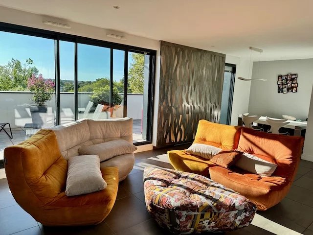 À Bayonne, au sommet d’une résidence contemporaine dotée d’un ascenseur, se dévoile un rooftop de 133 m² habitables prolongé par une terrasse exceptionnelle de plus de 170 m². Cet appartement de 4 pièces principales séduit par son agencement optimisé, ses volumes généreux et sa luminosité abondante offerte par de larges ouvertures vitrées. L’espace de vie propose un séjour chaleureux, en continuité avec une cuisine moderne parfaitement intégrée. Une circulation fluide conduit vers une suite parentale bénéficiant d’un accès direct à l’extérieur, ainsi que deux chambres supplémentaires, toutes baignées de lumière et pensées pour un confort de vie optimal. Les prestations haut de gamme, le style contemporain et le soin apporté aux finitions renforcent son caractère unique. La vaste terrasse panoramique constitue un véritable prolongement de l’appartement. Conçue comme un espace multifonctionnel, elle combine zones de détente, espaces de réception et touches végétalisées, tout en offrant une vue dégagée sur les toits et les reliefs environnants. Véritable cocon à ciel ouvert, elle invite aussi bien au partage qu’à l’intimité, dans un cadre urbain recherché. Ce bien d’exception allie élégance architecturale et confort haut de gamme en plein cœur de ville. La générosité de ses espaces, la rareté de sa terrasse et son emplacement privilégié en font une opportunité rare sur le marché immobilier bayonnais.