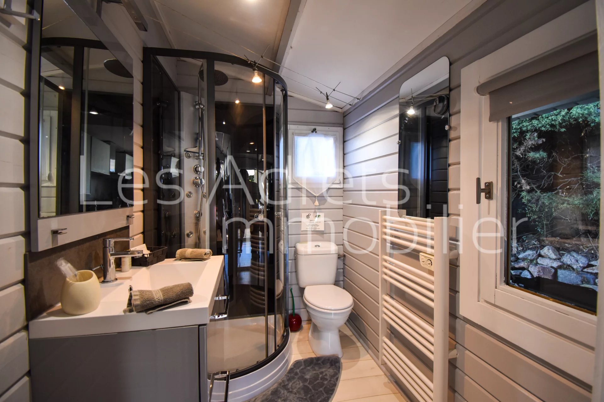 Sur un terrain paysager de 2 866 m², cette propriété atypique séduit par son potentiel unique, combinant résidence principale, revenus locatifs saisonniers et espace d’exploitation professionnelle.