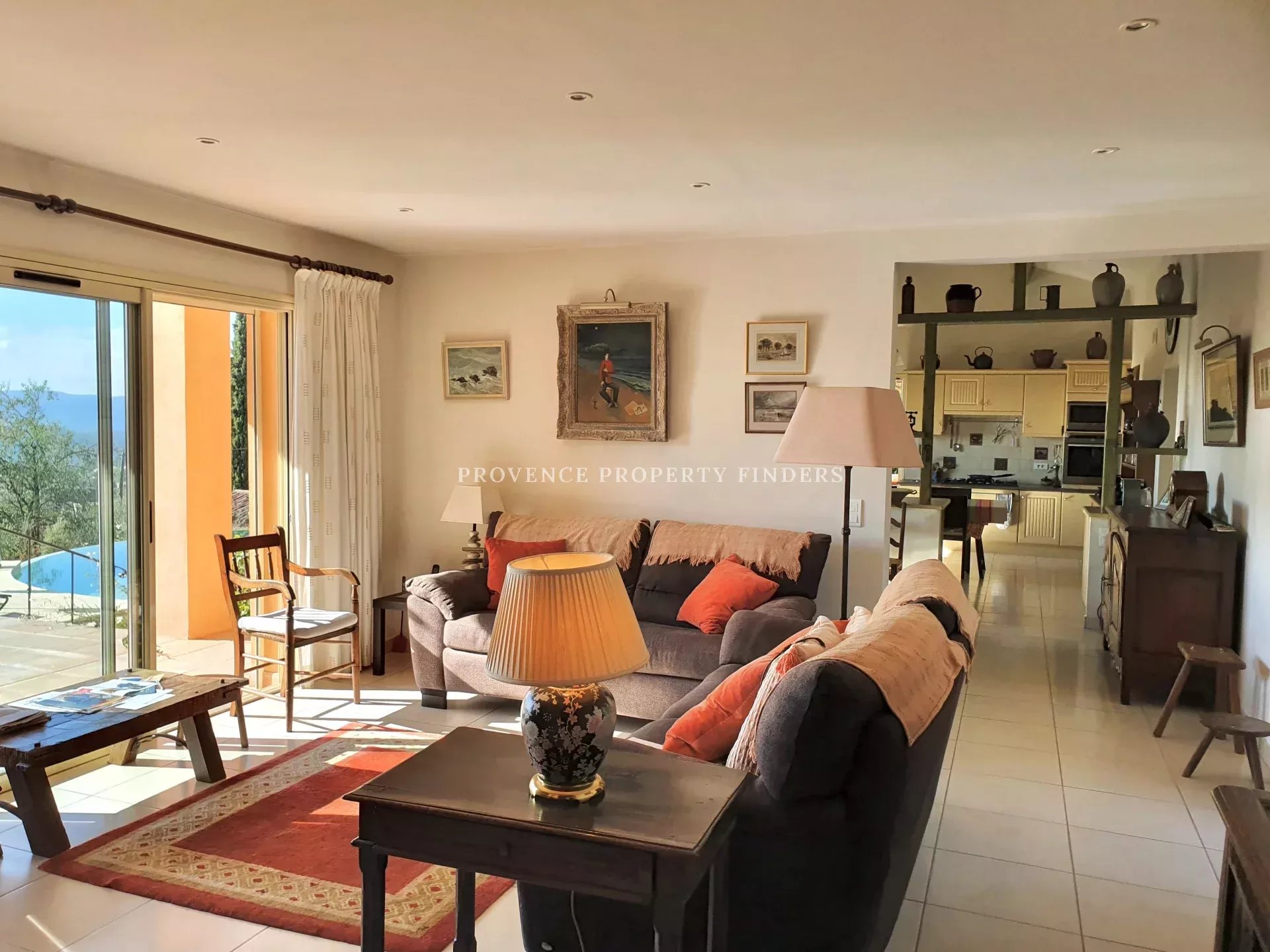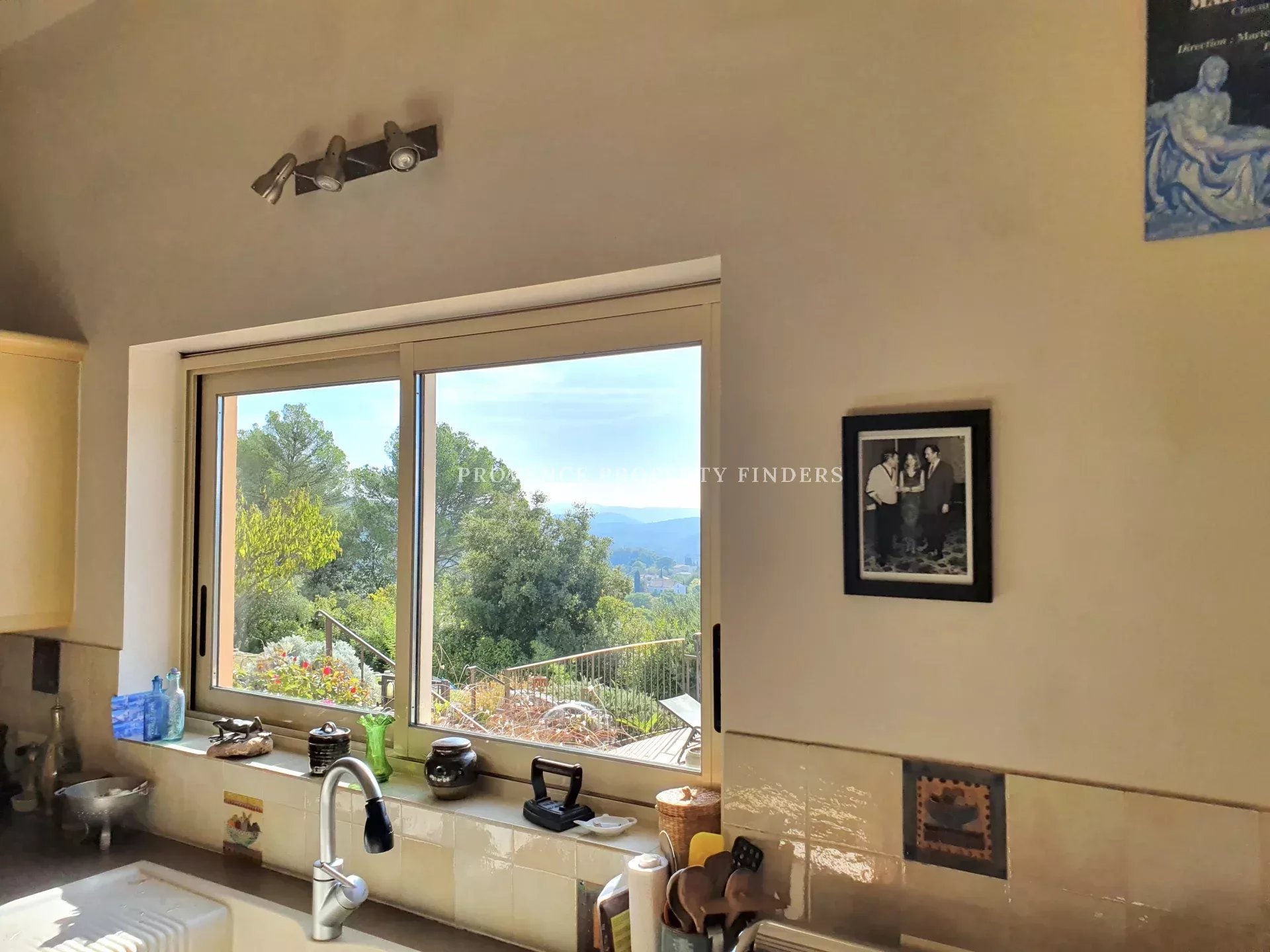 Non loin du centre du village de Lorgues dans un quartier résidentiel cette maison est à vendre. Vue spectaculaire et espaces de vie confortables, construits avec solidité et matériaux de bonne qualité. Entrée, hall, Salon, Salle à manger, cuisine équipée ouvrant sur la terrasse. 1 grande chambre parentale au rez-de-chaussée avec salle de bain et dressing et 1 chambre "d'enfants" au premier étage avec douche. Un appartement avec 2 chambres au rez-de-chaussée relié à la maison principale. Beau jardin aménagé avec des plantes méditerranéennes et une vue magnifique. Piscine à débordement