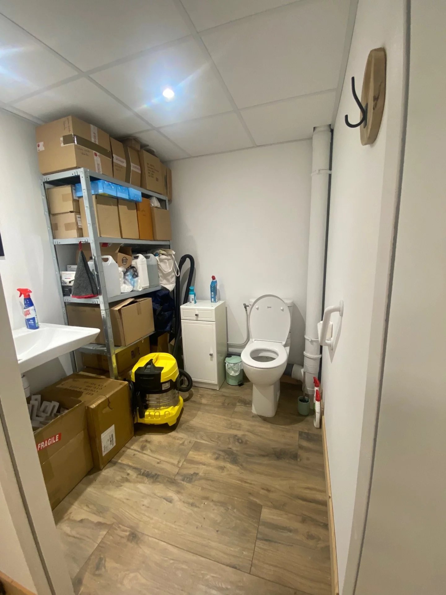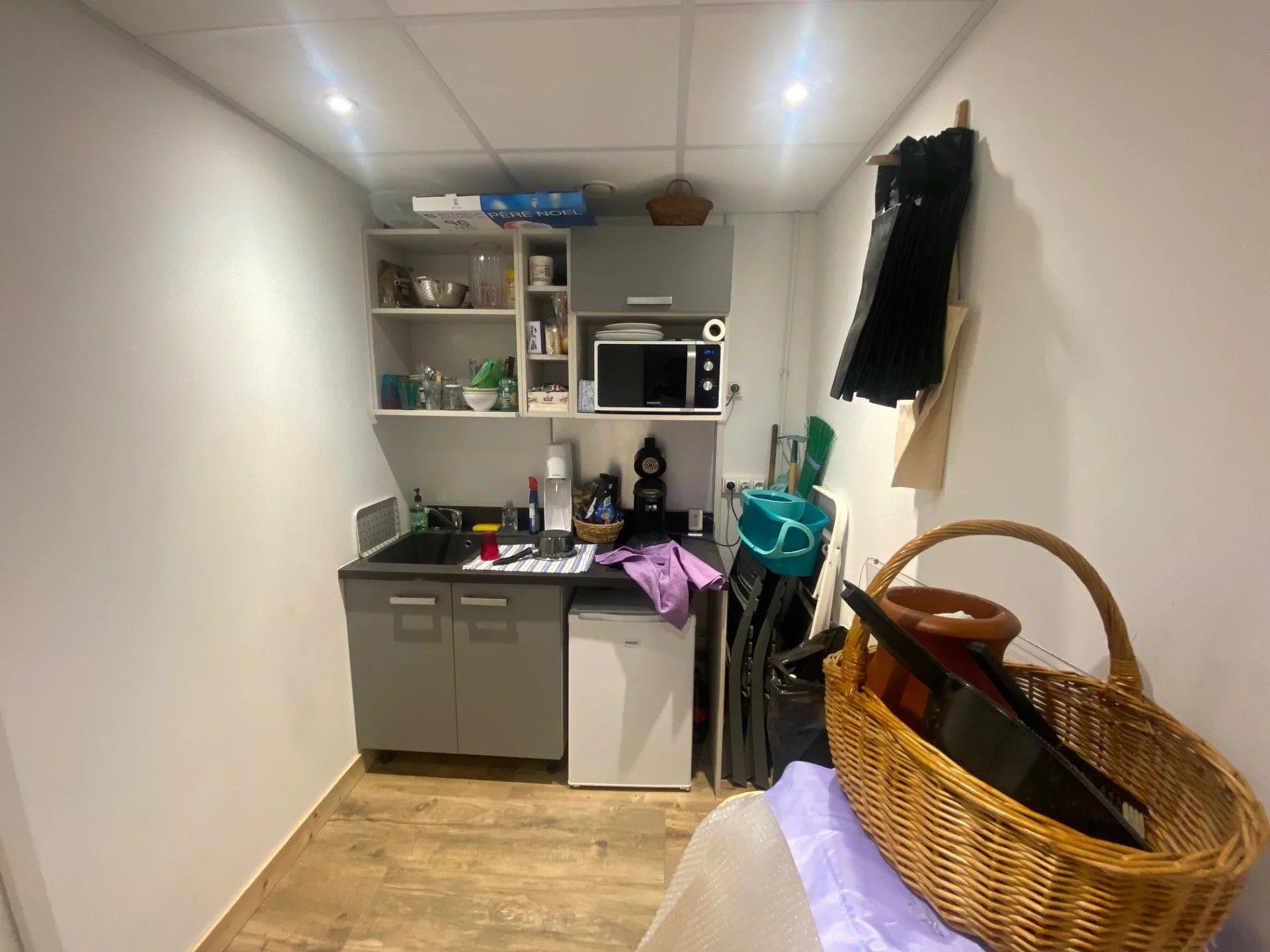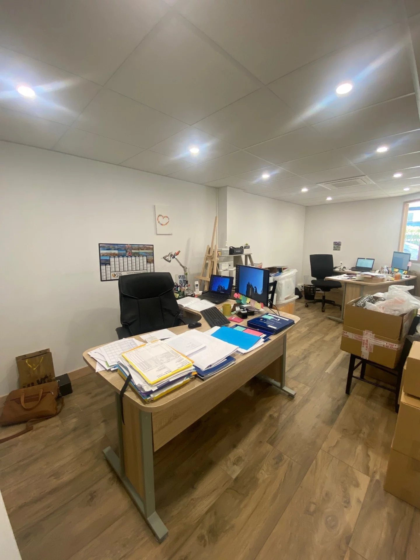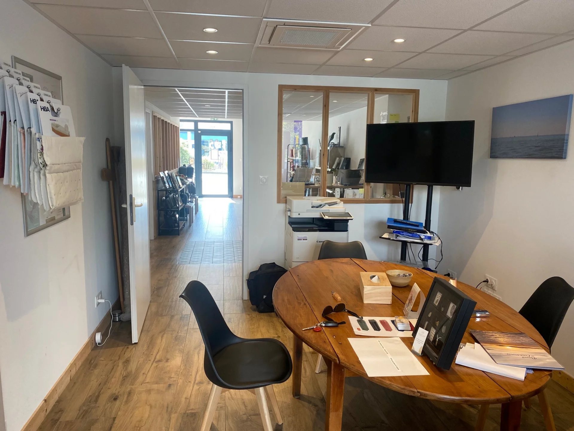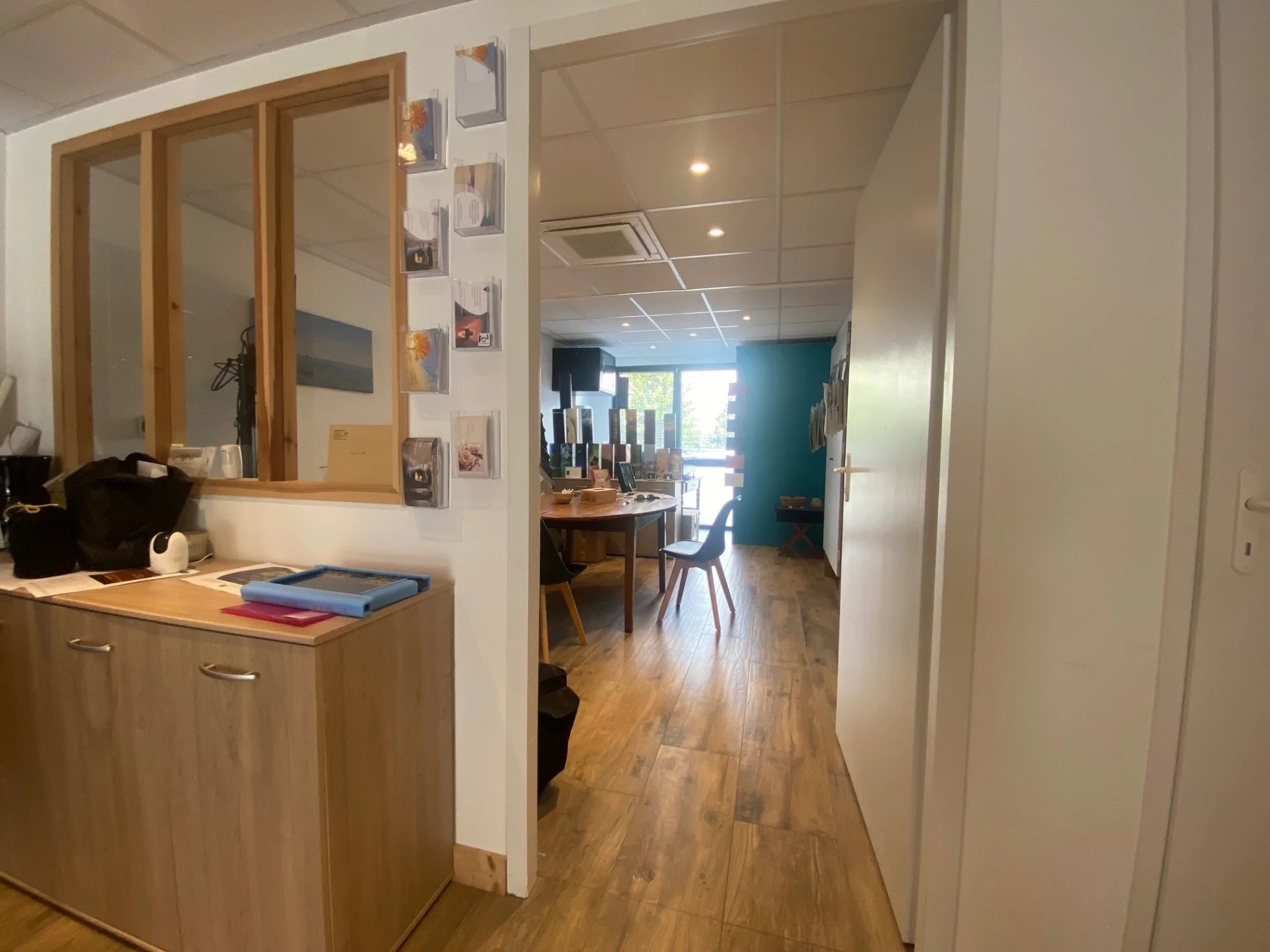 Ce local commercial traversant (double exposition et double accès) entièrement aménagé et en excellent état d'une surface de 90m², comprend un vaste espace de vente ou de réunion, 1 grand bureau pouvant être divisé en deux, plus 2 bureaux donnant sur la partie arrière, un coin cuisine aménagée, un WC avec lave-mains.