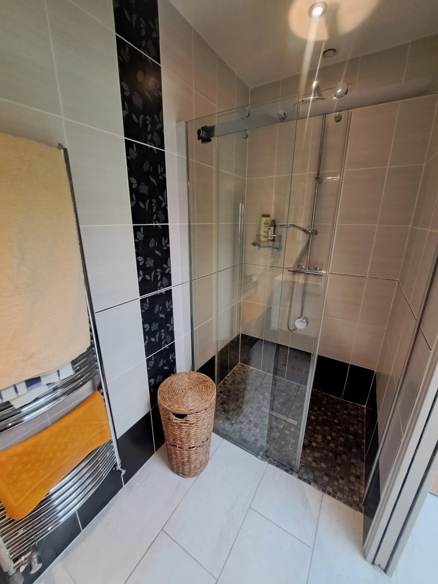 - Une cuisine ouverte ou séparée grâce à une grande porte sur mesure coulissante, ainsi qu'un cellier.