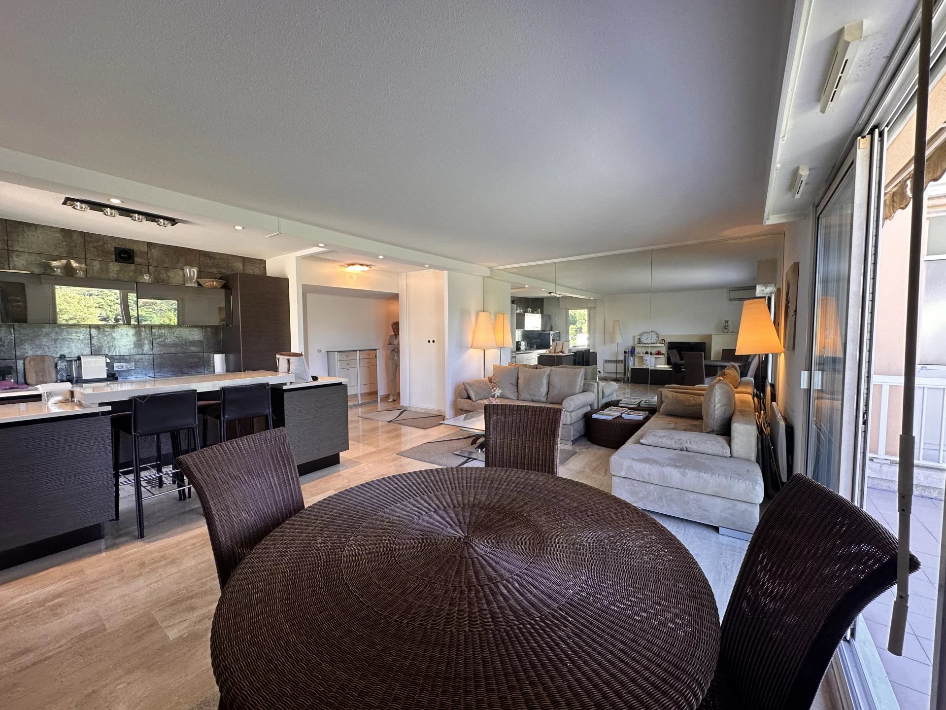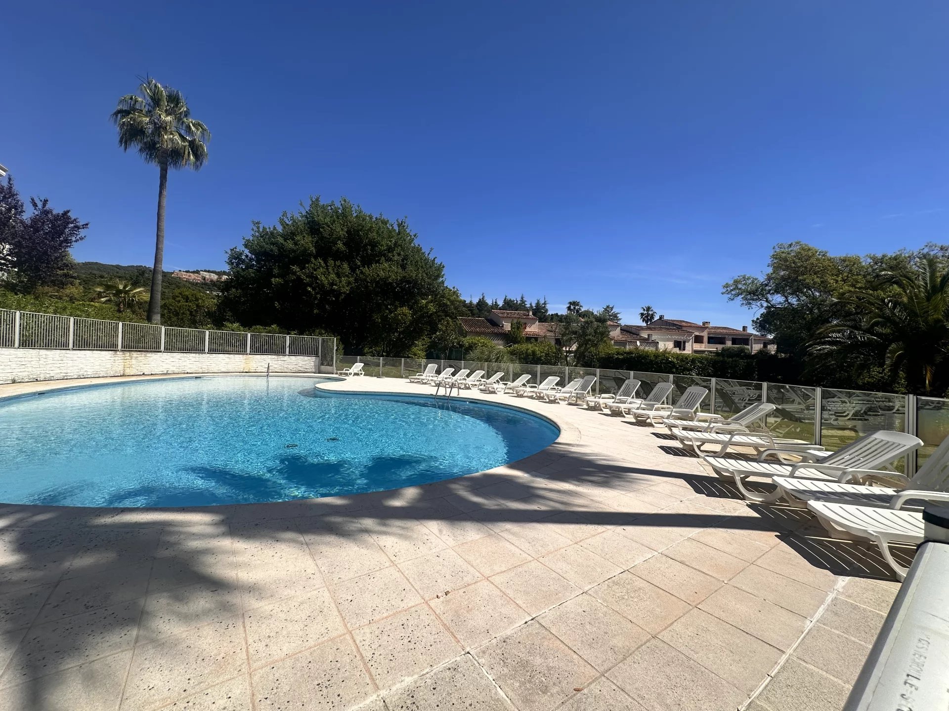 SOUS COMPROMIS DE VENTE !Implanté au sein du golf de Mandelieu ,dans une petite copropriété gardiénée avec piscine,agréable 3P de 72M2 traversant en exposition sud/ouest bénéficiant de 2 terrasses. Séjour avec cuisine usa entièrement equipée,2 chambres,2 salles de douche,1 wc indépendant. En annexes: 1 cave et 1 parking en sous-sol Faibles charges Pas de procedure en cours