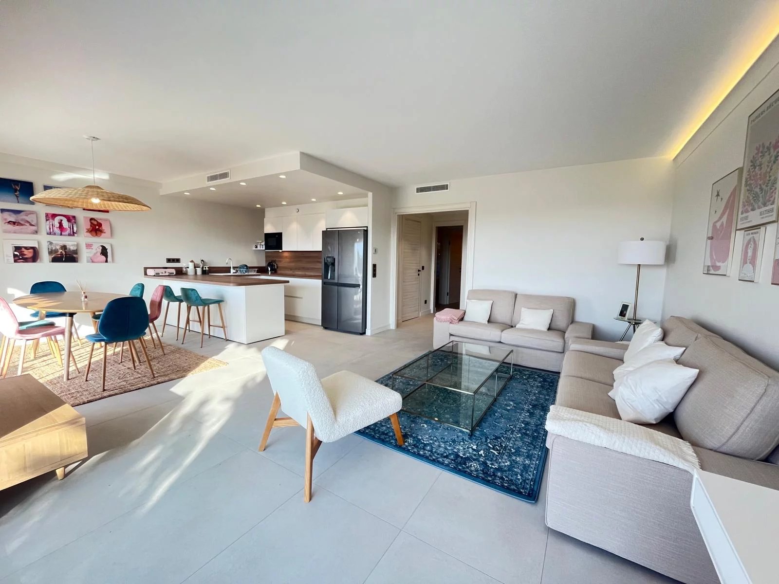 LA CROIX DES GARDES - Vue Mer- Emplacement de 1er ordre et Résidence de renom 3P Surélevé en rez de jardin de 78m² avec une terrasse/jardin de 36m² Exposition Sud 1 Séjour 1 Cuisine Américaine Equipée 2 Chambres 2 Salles de douche dont 1 avec WC Dressing 1 Cave 1 Place de parking privative Résidence avec sécurisée avec gardien et piscine