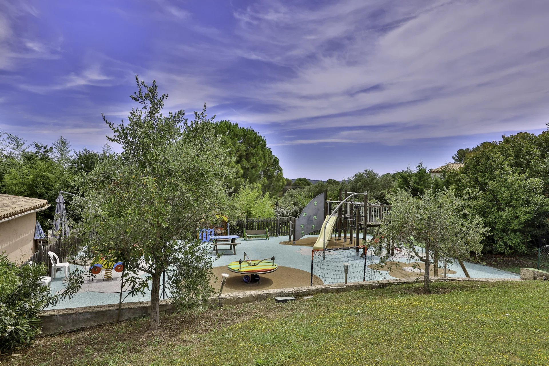 A l'extérieur, vous pourrez profiter d'un grand jardin plat ensoleillé toute la journée, d'une piscine original chauffée avec jacuzzi, du pool-house de 100m2 comprenant une cuisine d'été avec salle de jeux, et d'un jardin de jeux pour les enfants.
