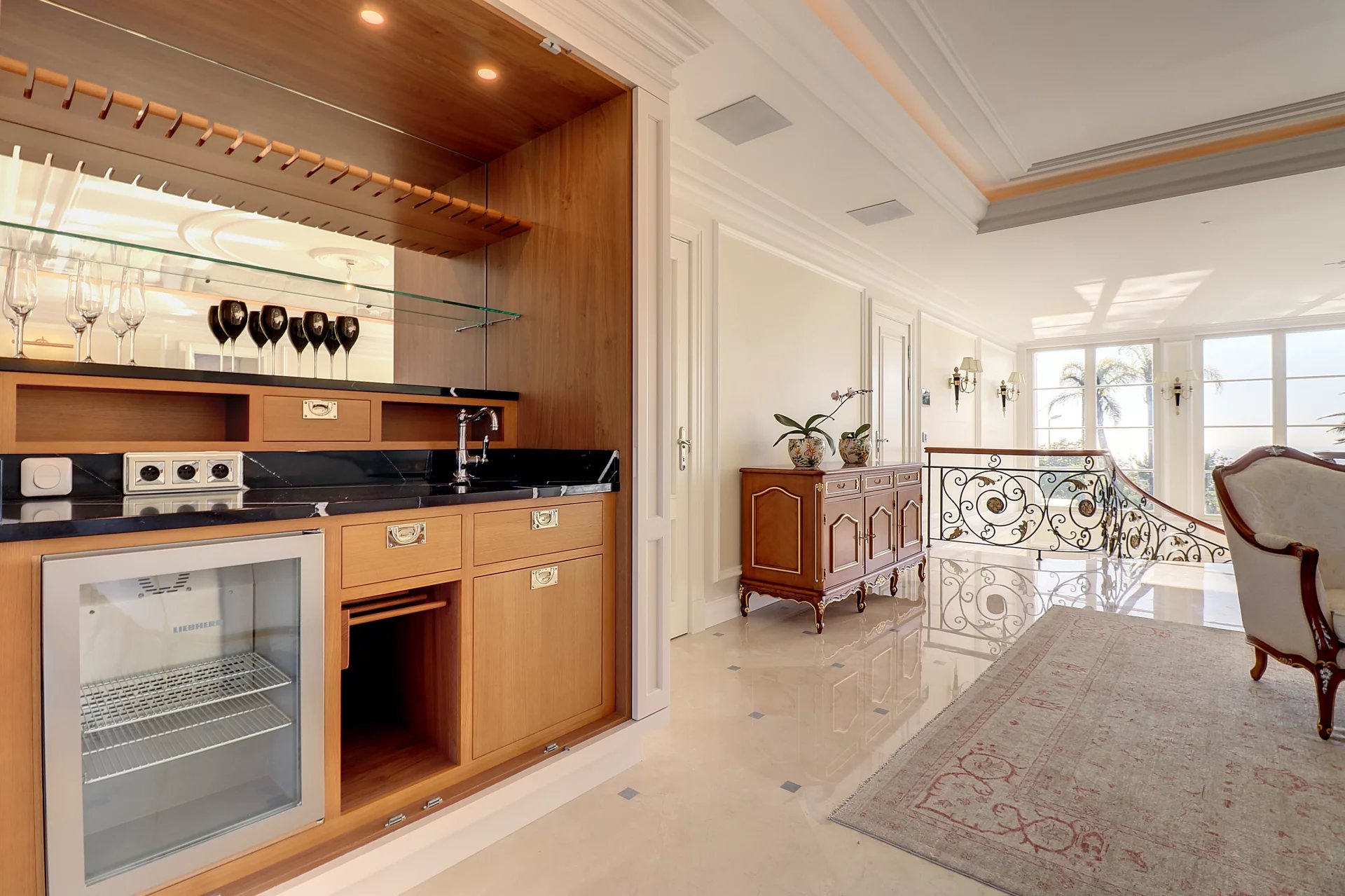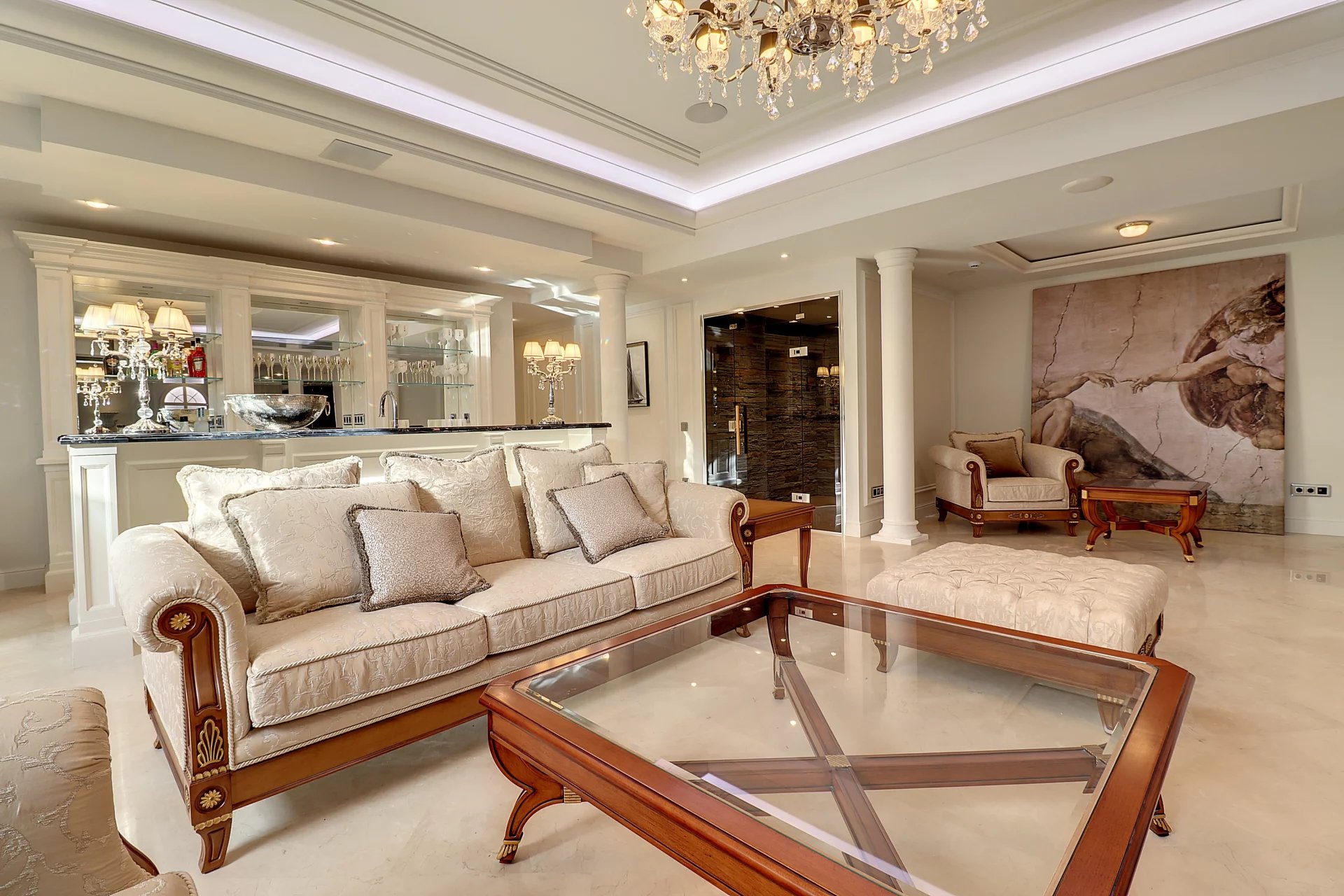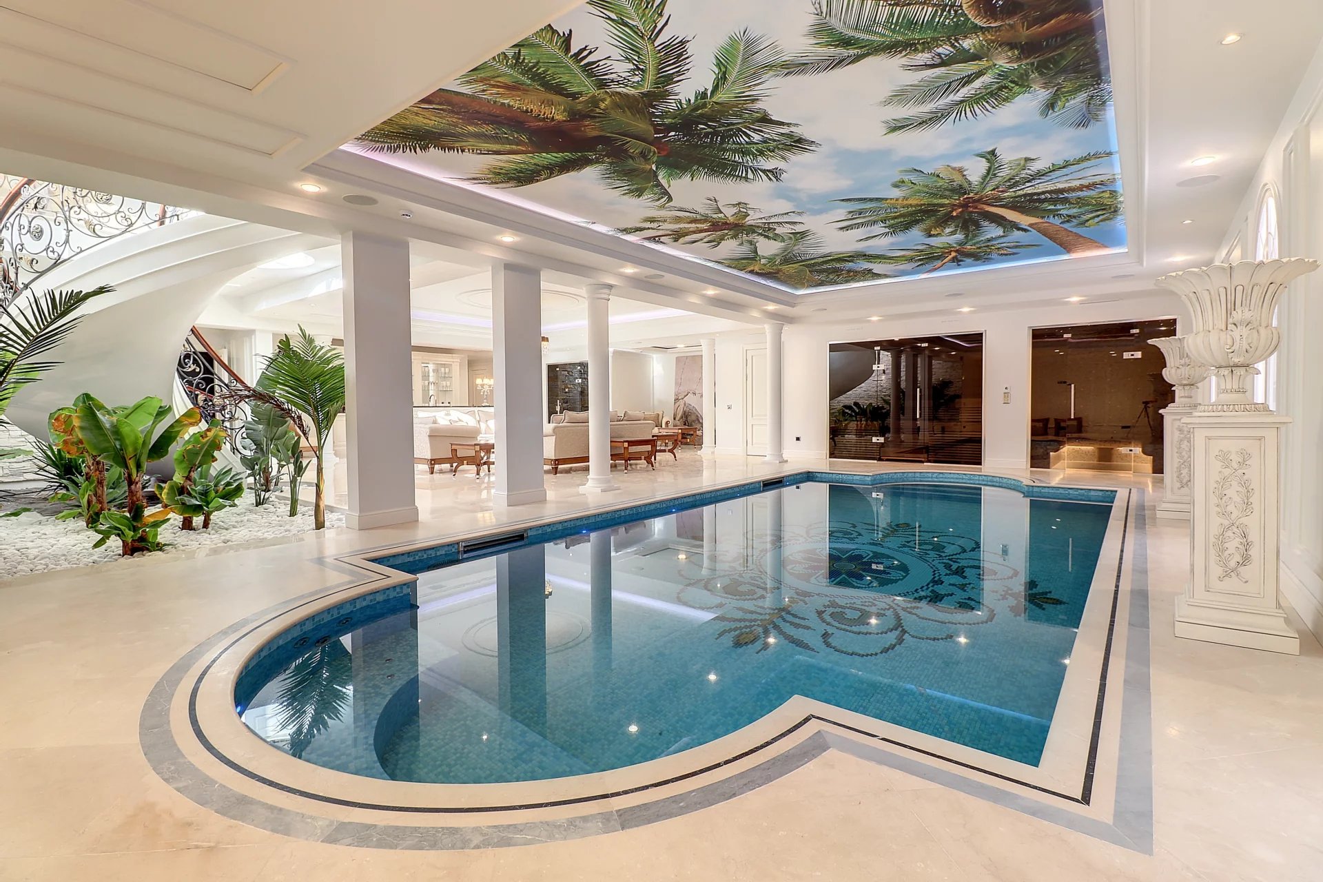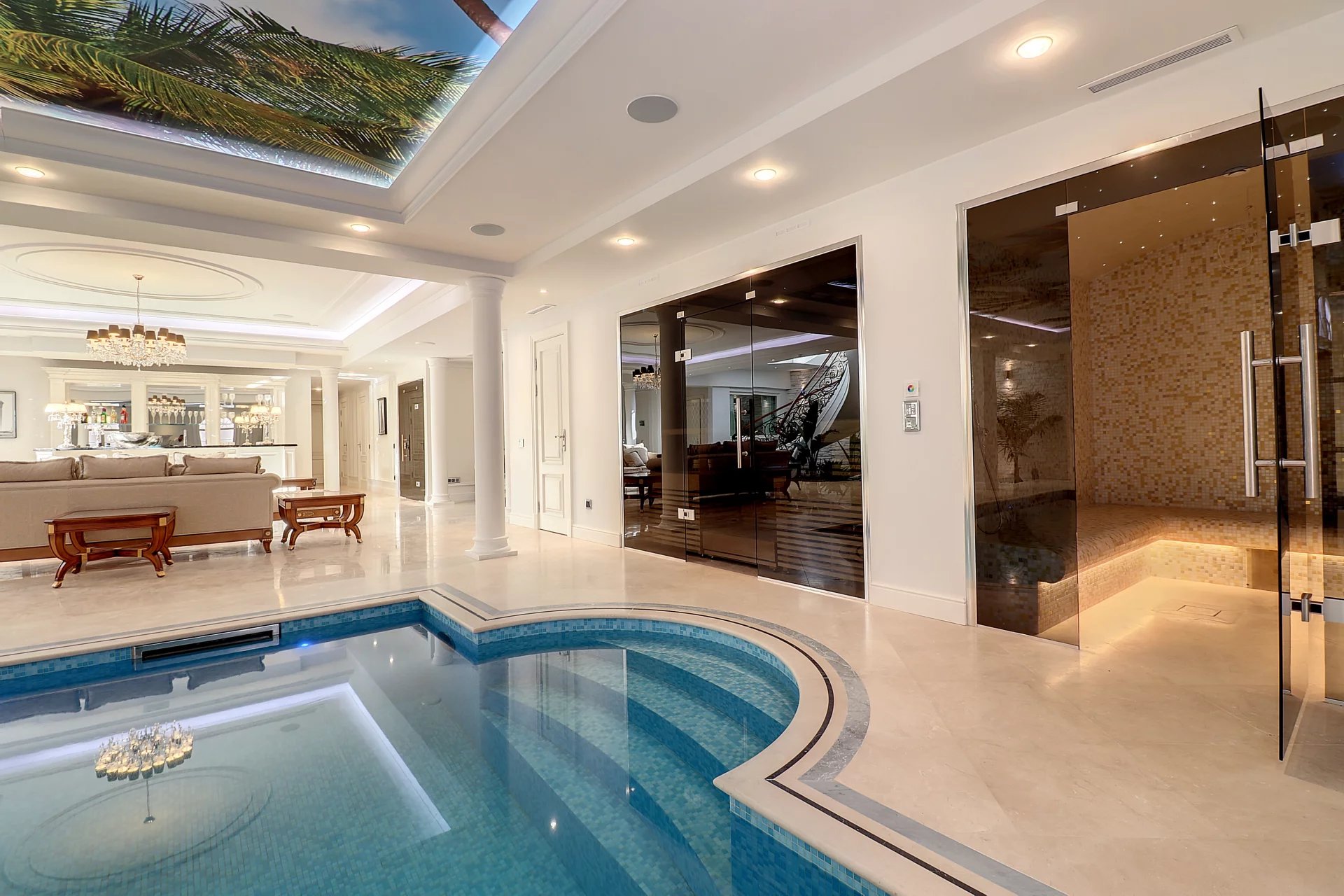 A l'étage inferieur, un coin reception avec un grand Bar Américain, Piscine intérieur chauffée, spa, hammam, salle de sport, salle de cinema, panic room, tout y est !
