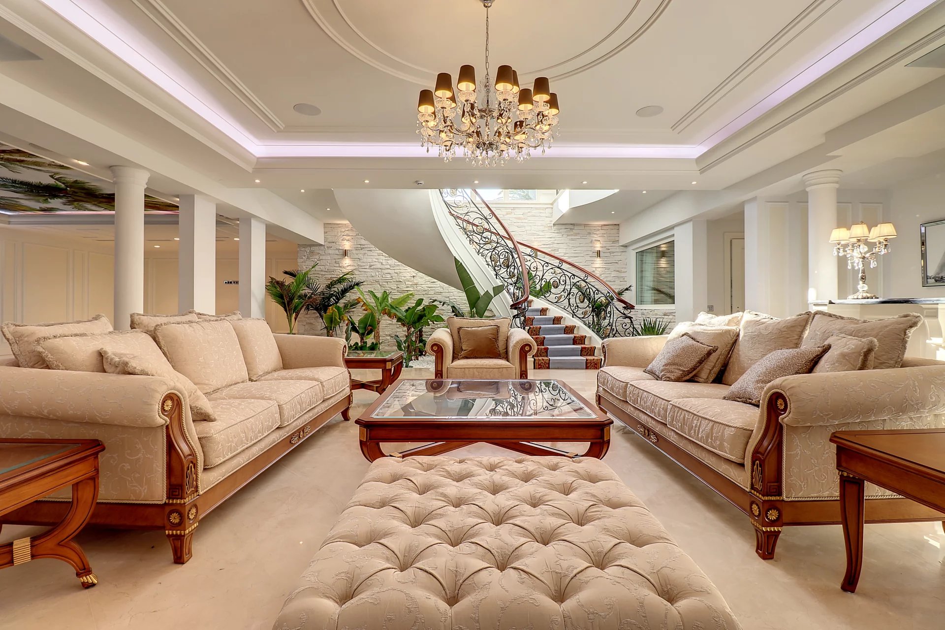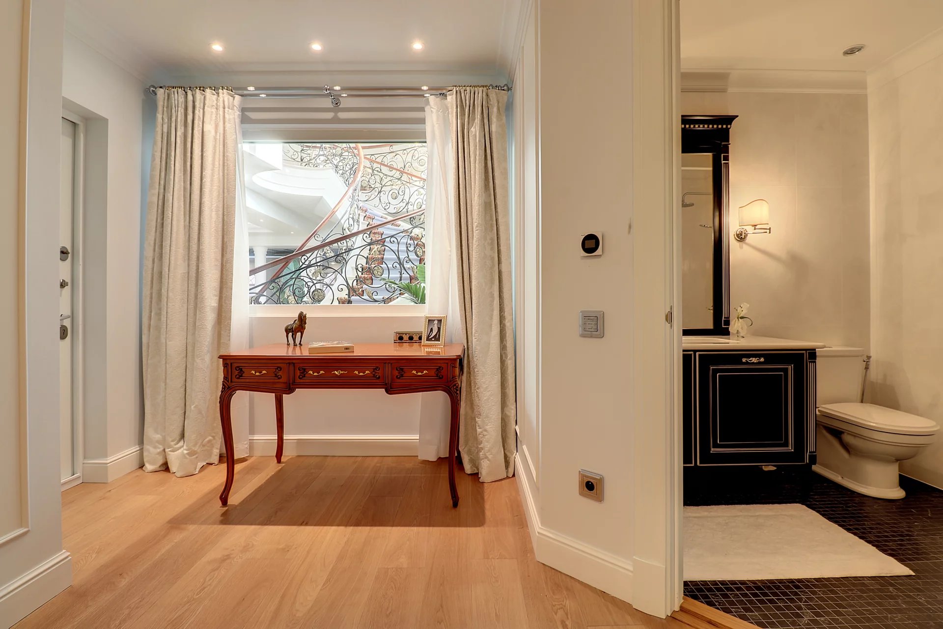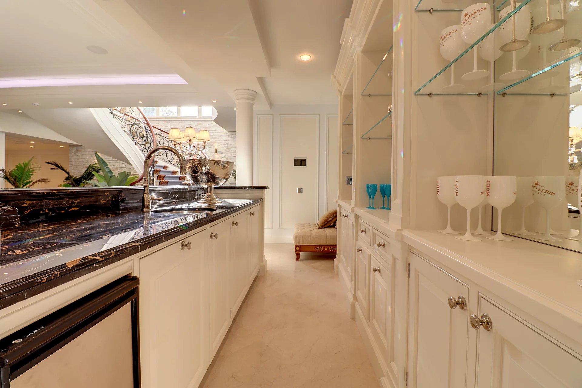 A l'étage inferieur, un coin reception avec un grand Bar Américain, Piscine intérieur chauffée, spa, hammam, salle de sport, salle de cinema, panic room, tout y est !